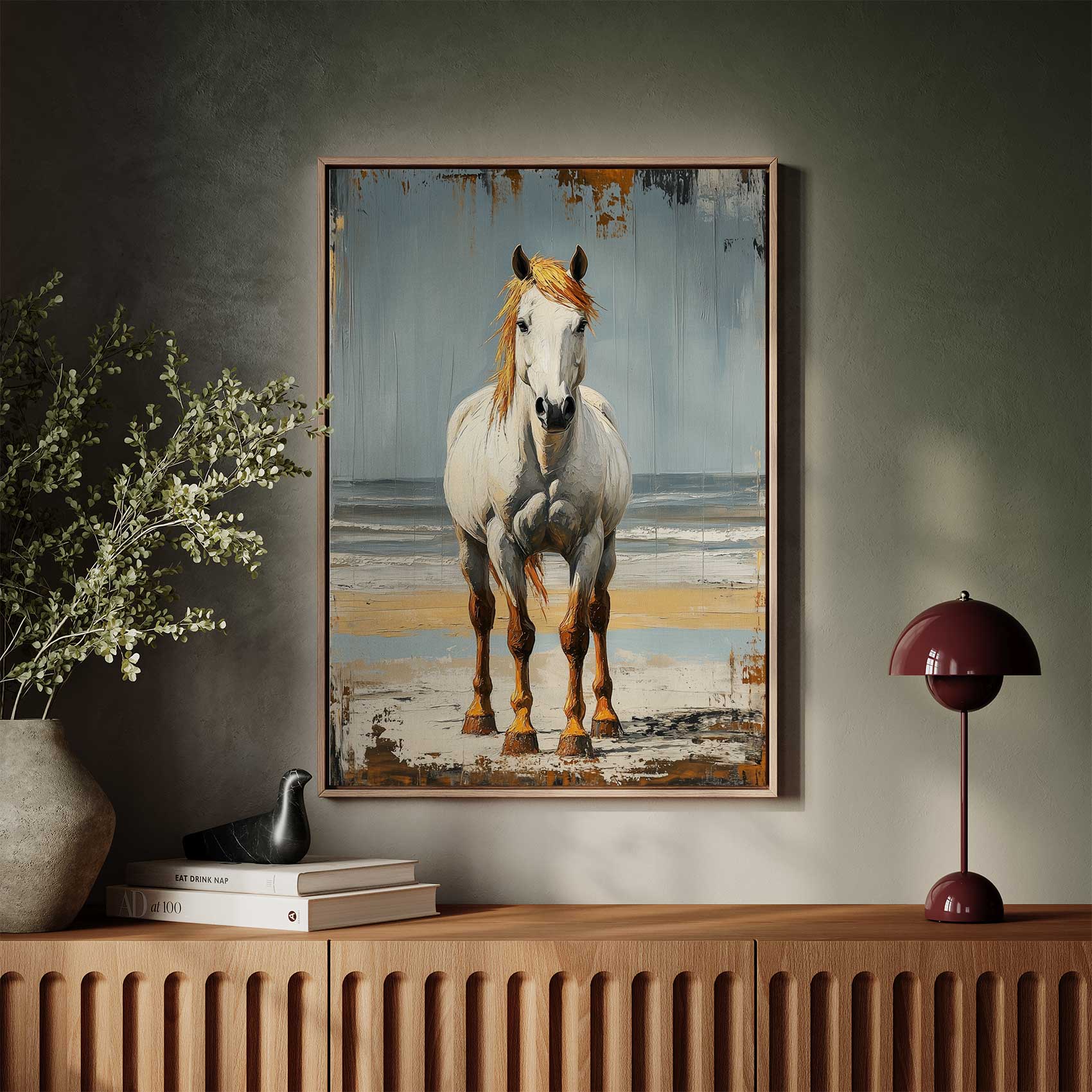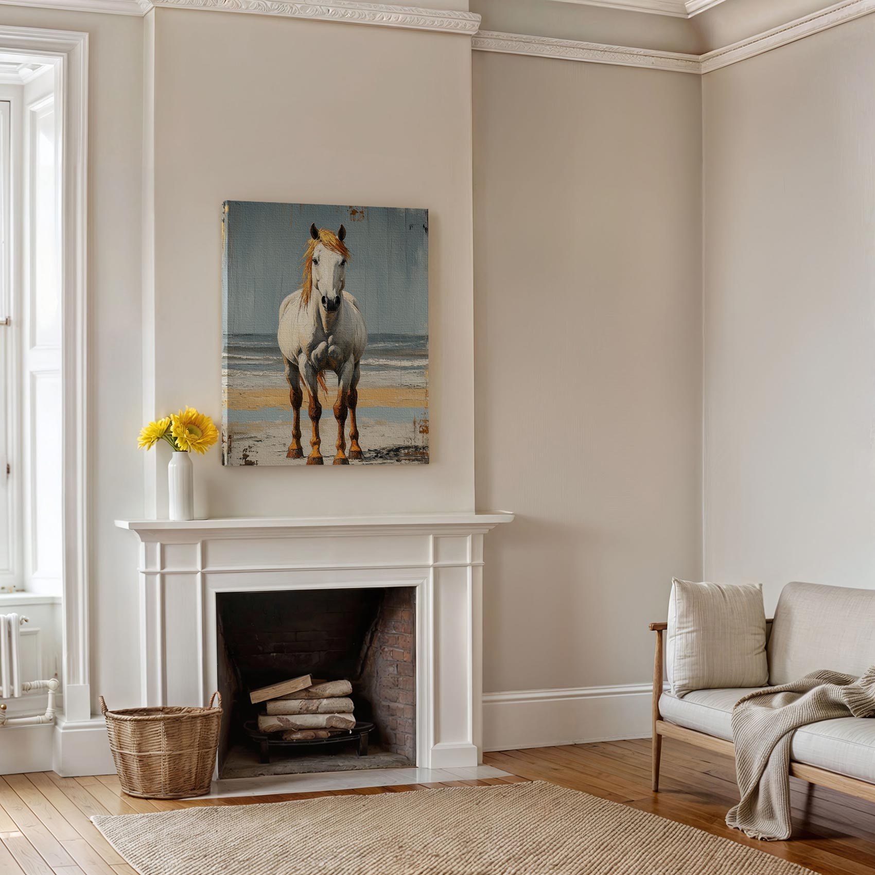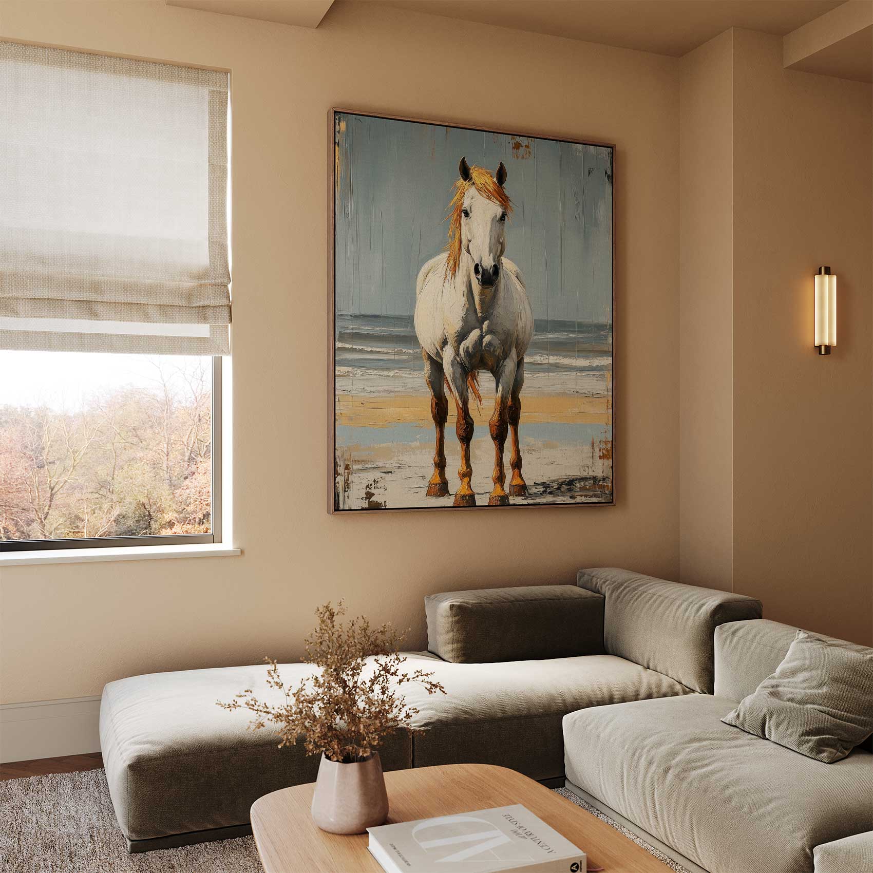 Wit paard op strand