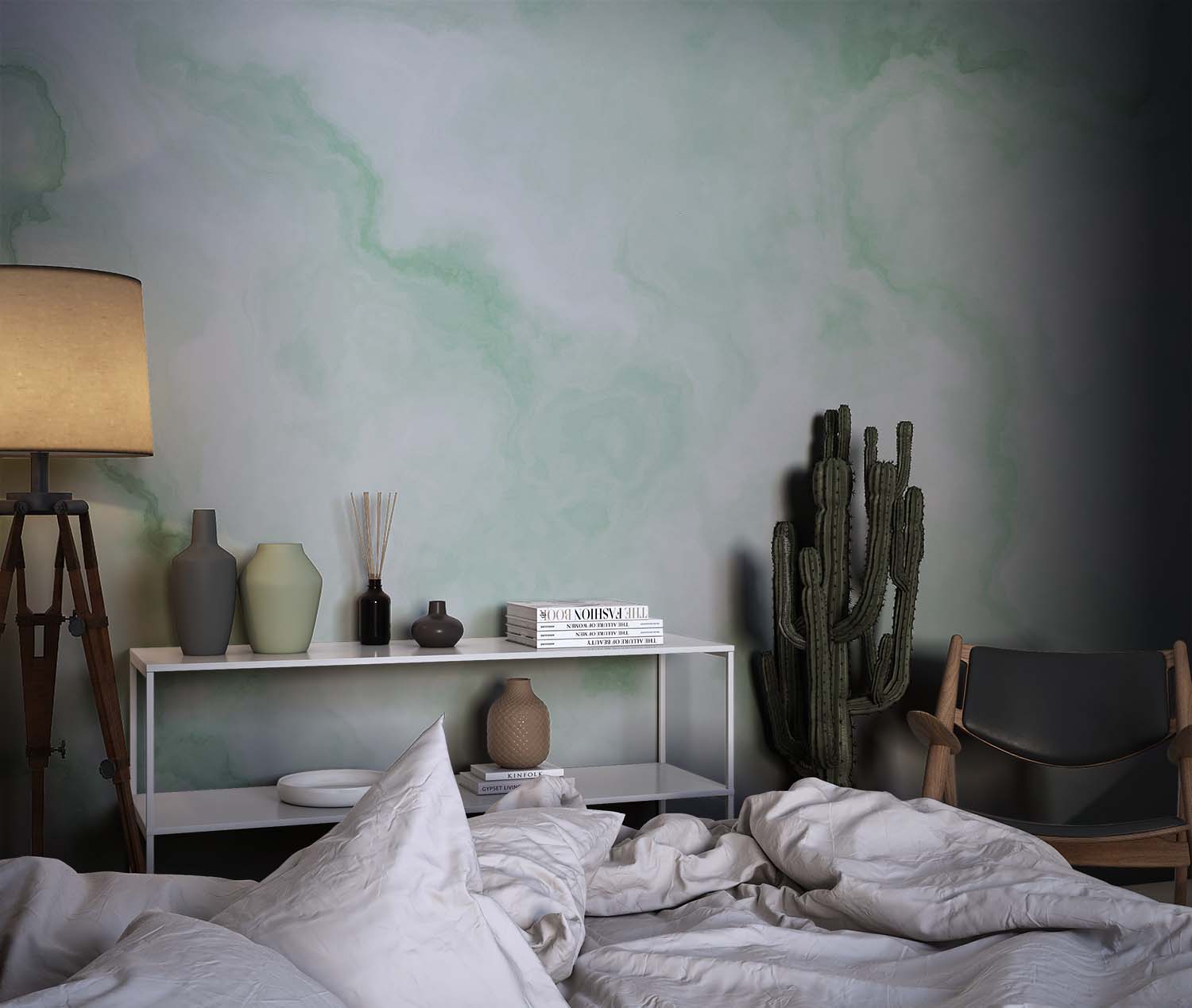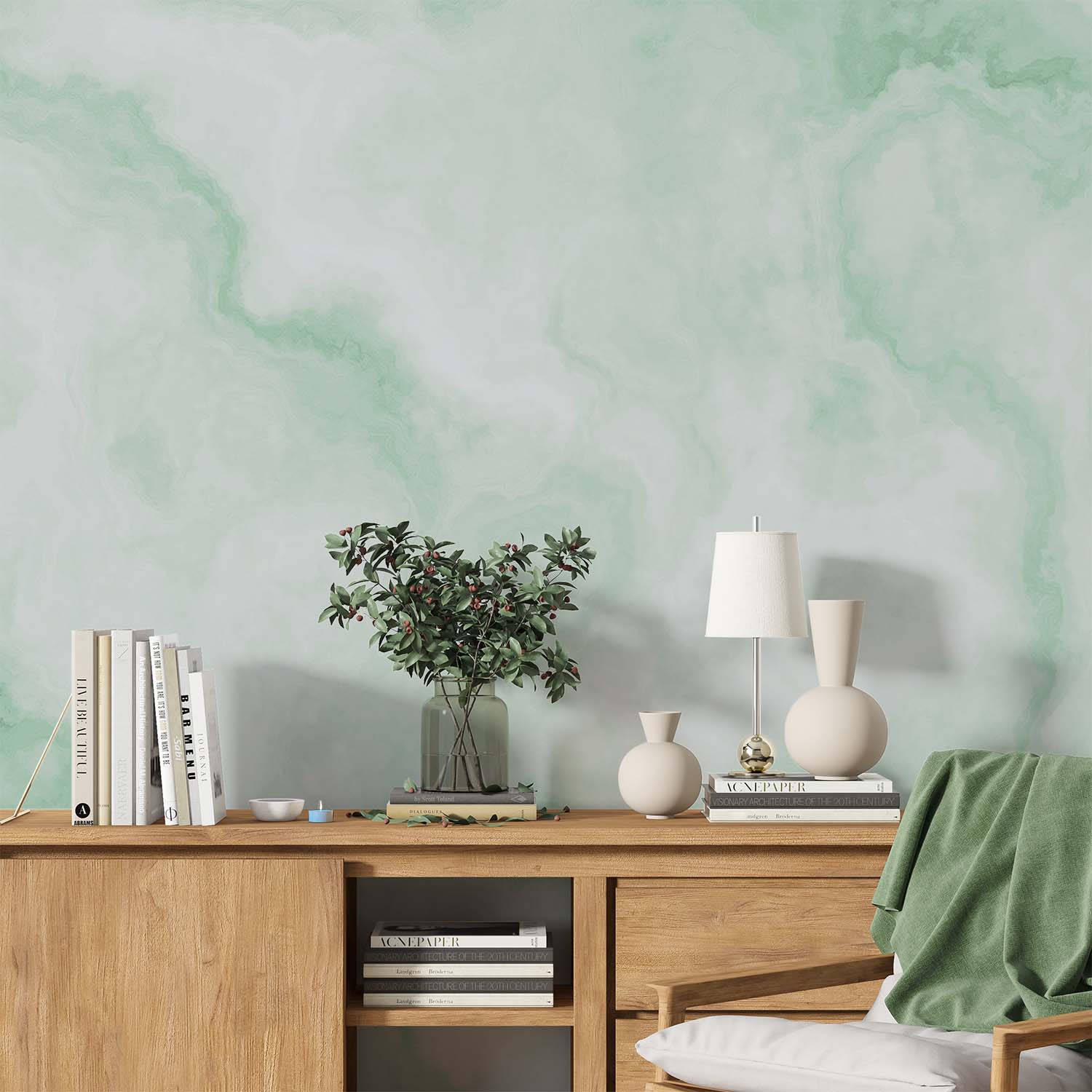 U ontvangt een staal van 15 × 20 cm op Variovlies behang, met dezelfde print en structuur als het uiteindelijke product. Zo kunt u thuis rustig beoordelen of het ontwerp goed past.