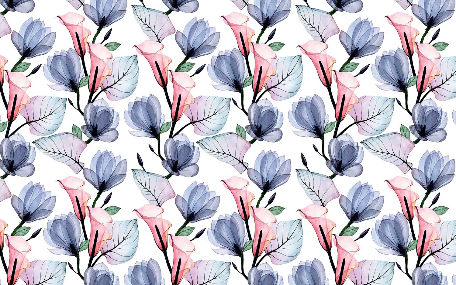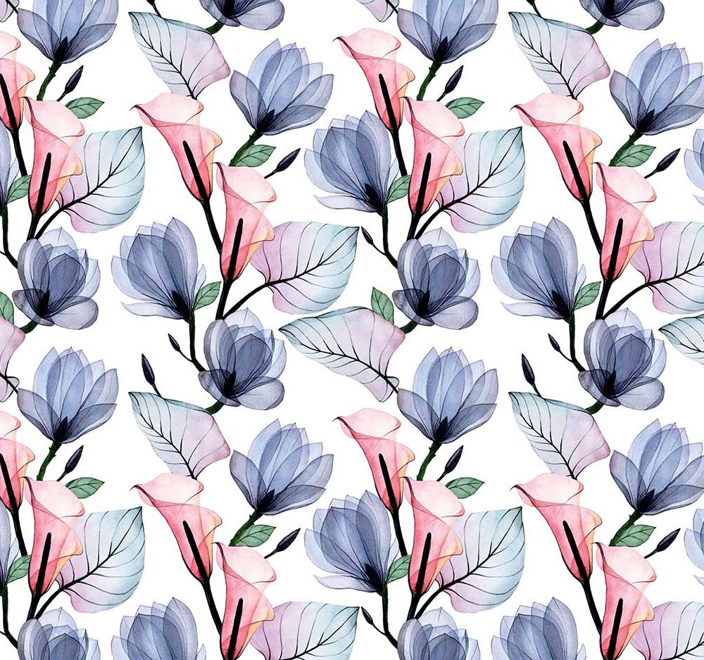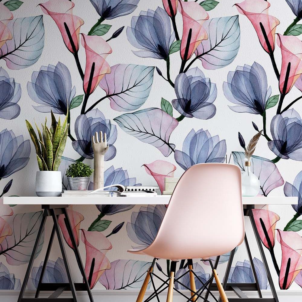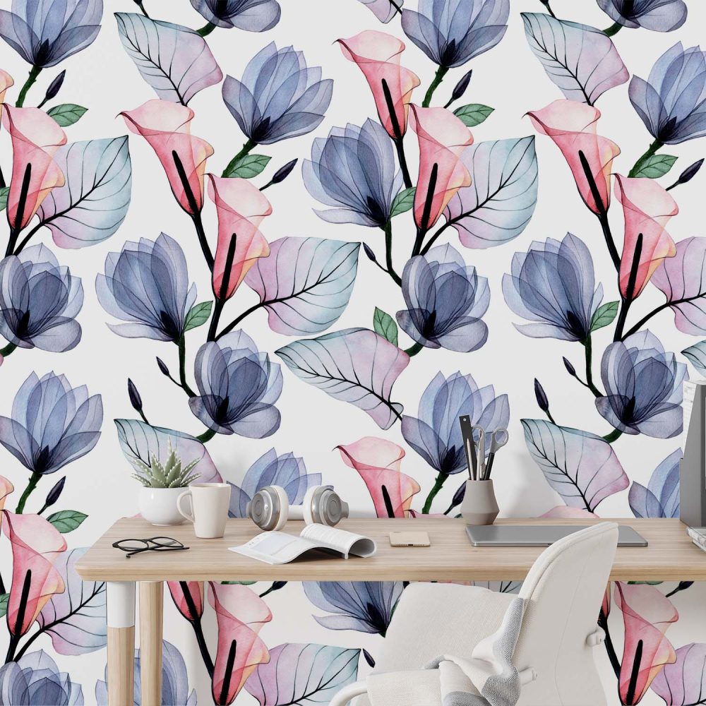 Terug naar collectie / Behang / Witte Aquarel Bloemen Behang Roze/Blauw
