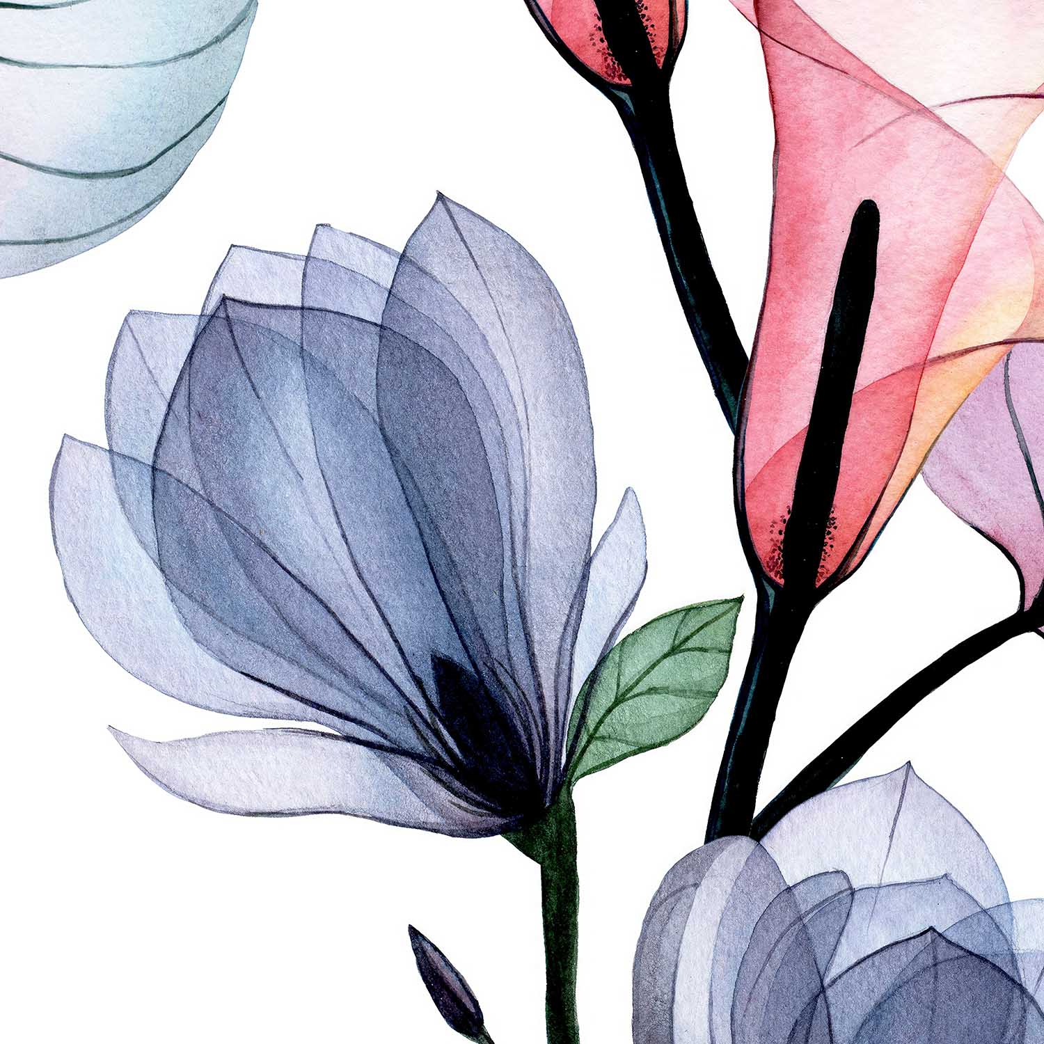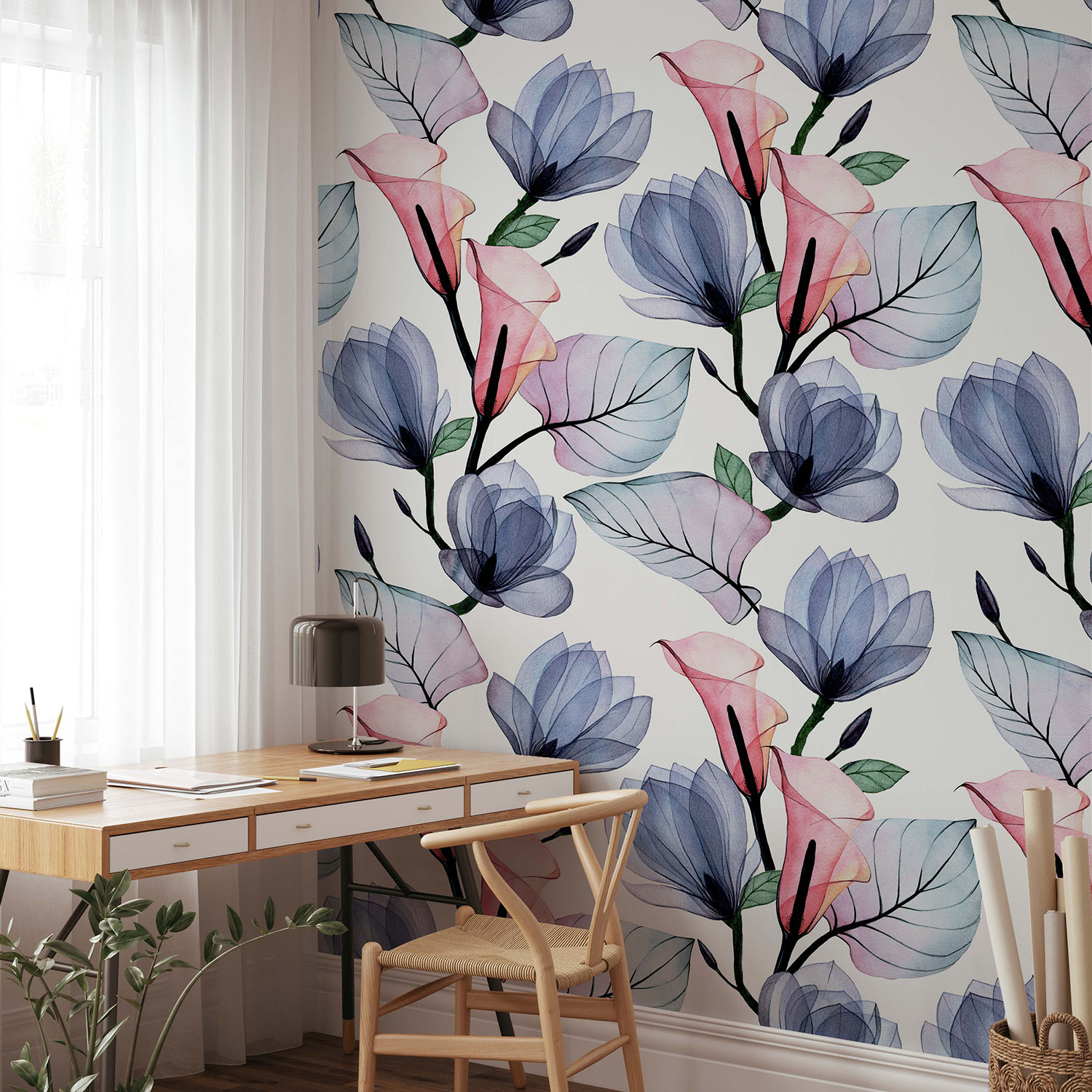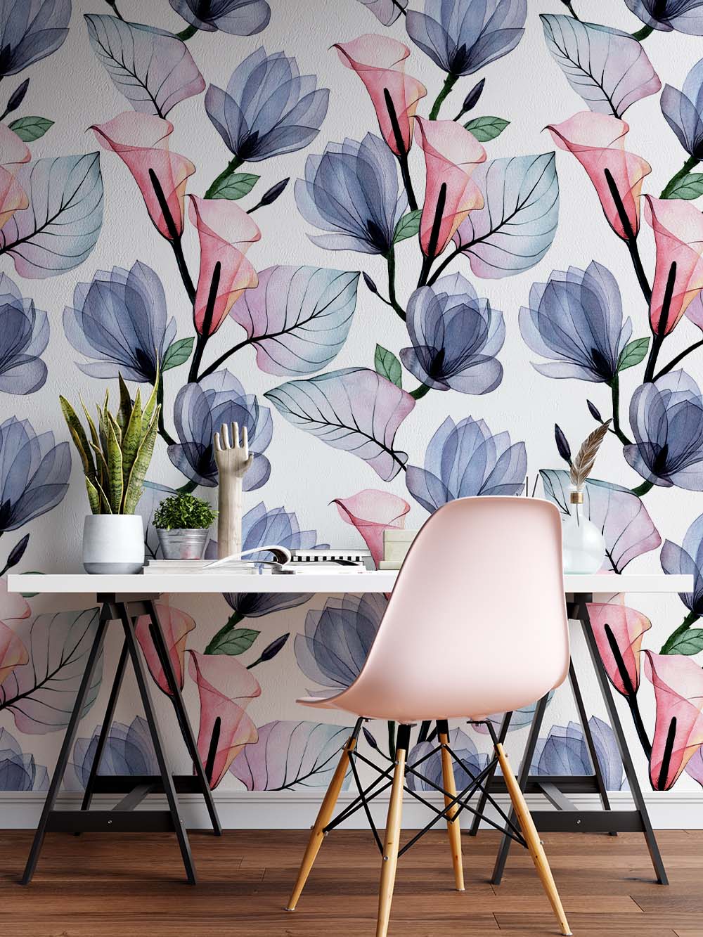 Terug naar collectie / Behang / Witte Aquarel Bloemen Behang Roze/Blauw