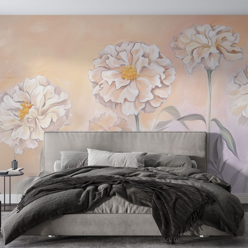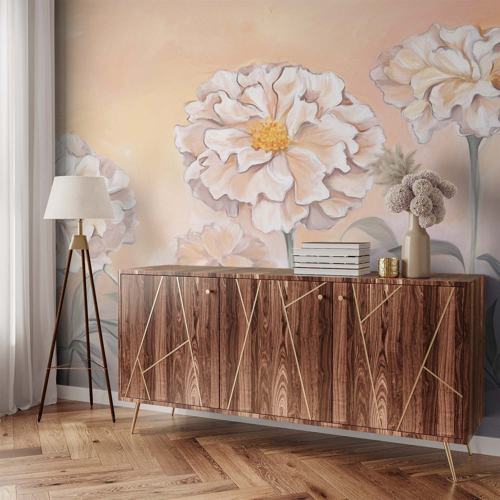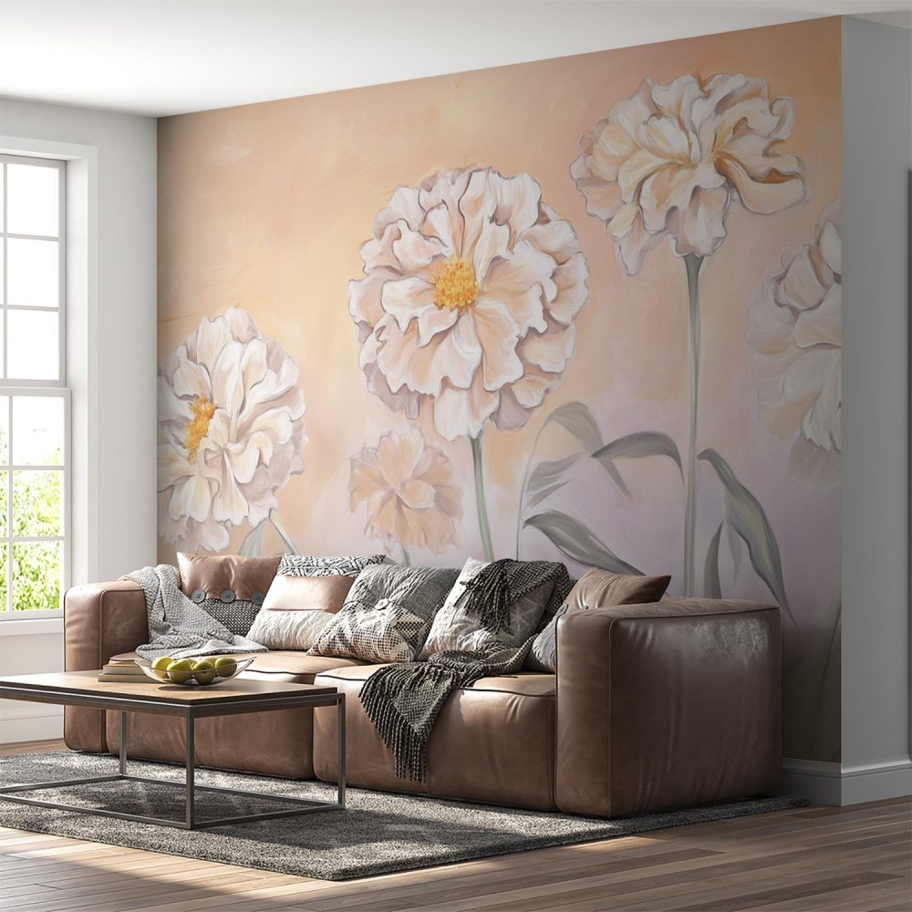 Terug naar collectie / Behang / Witte bloemen op roze behang
