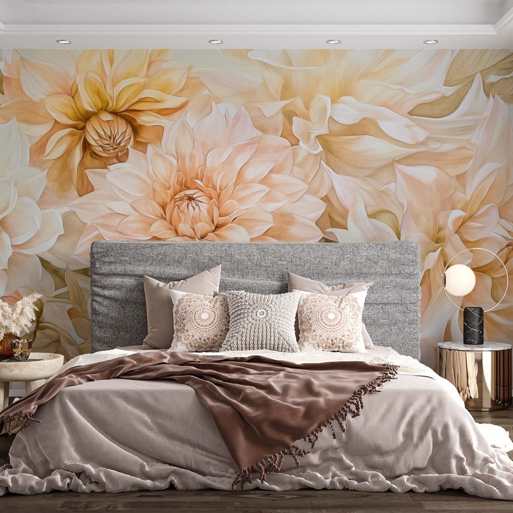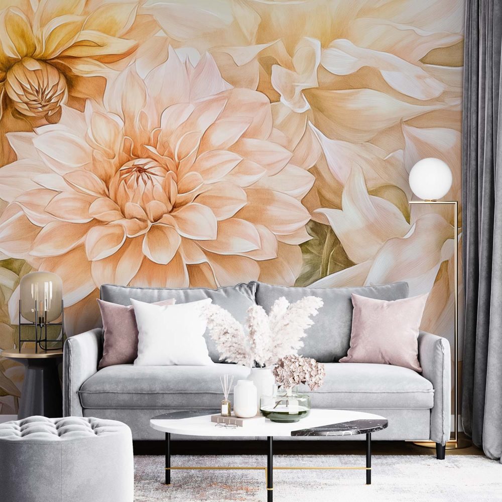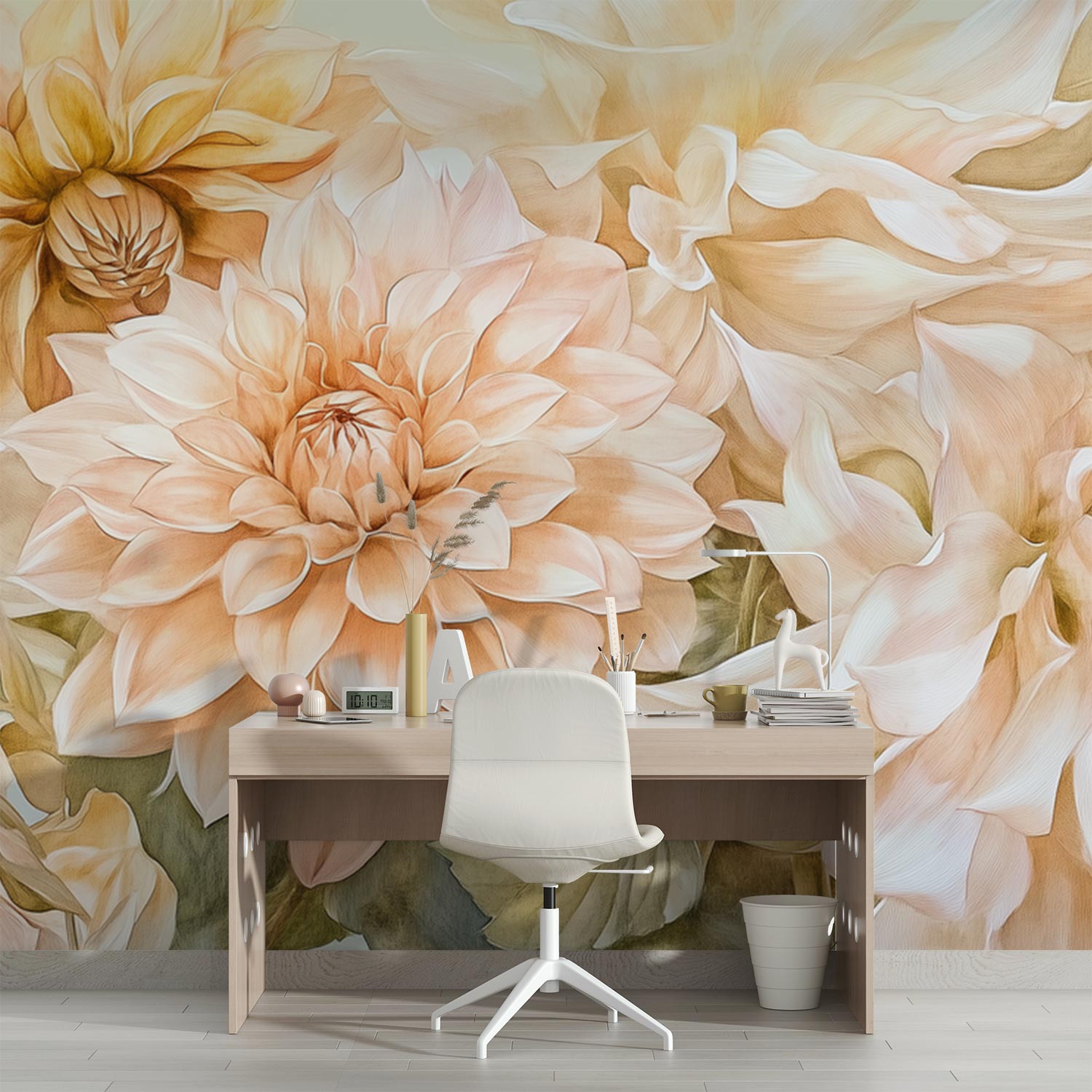 Terug naar collectie / Behang / Witte en perzik dahlia’s behang