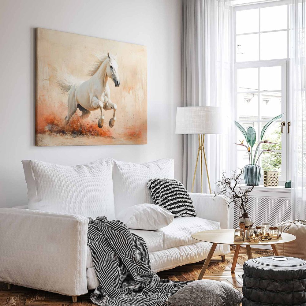 Terug naar collectie / Schilderijen / Dieren Schilderij / Witte galopperende impressie