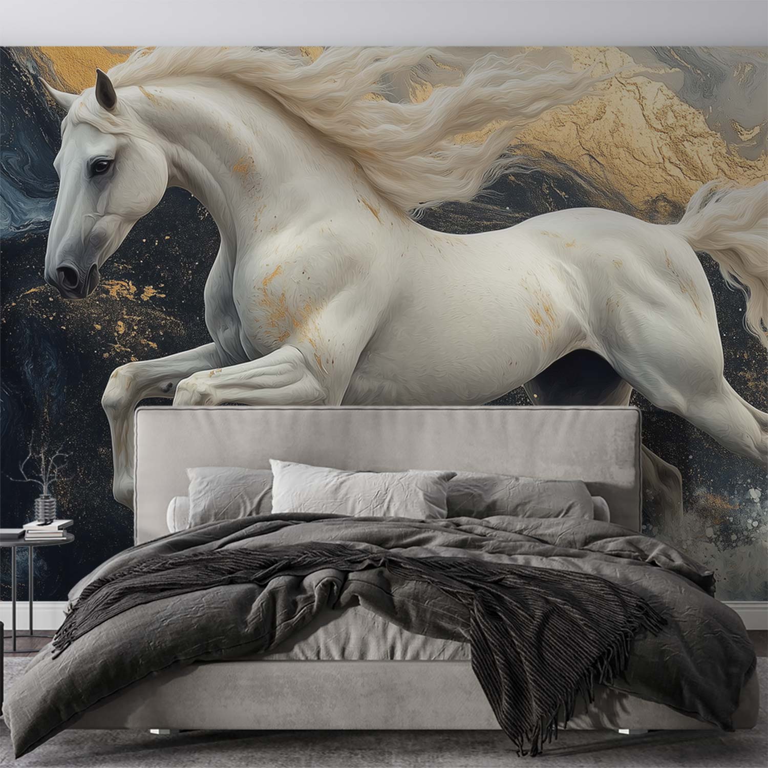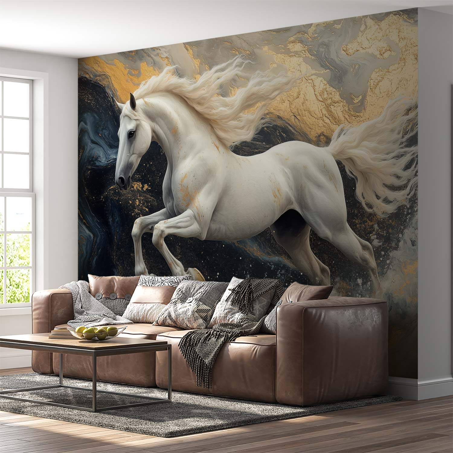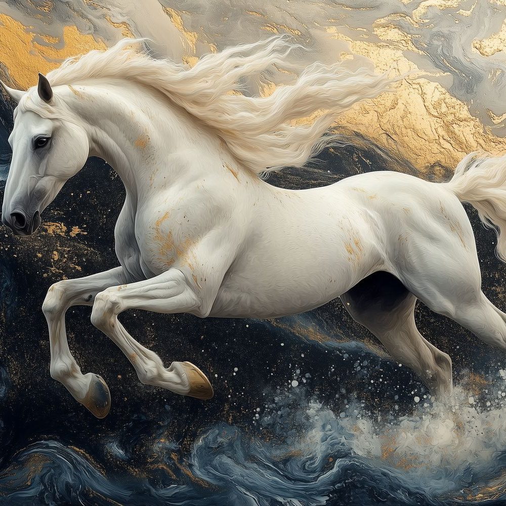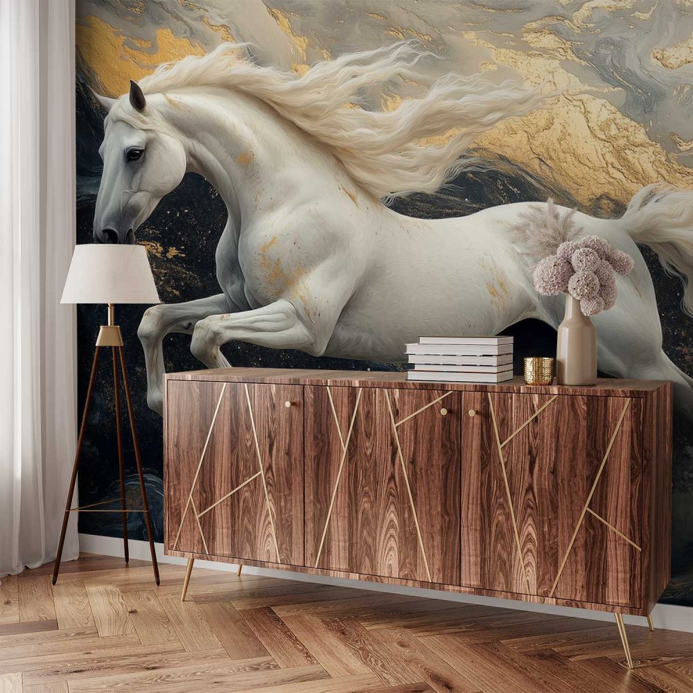 Terug naar collectie / Behang / Abstract behang / Witte galopperende paard behang