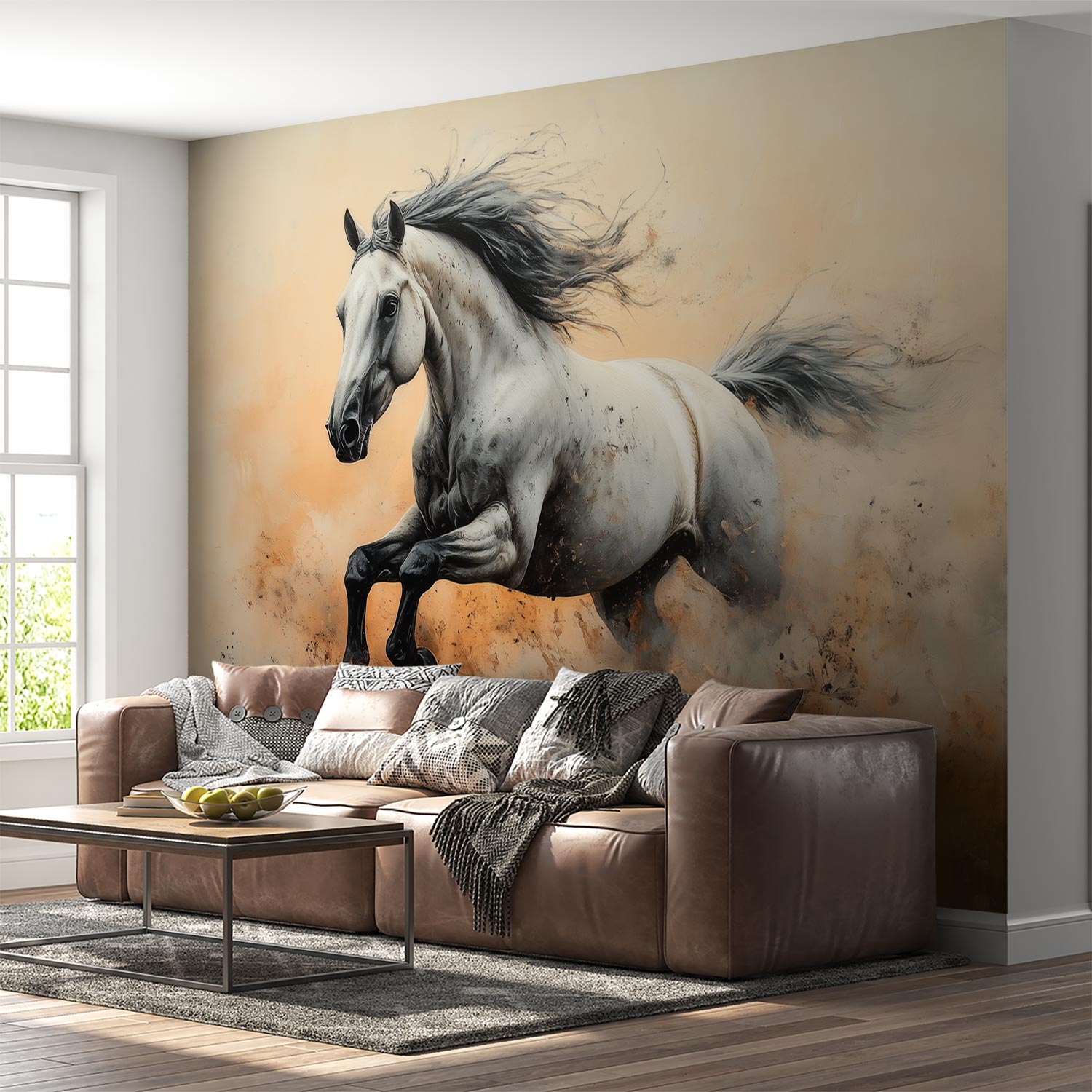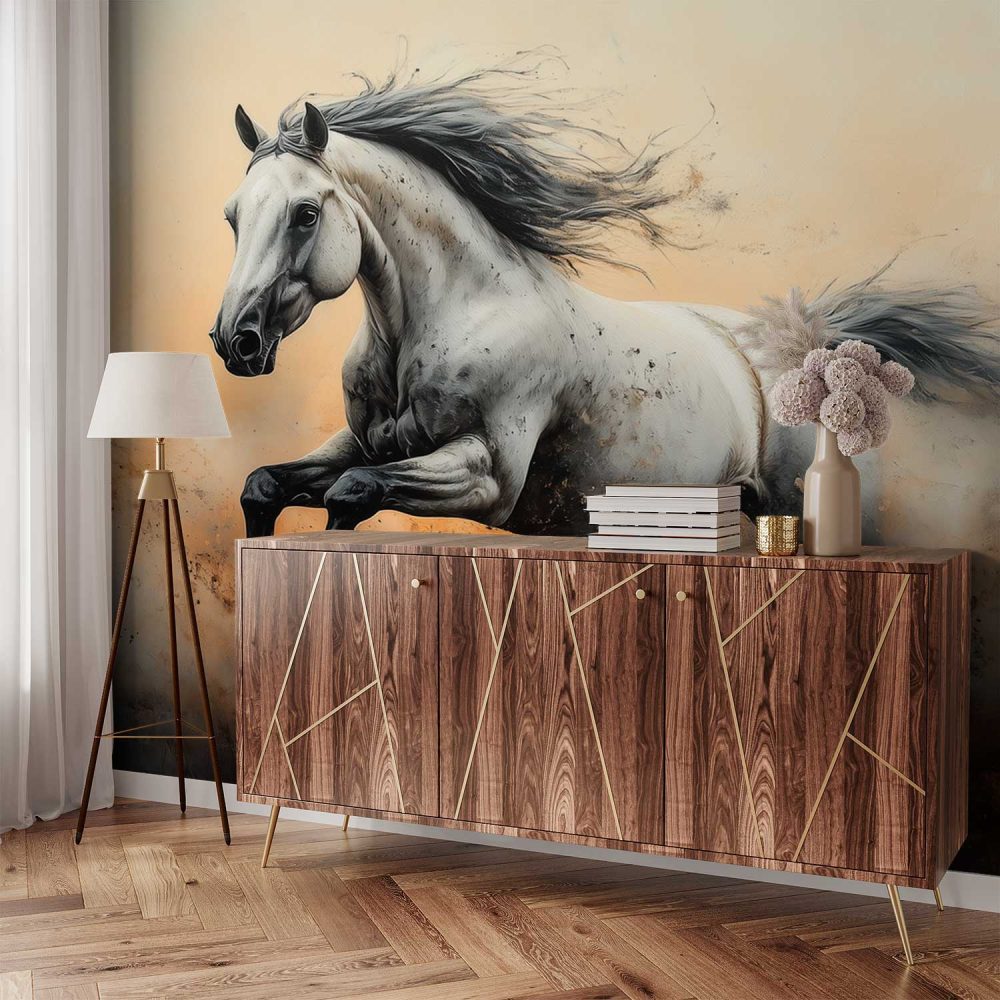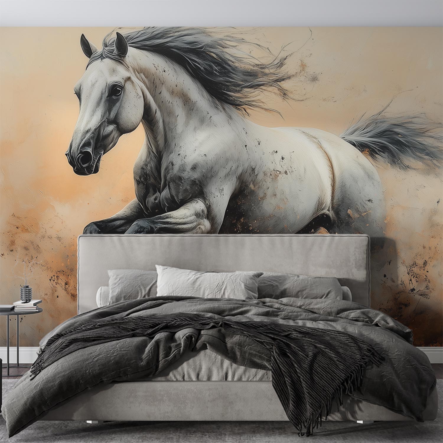 Terug naar collectie / Behang / Witte galopperende paardenkracht behang