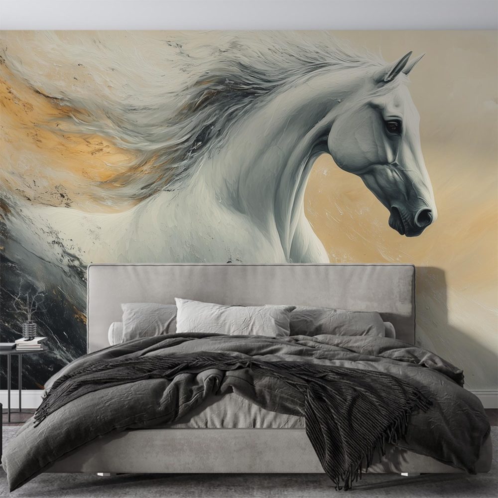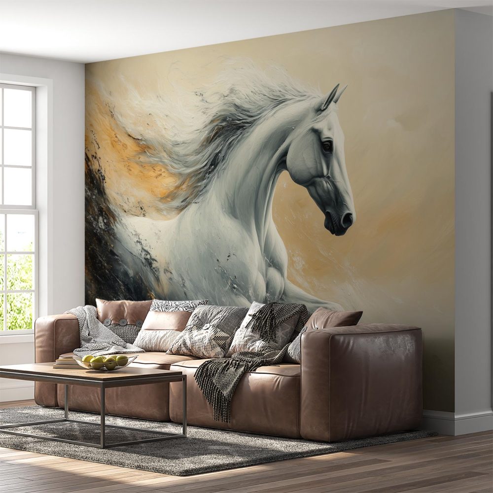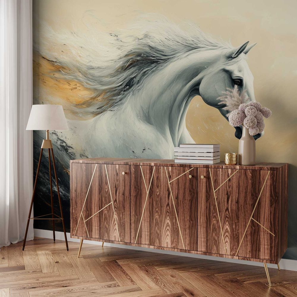 Terug naar collectie / Behang / Abstract behang / Witte Galopperende Paardenkunst behang