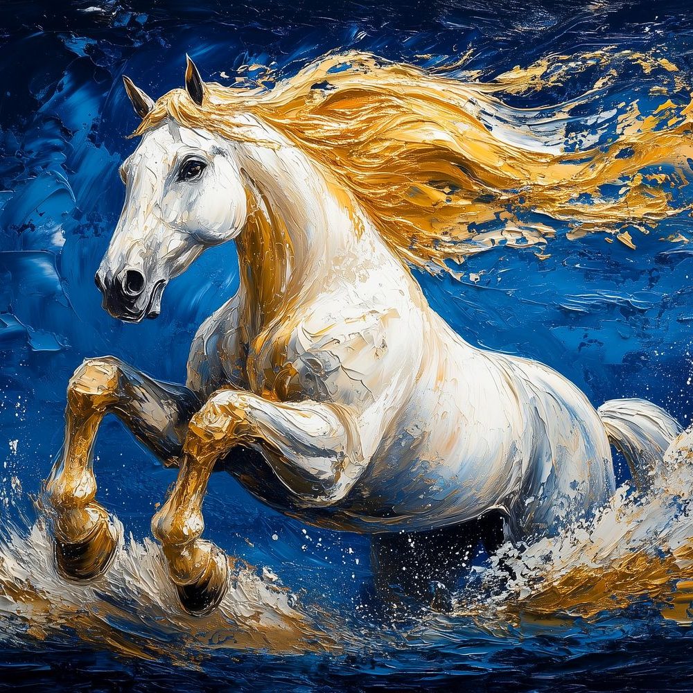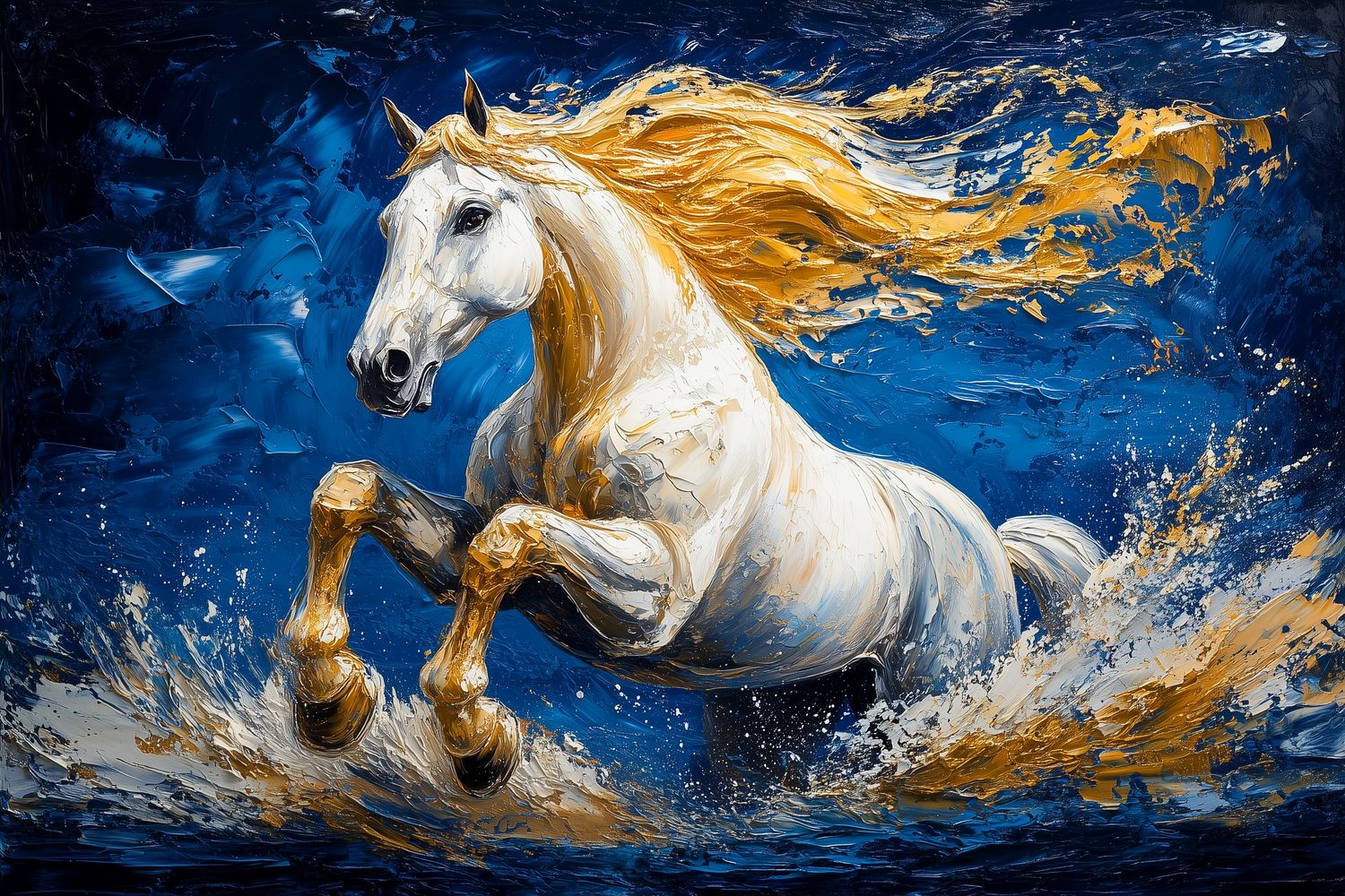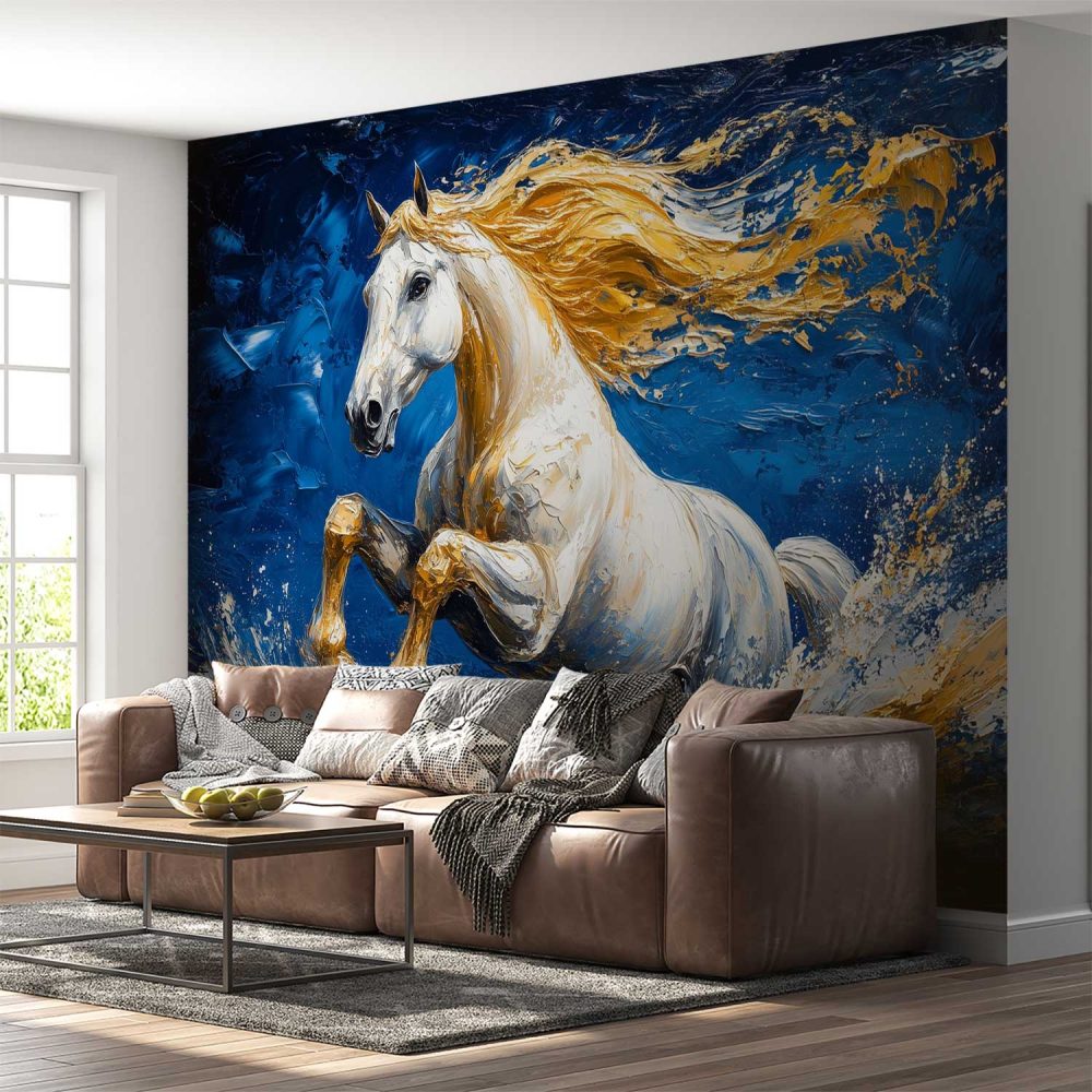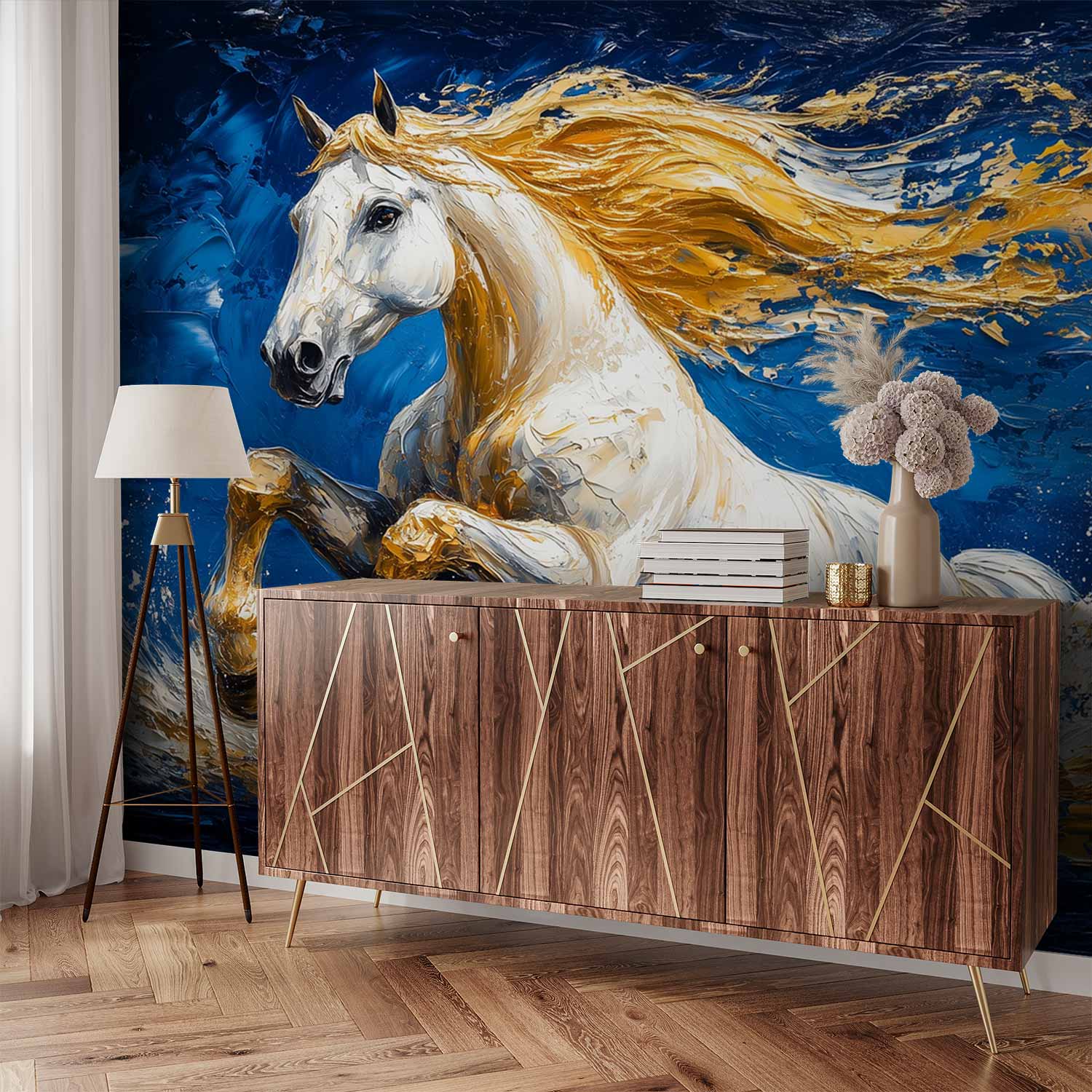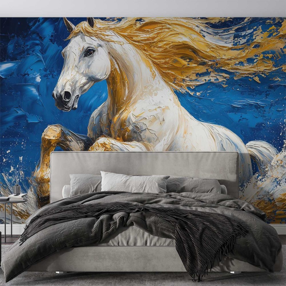 Terug naar collectie / Behang / Abstract behang / Witte Galopperende Paardimpressie behang