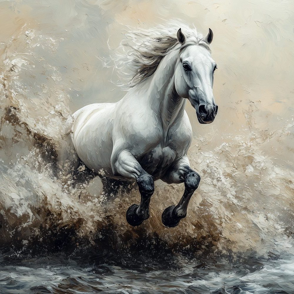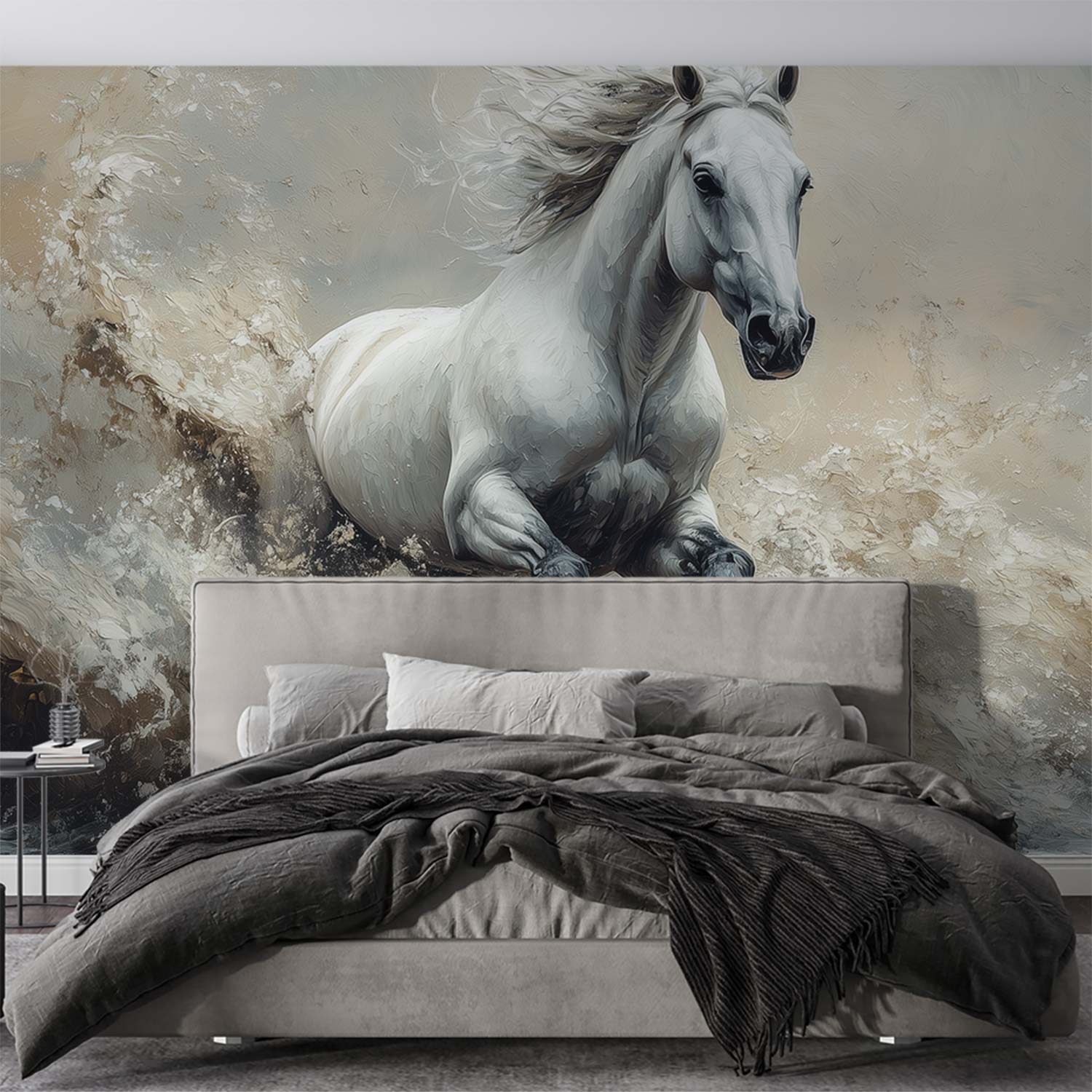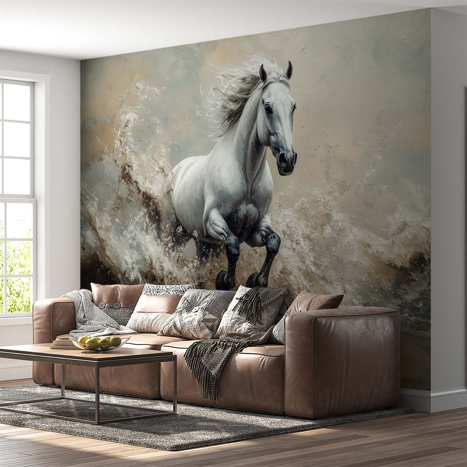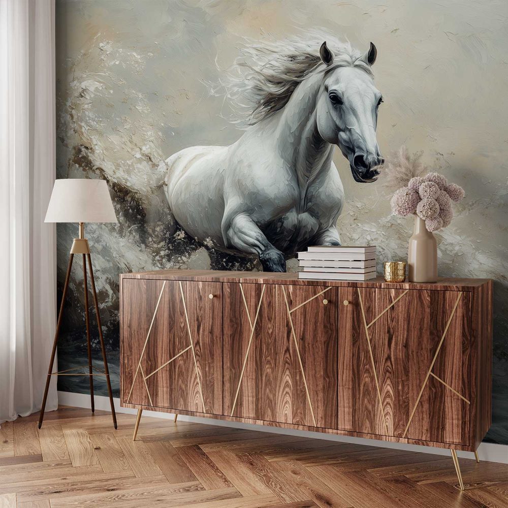 Terug naar collectie / Behang / Abstract behang / Witte galopperende waterpaard behang