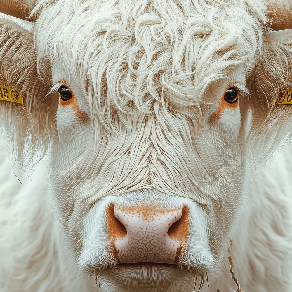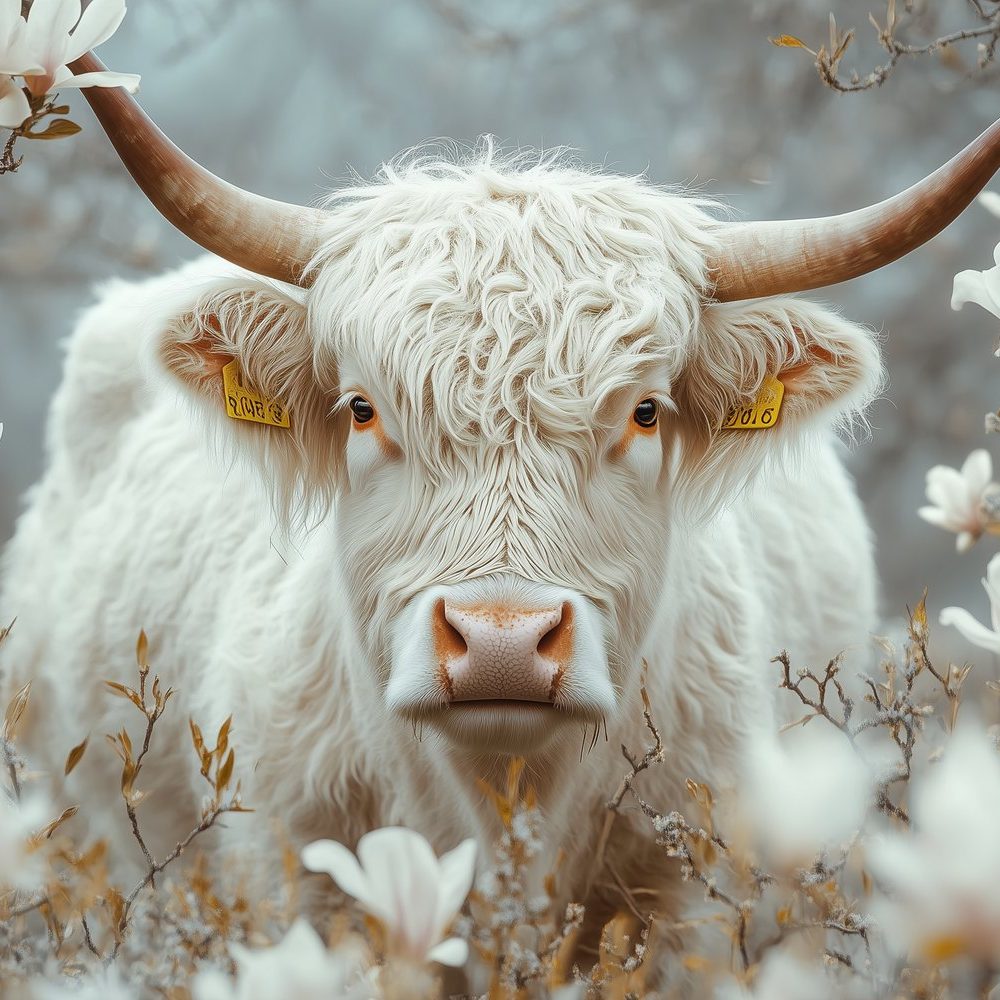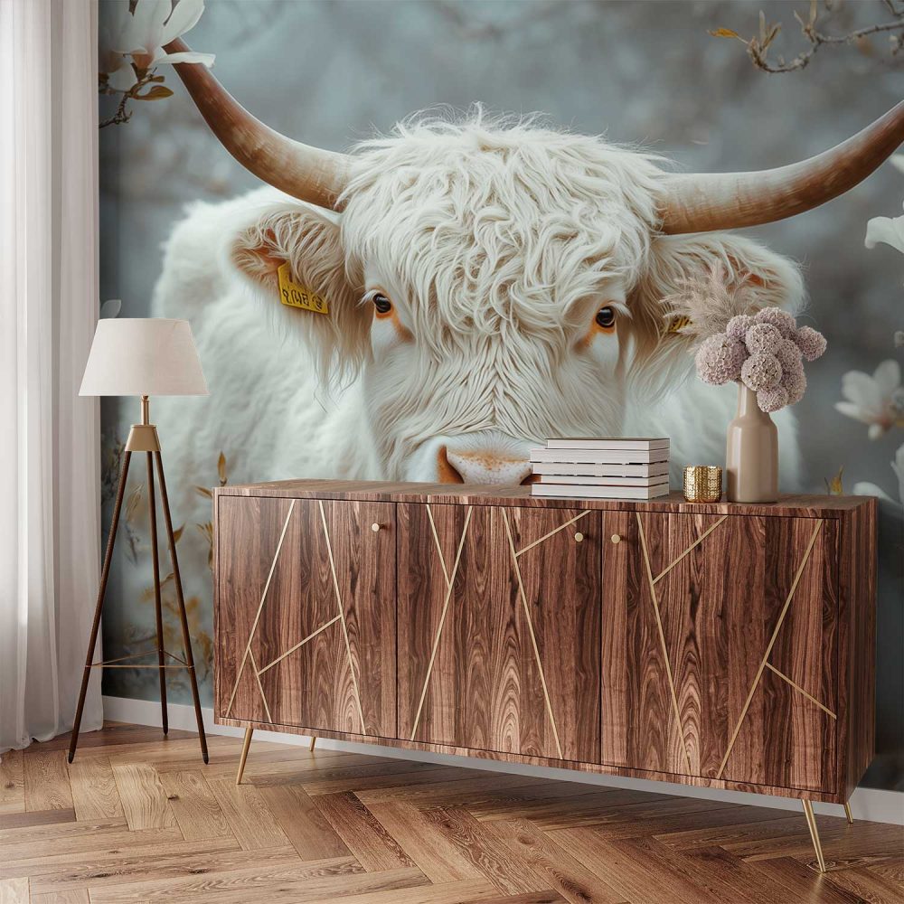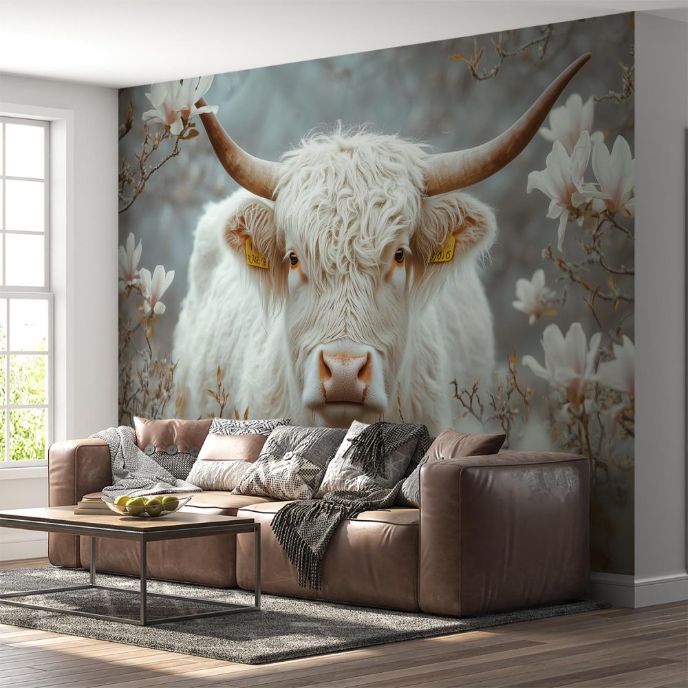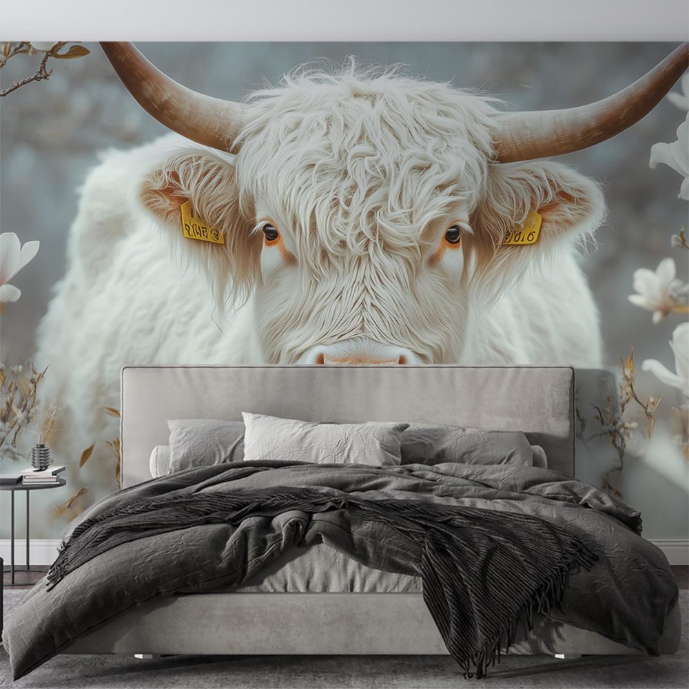 Witte Koe in Bloemenveld behang