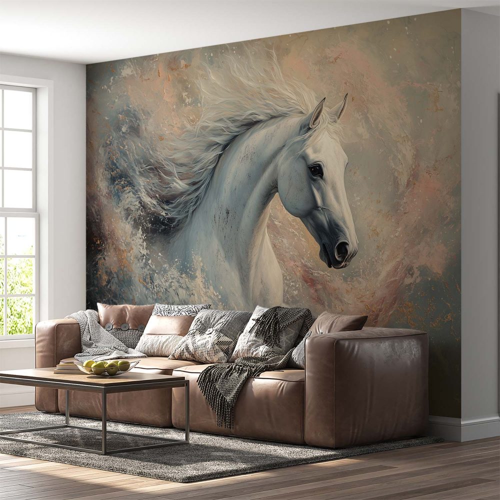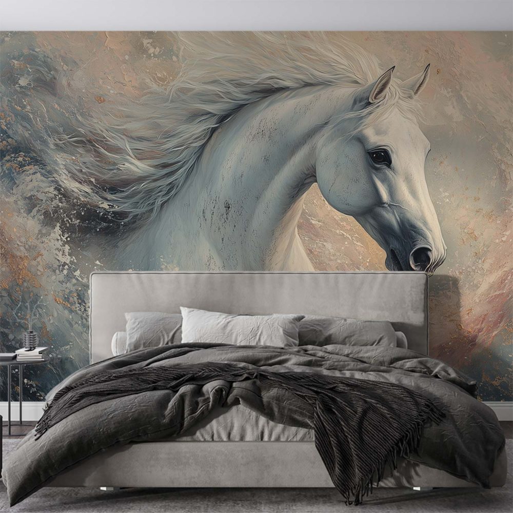 Witte Paard in Beweging behang