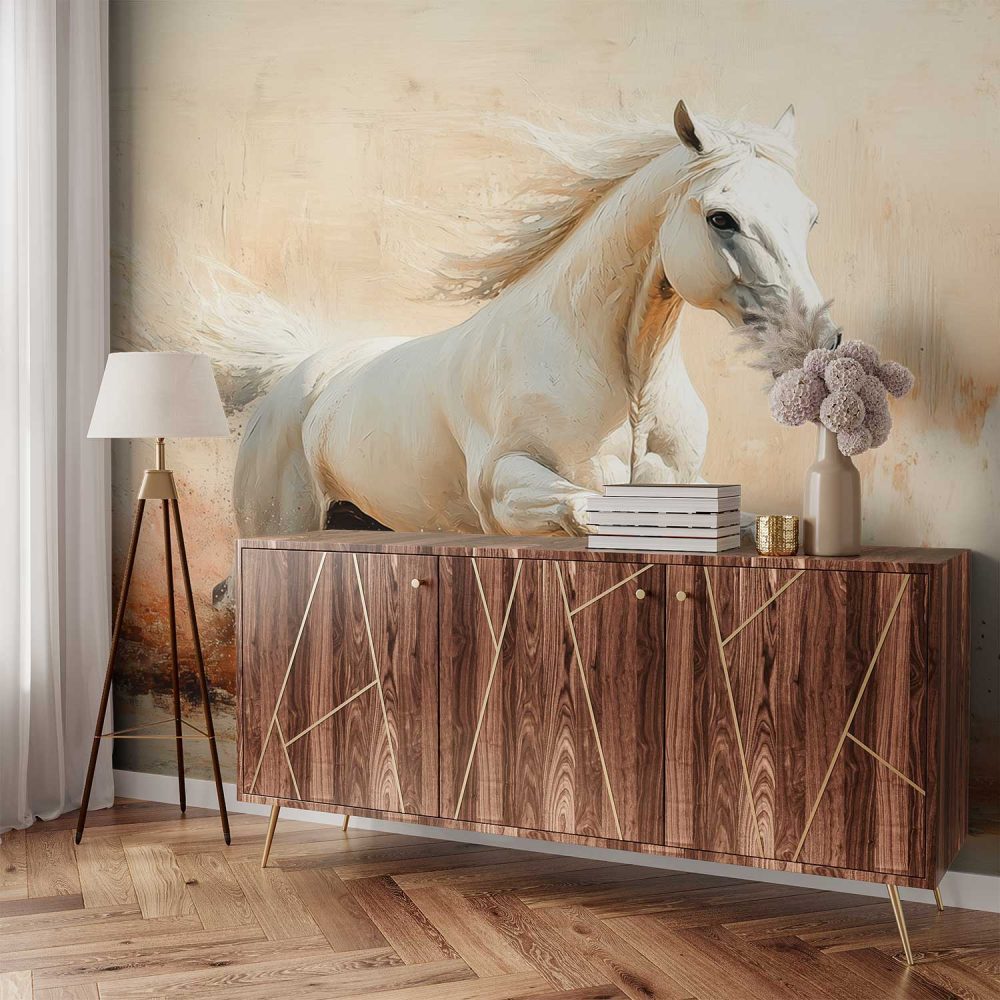 Terug naar collectie / Behang / Abstract behang / Witte paard in galop behang