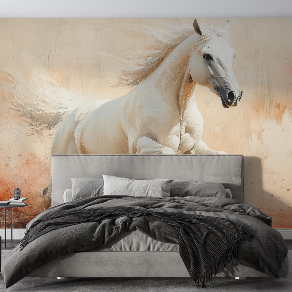 Witte paard in galop behang
