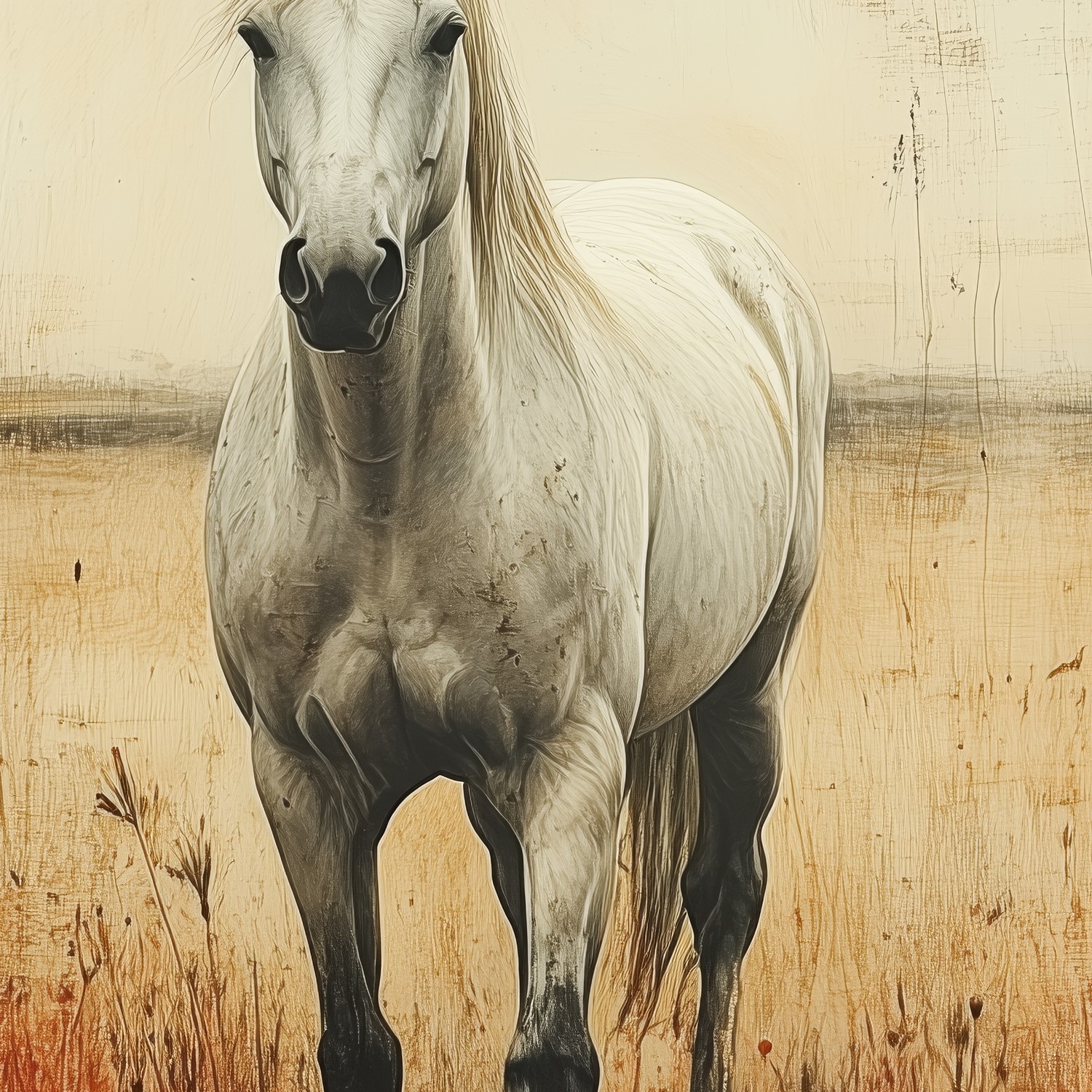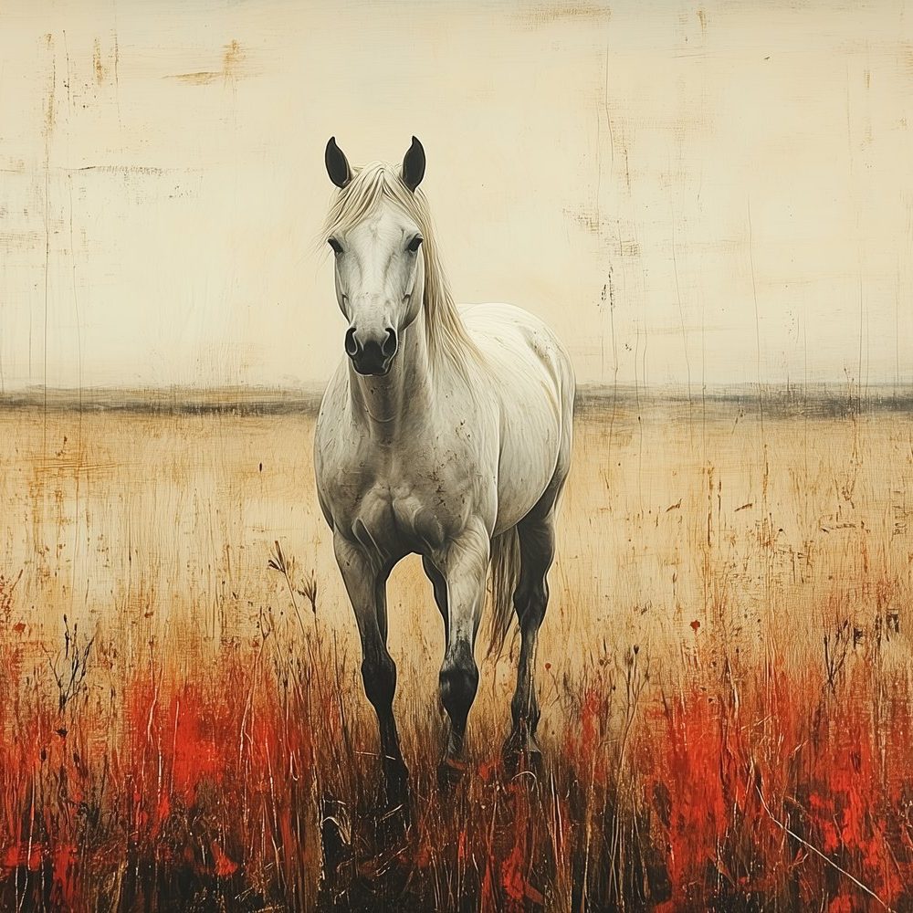 Witte Paard in Grasveld behang