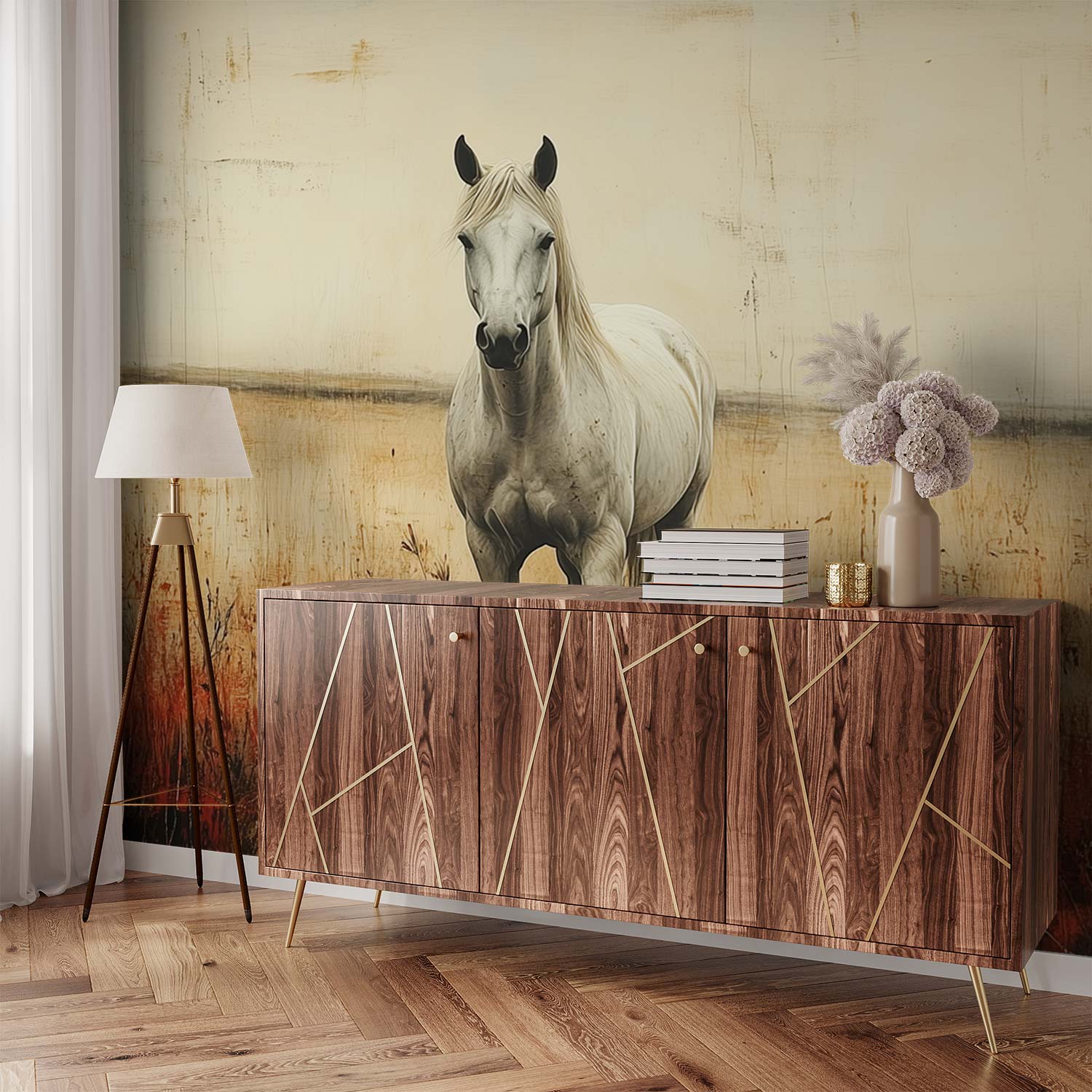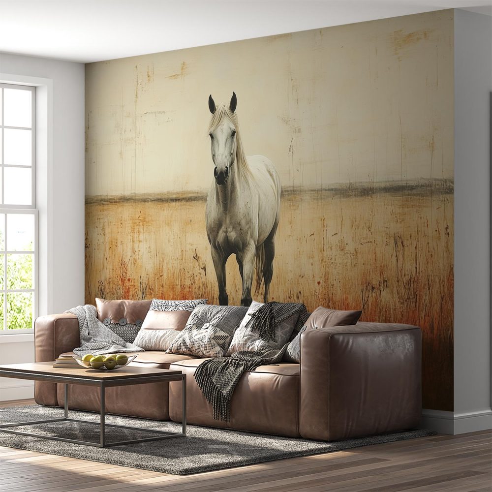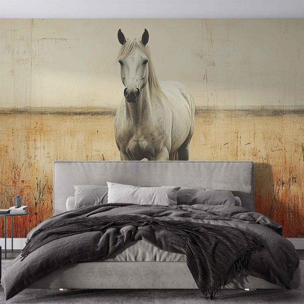 Terug naar collectie / Behang / Witte Paard in Grasveld behang