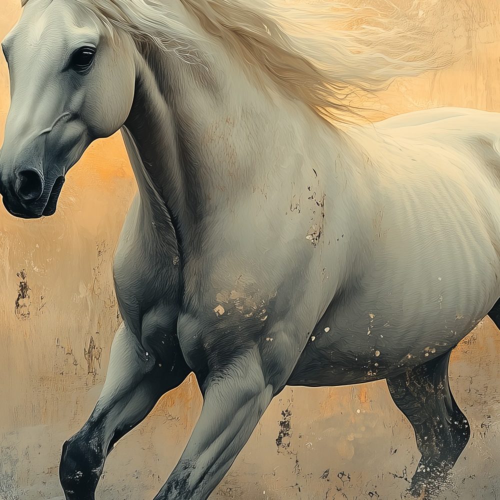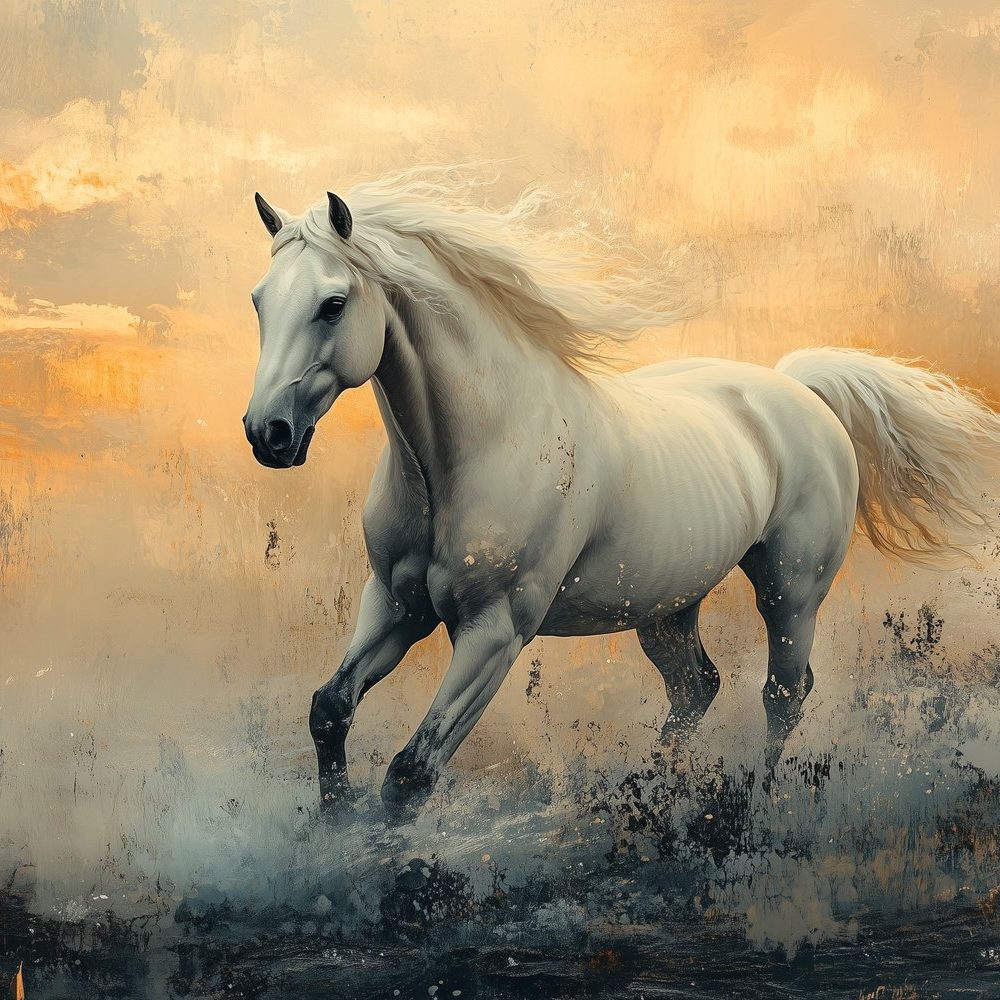Terug naar collectie / Behang / Witte paard in oranje veld behang