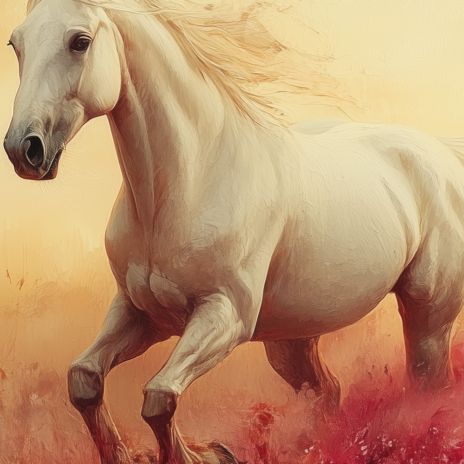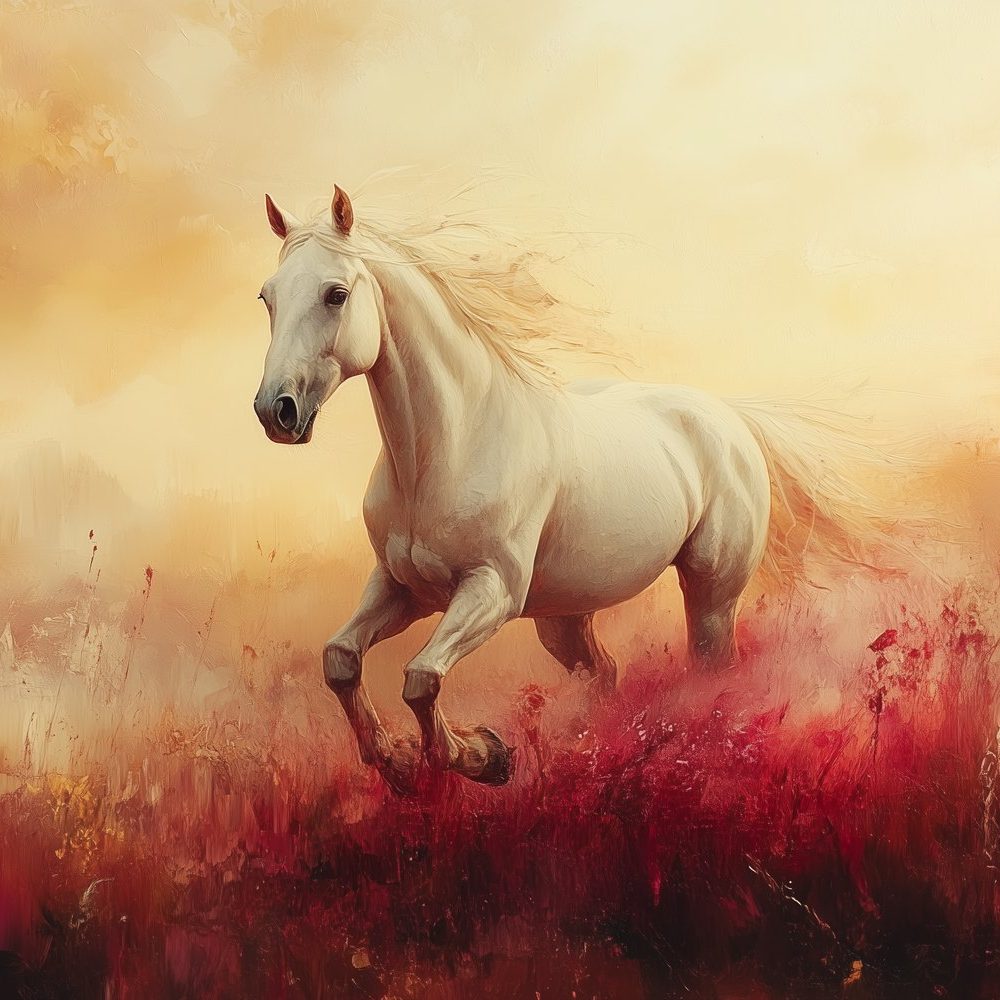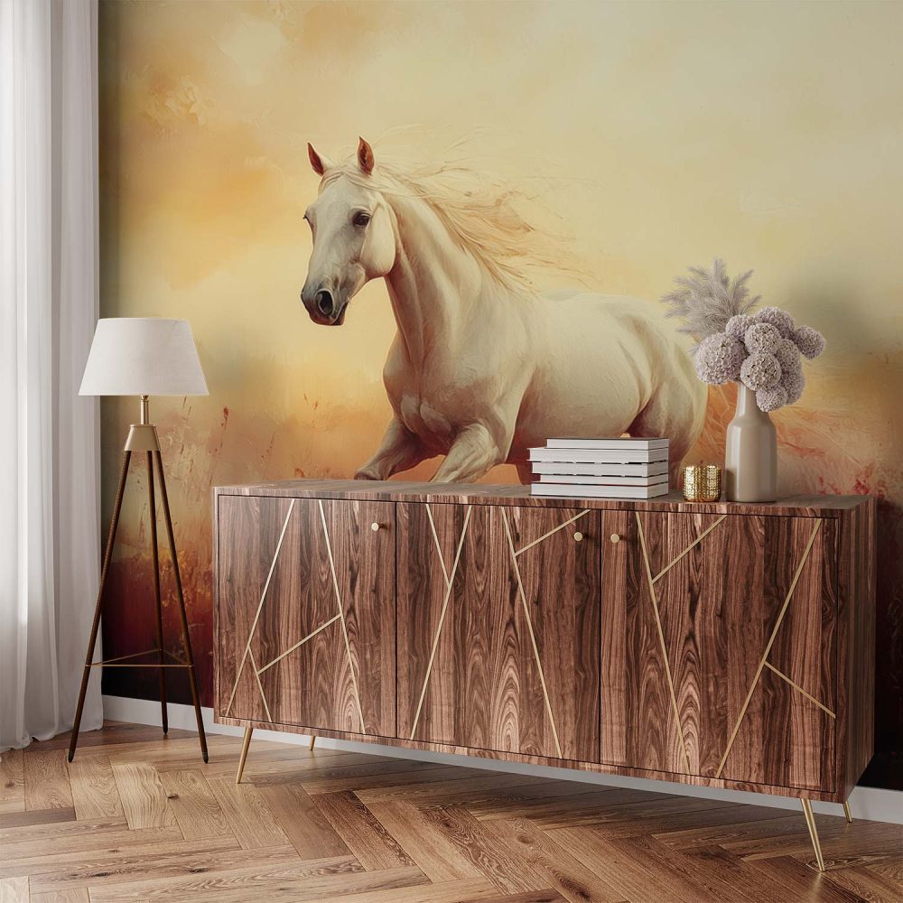 Terug naar collectie / Behang / Witte paard in rode bloemen behang