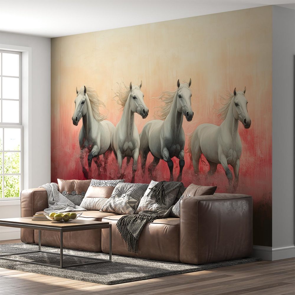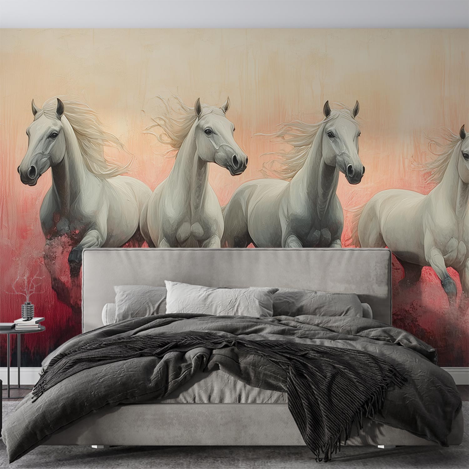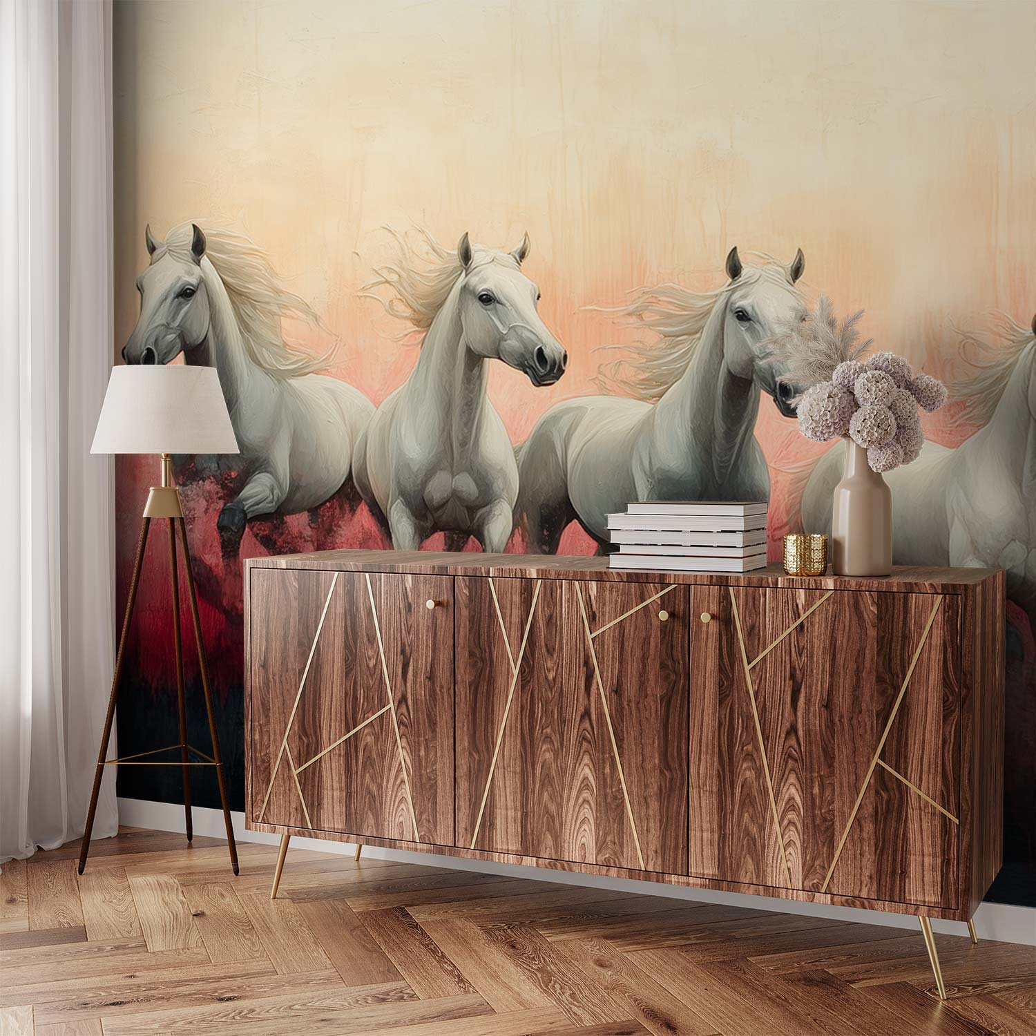 Terug naar collectie / Behang / Abstract behang / Witte paarden in volle vaart behang