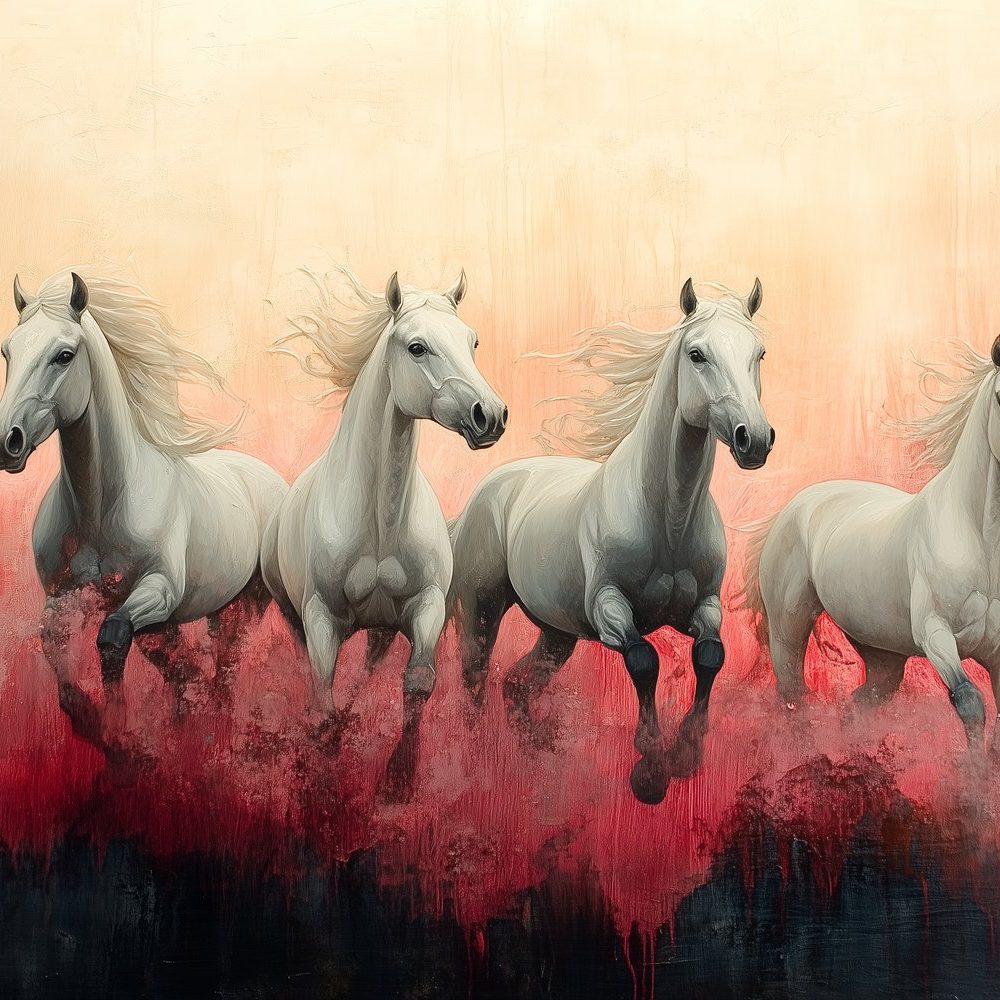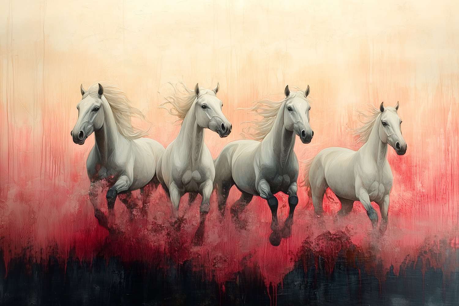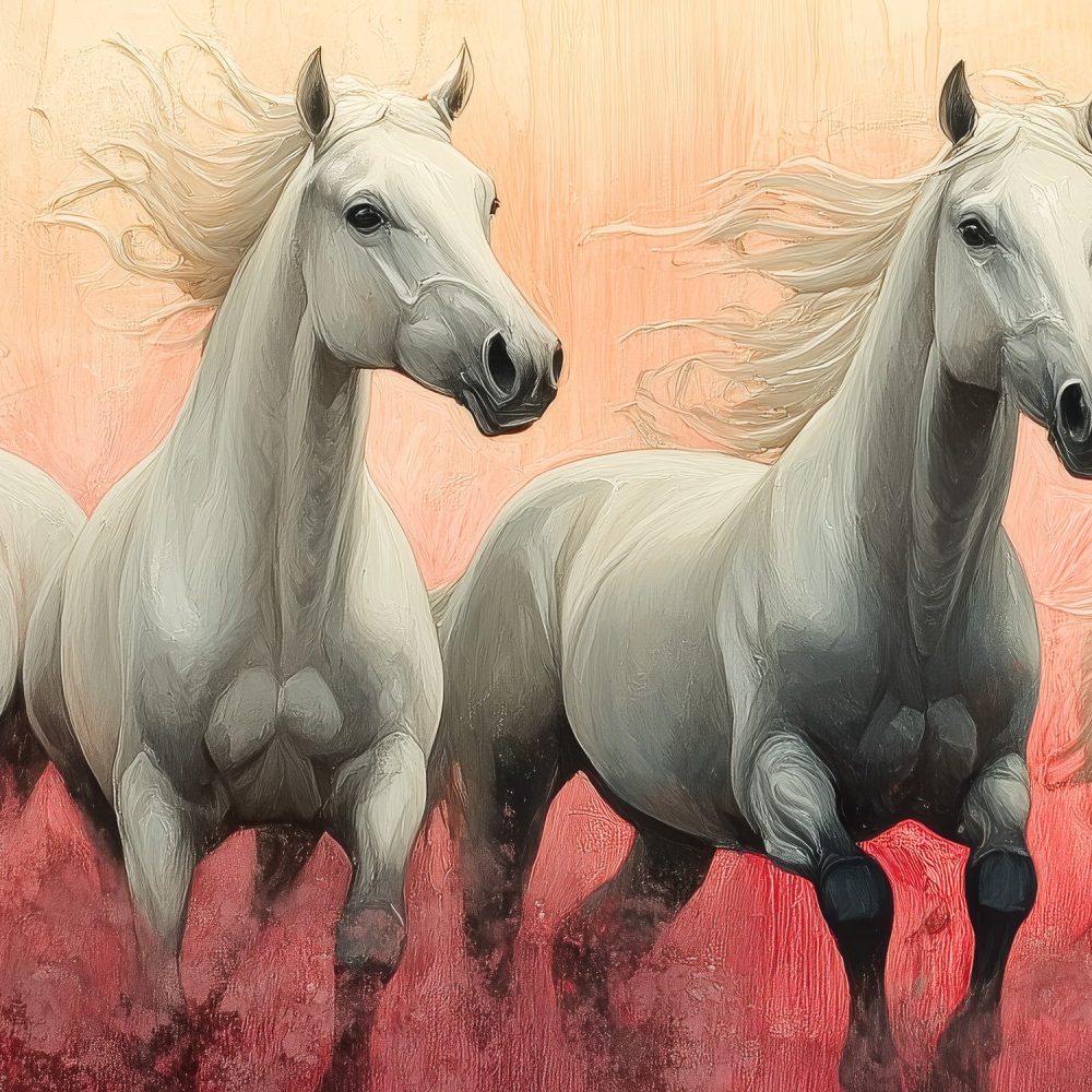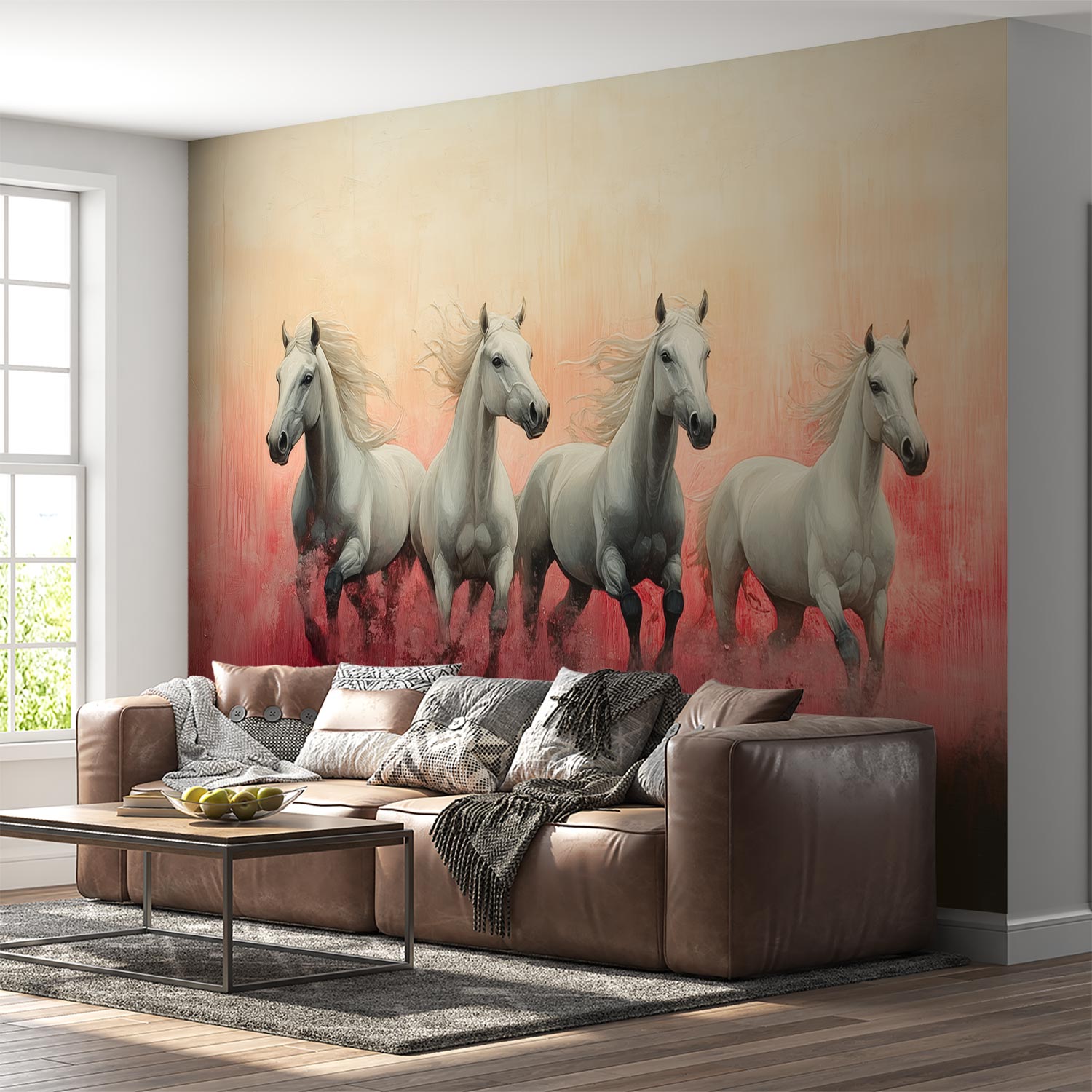 Terug naar collectie / Behang / Abstract behang / Witte paarden in volle vaart behang