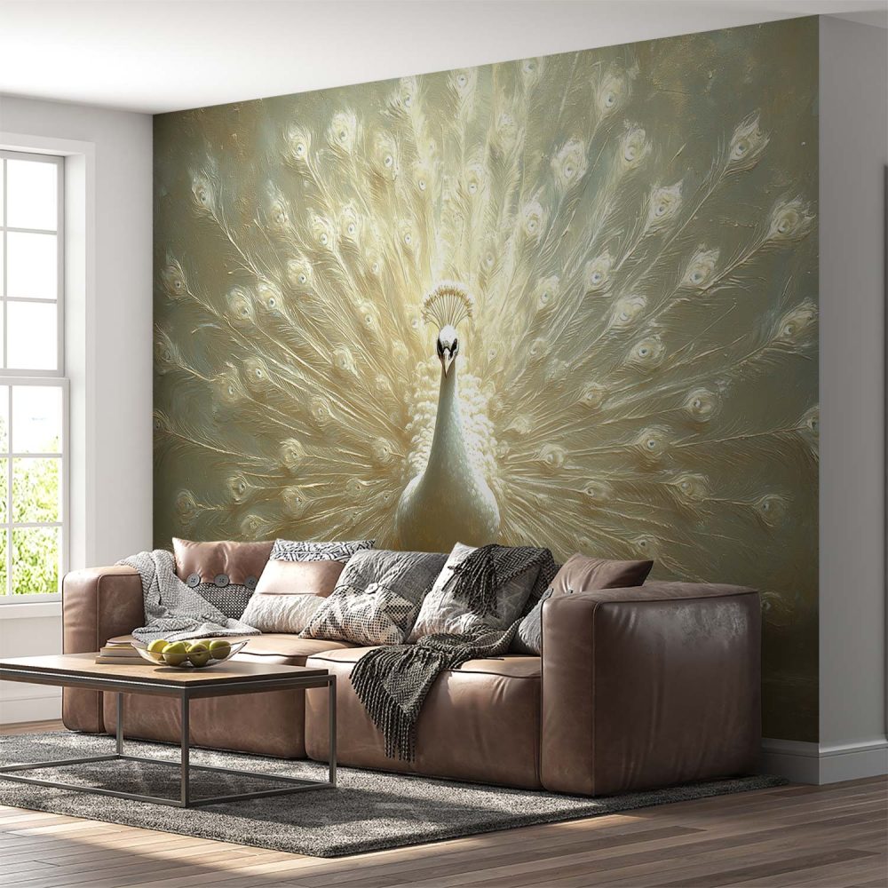 Witte Pauw Prachtvertoon behang