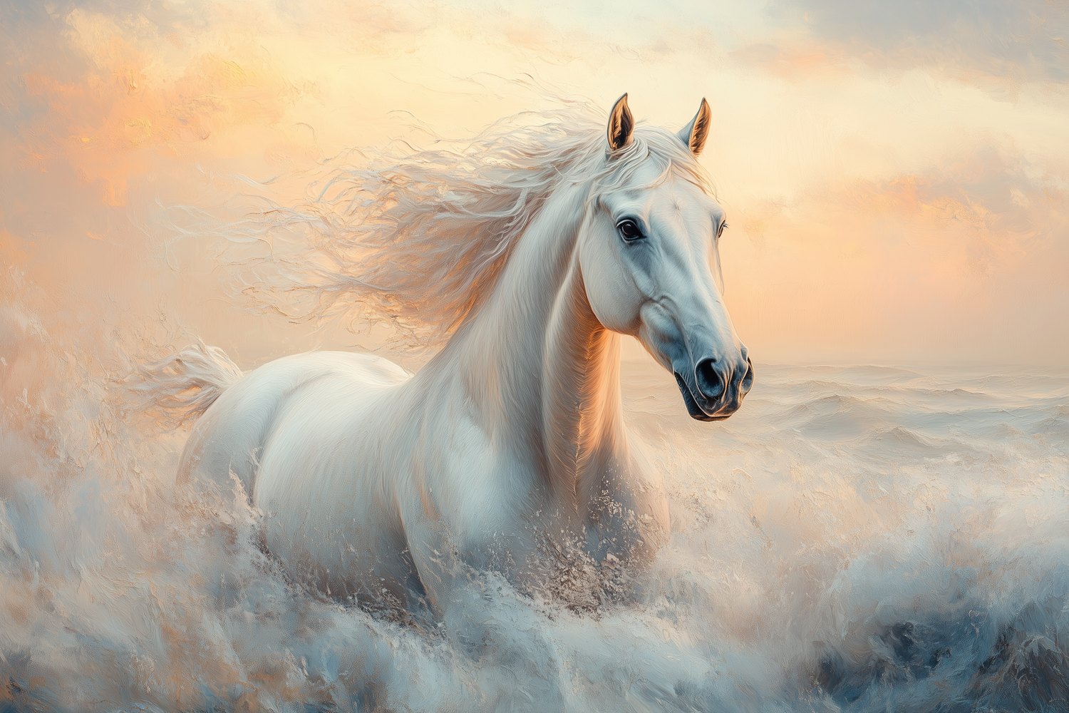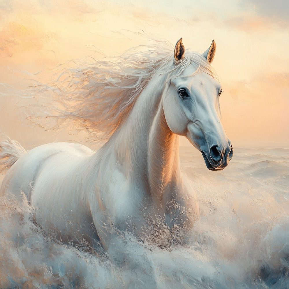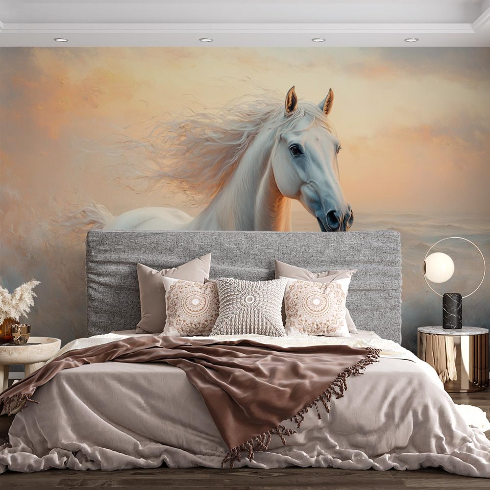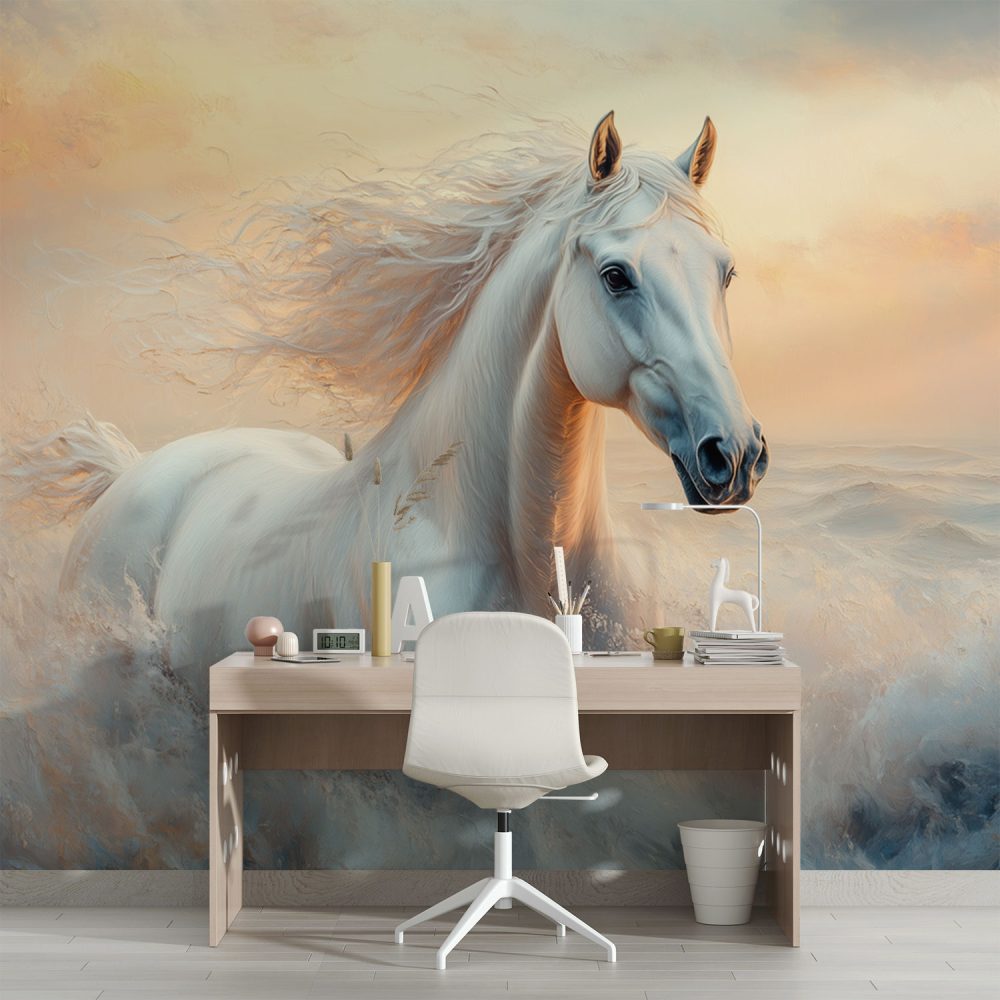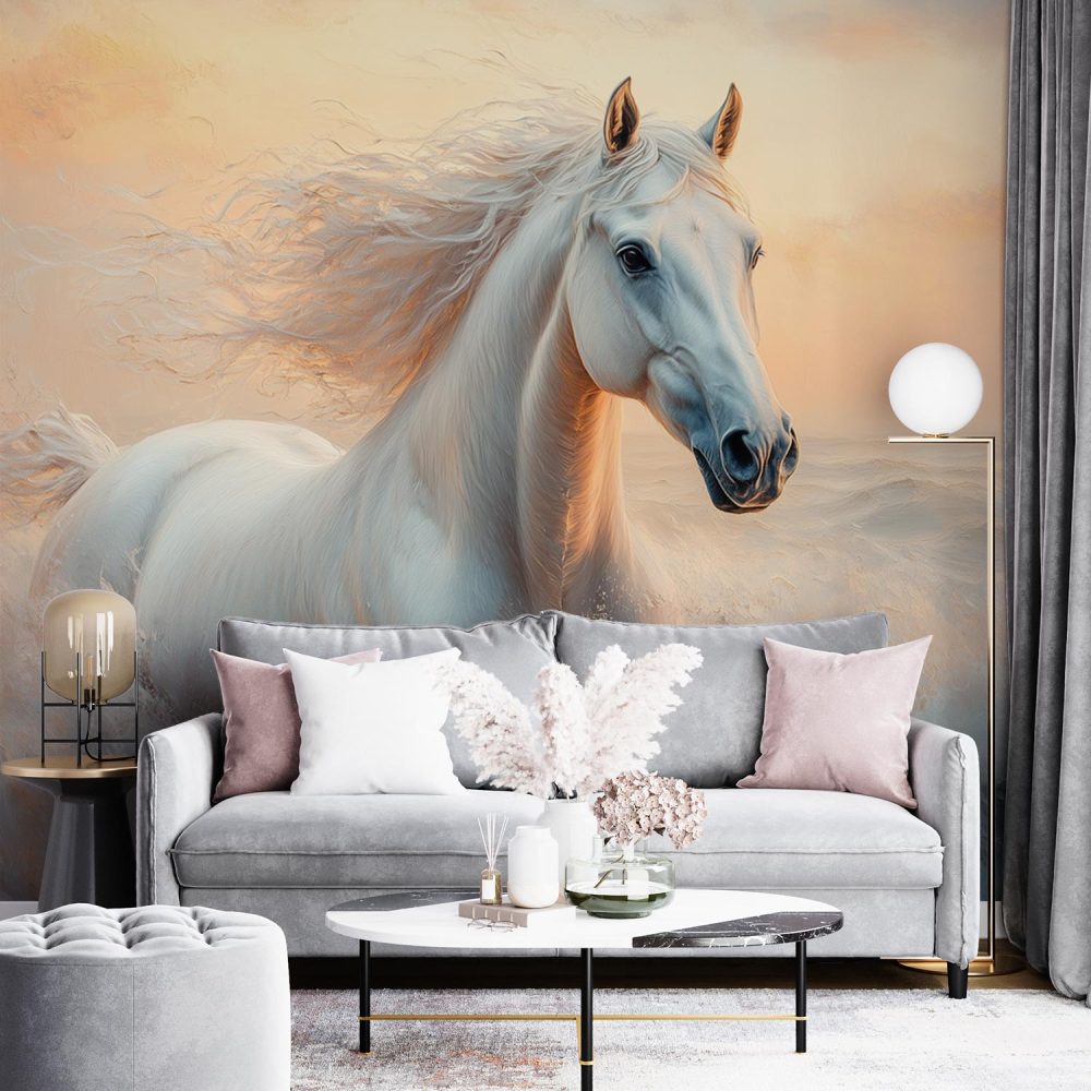 Terug naar collectie / Behang / Witte rennende paardenkracht behang