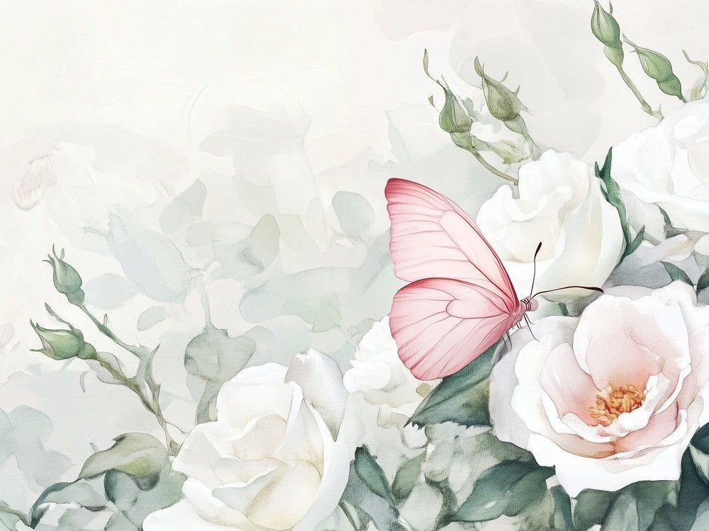 Witte Rozen Met Vlinder behang