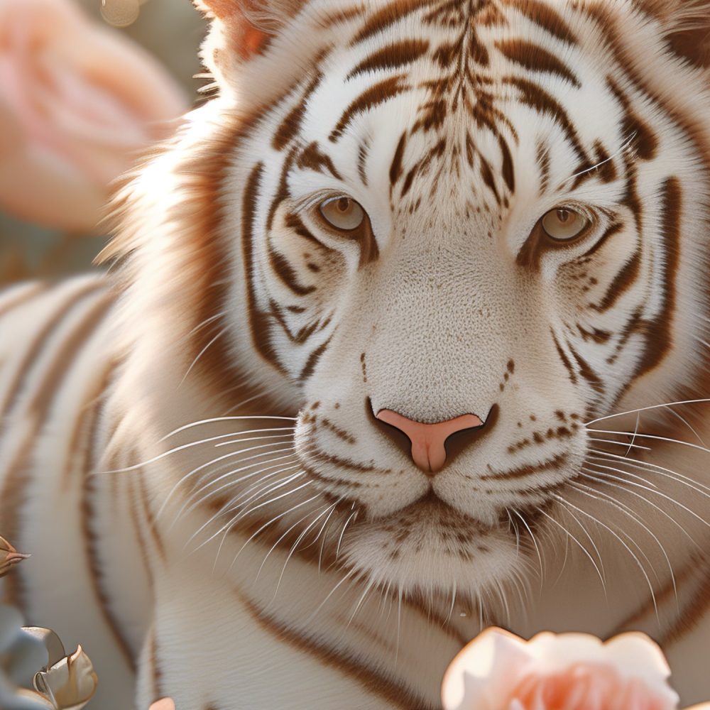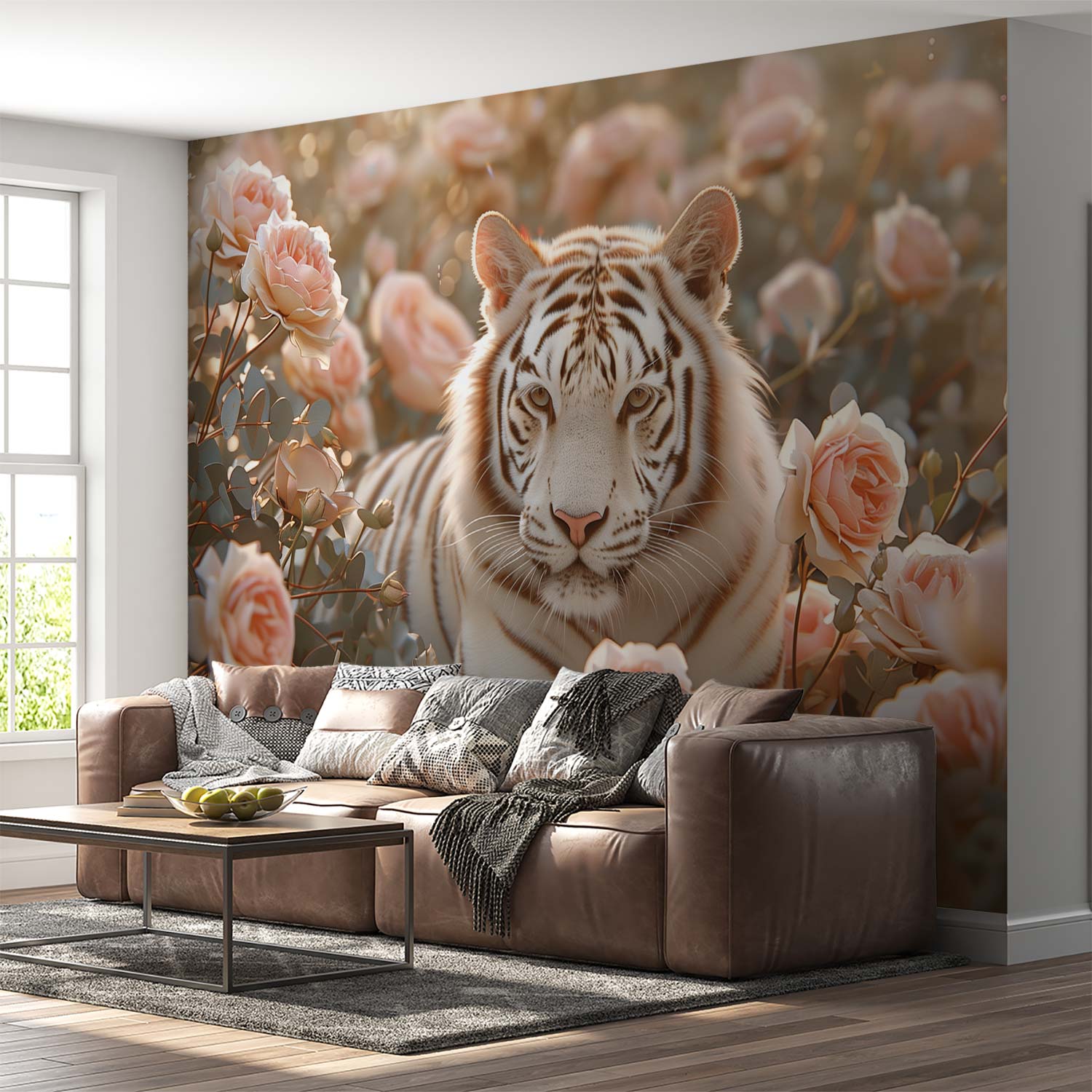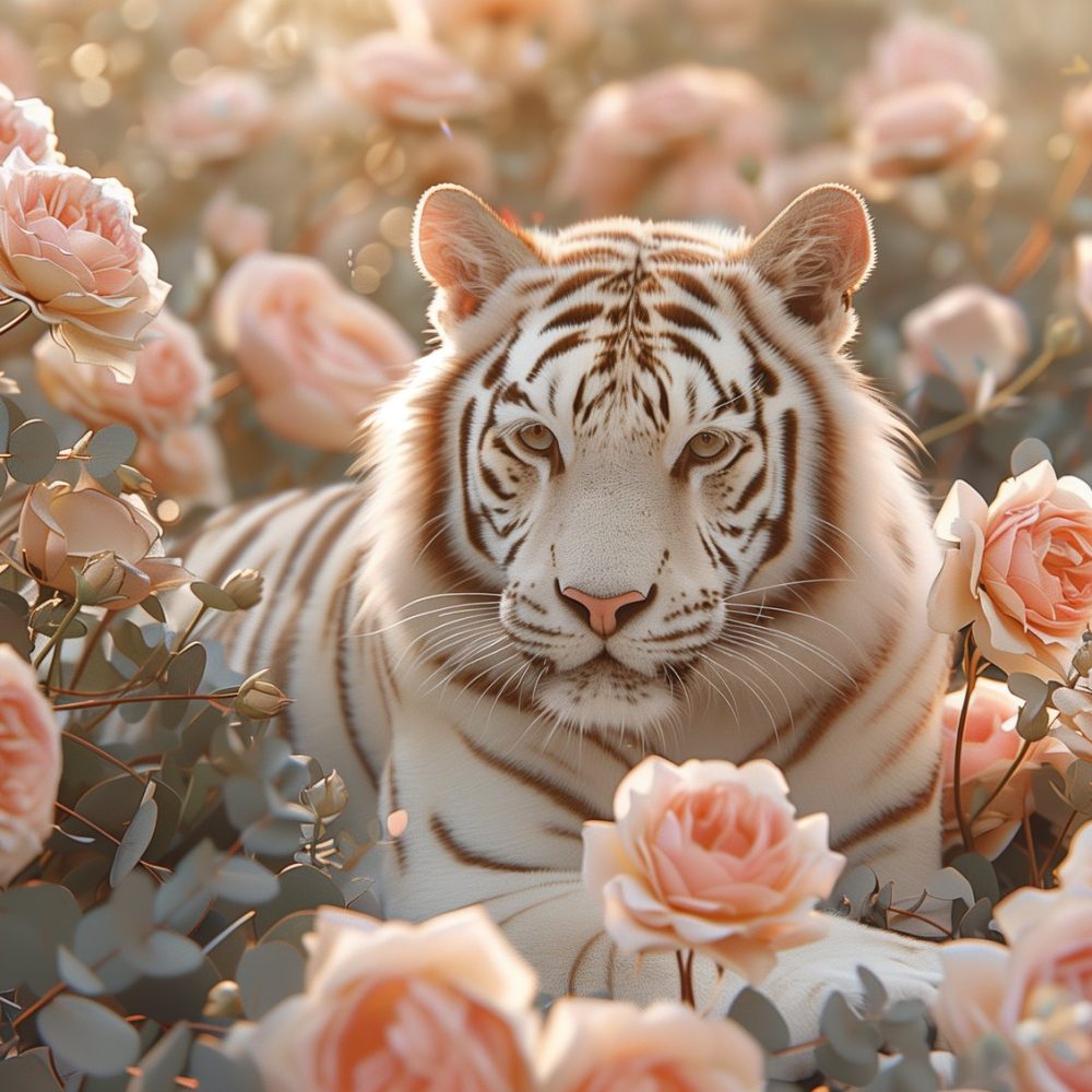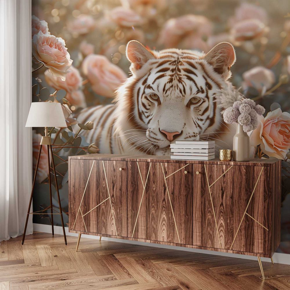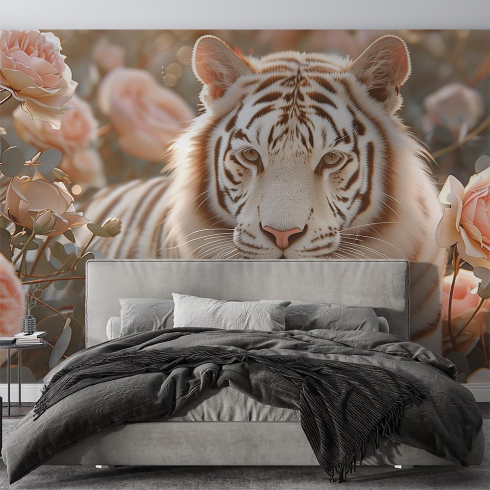 Witte Tijger in Rozen behang