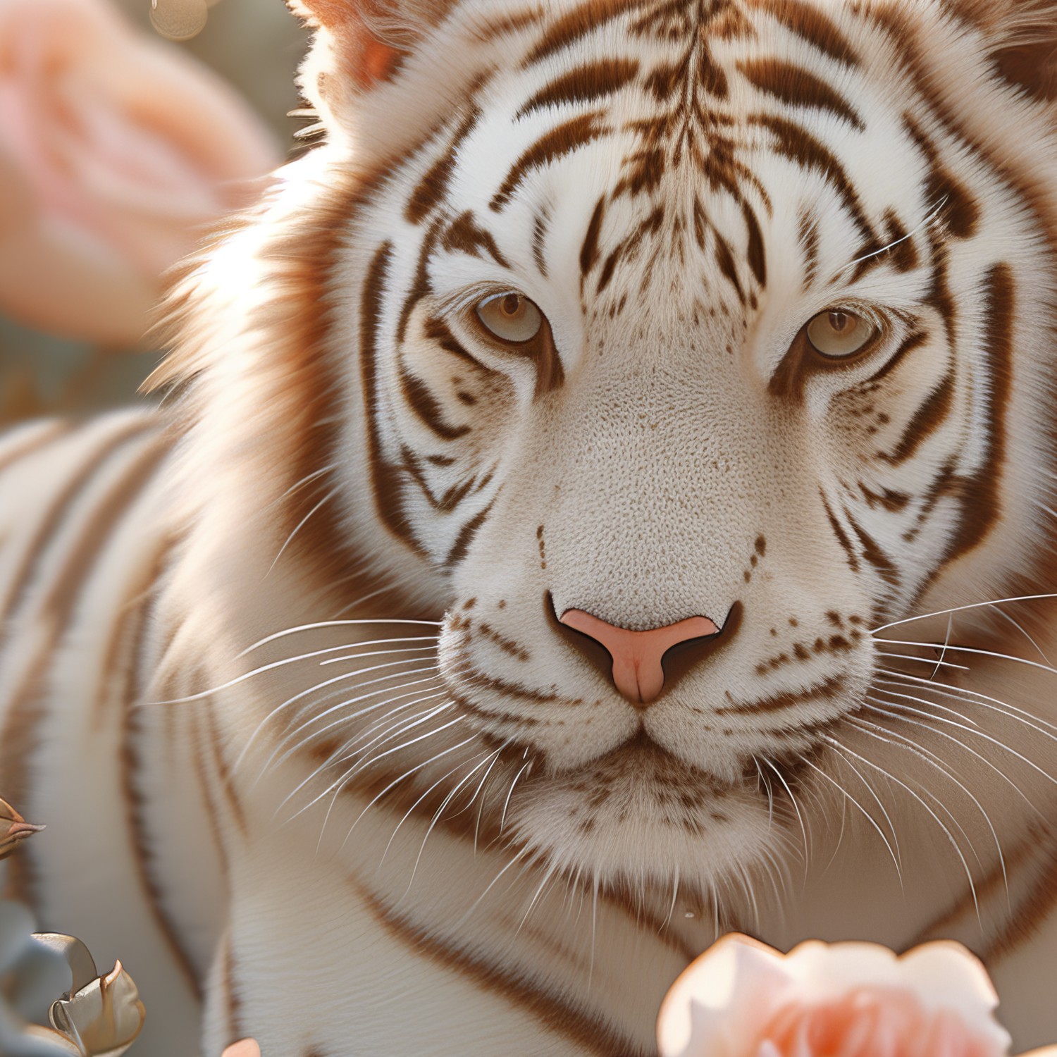 Terug naar collectie / Behang / Witte Tijger in Rozen behang