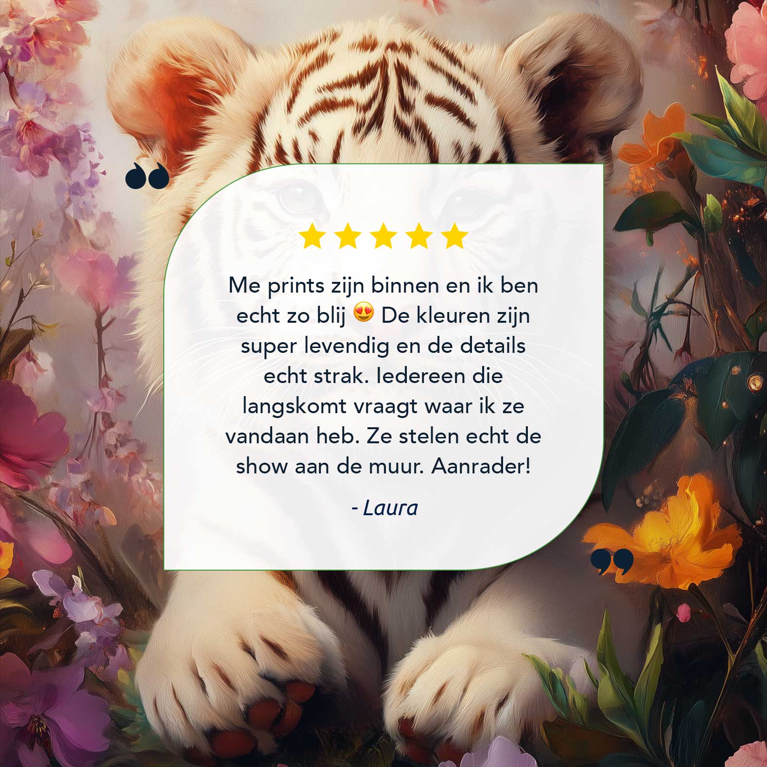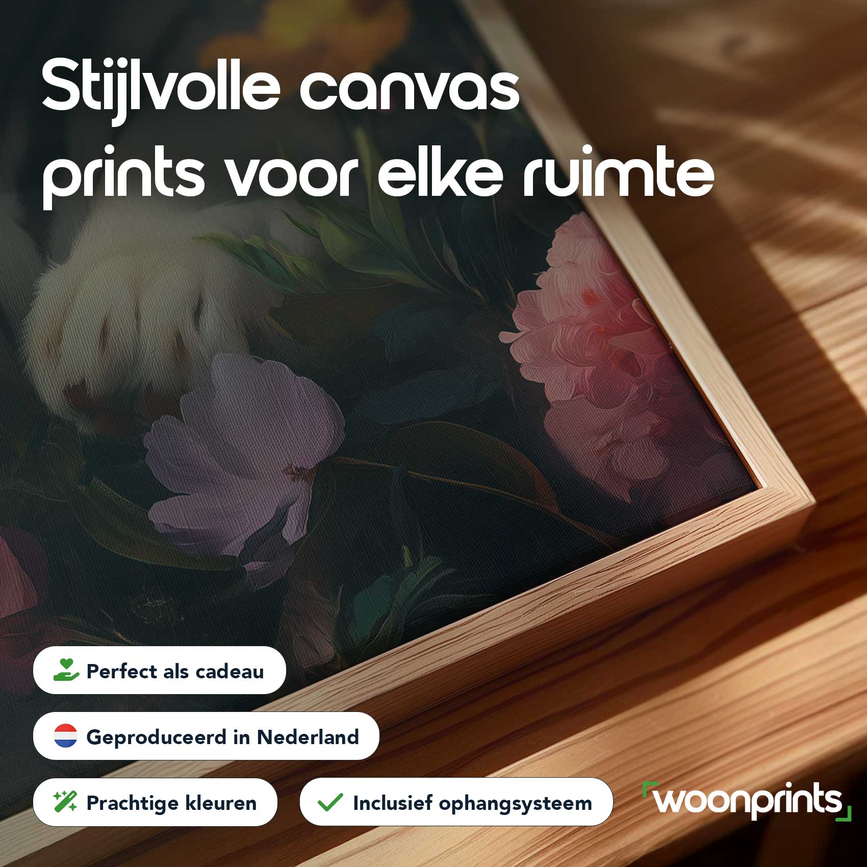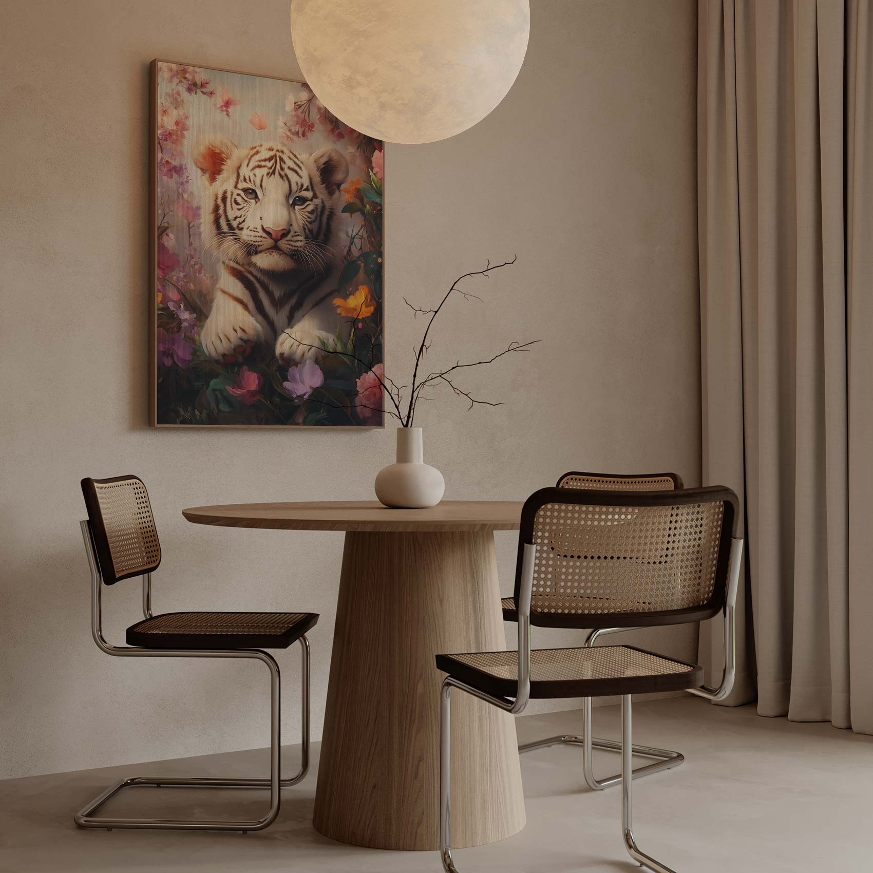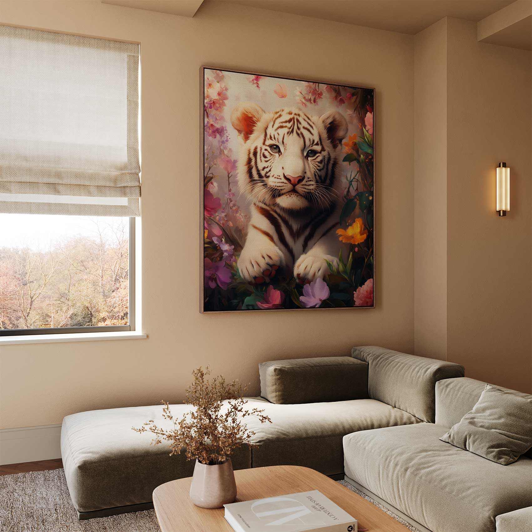 Terug naar collectie / Schilderijen / Bloemen Schilderij / Witte tijger tussen bloemenpracht