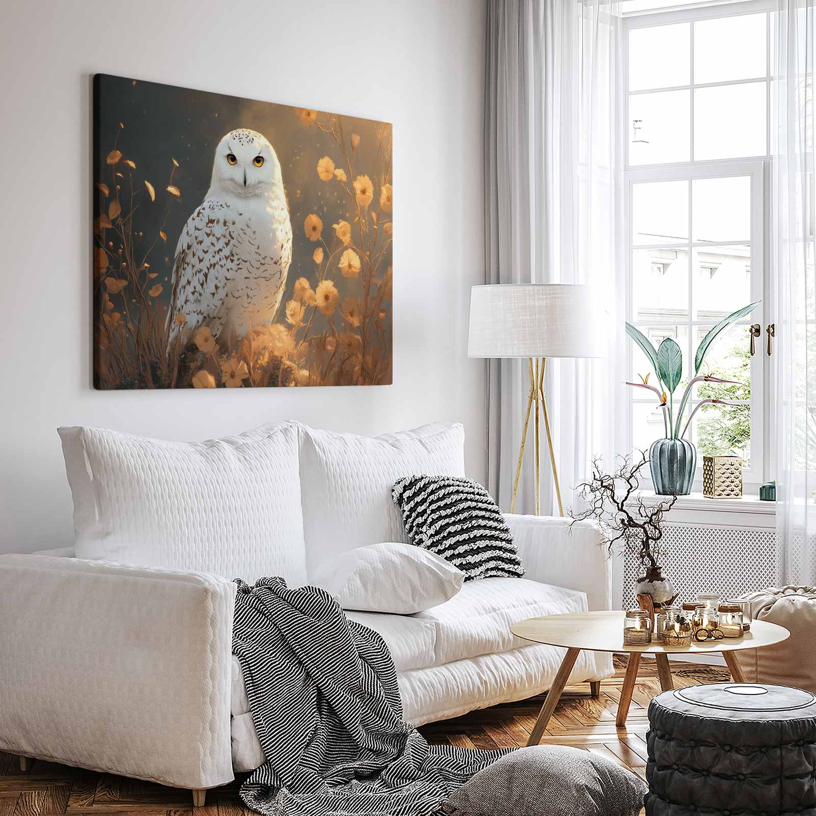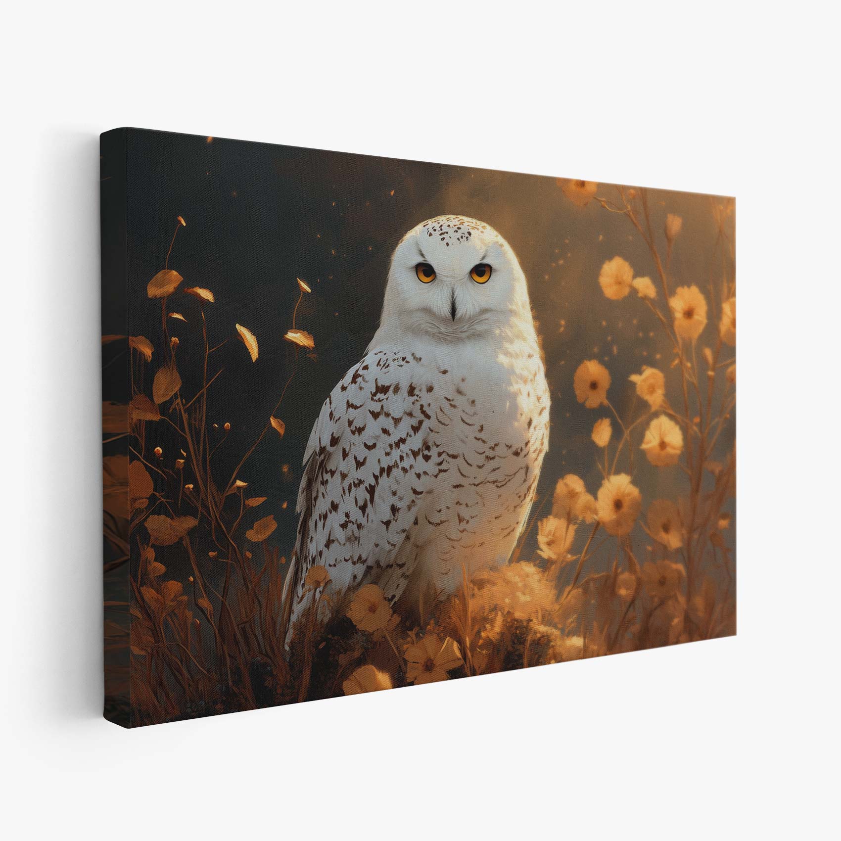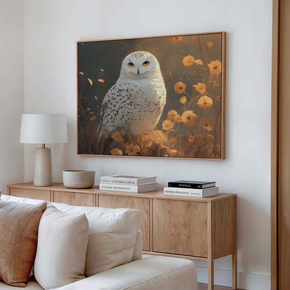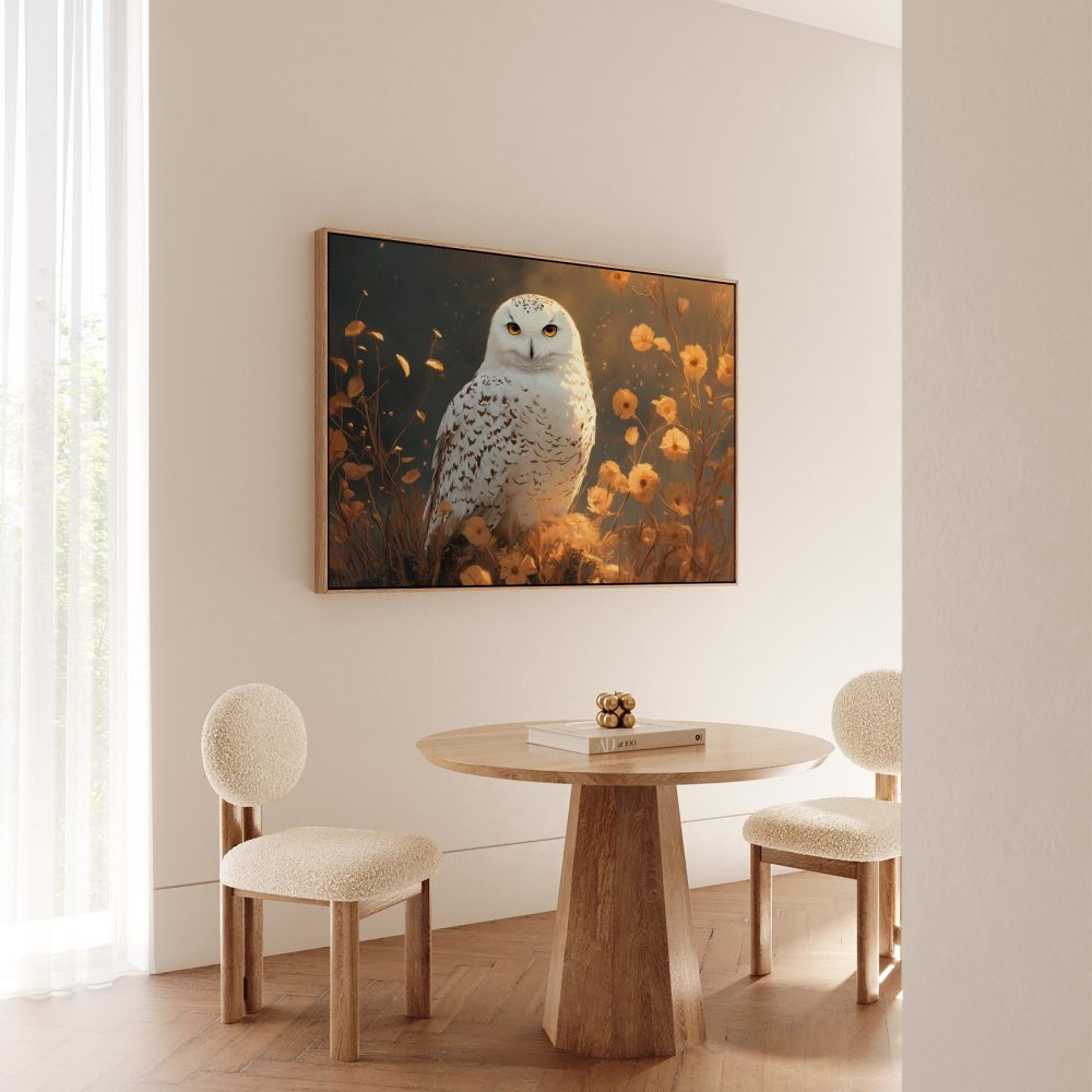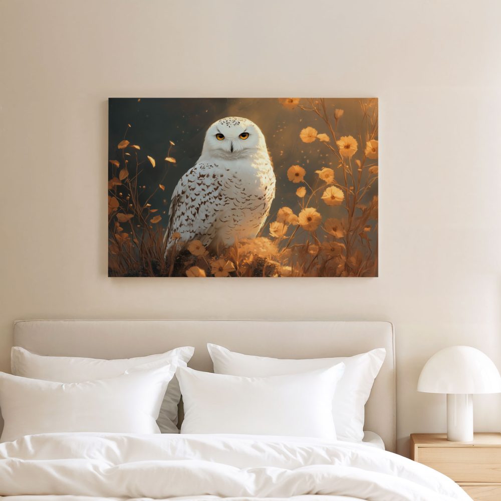 Witte uil tussen bloemen