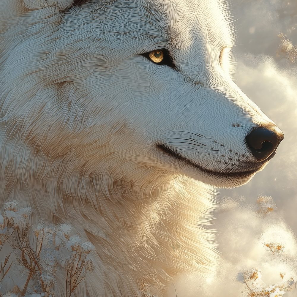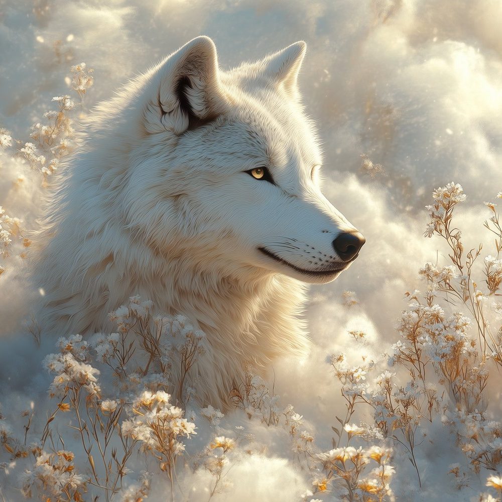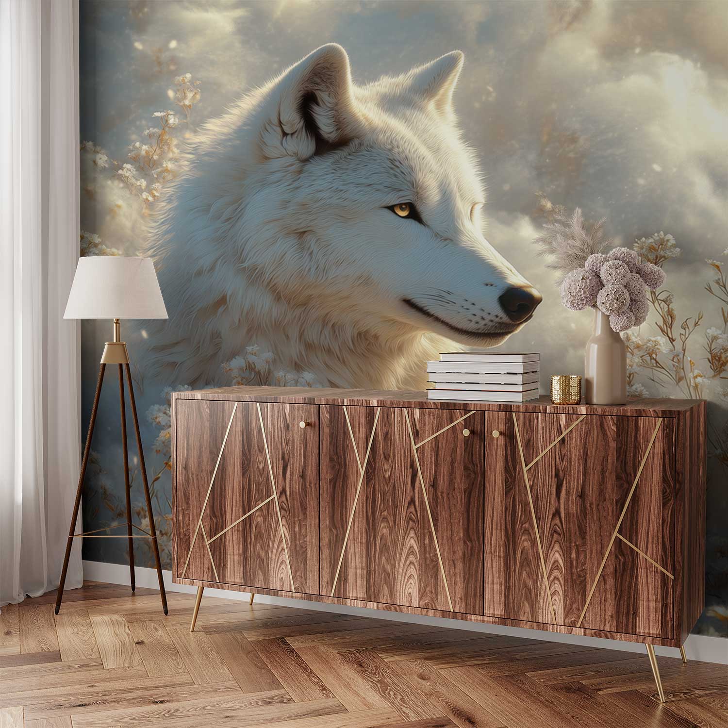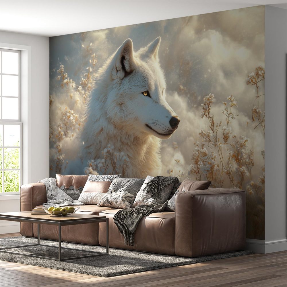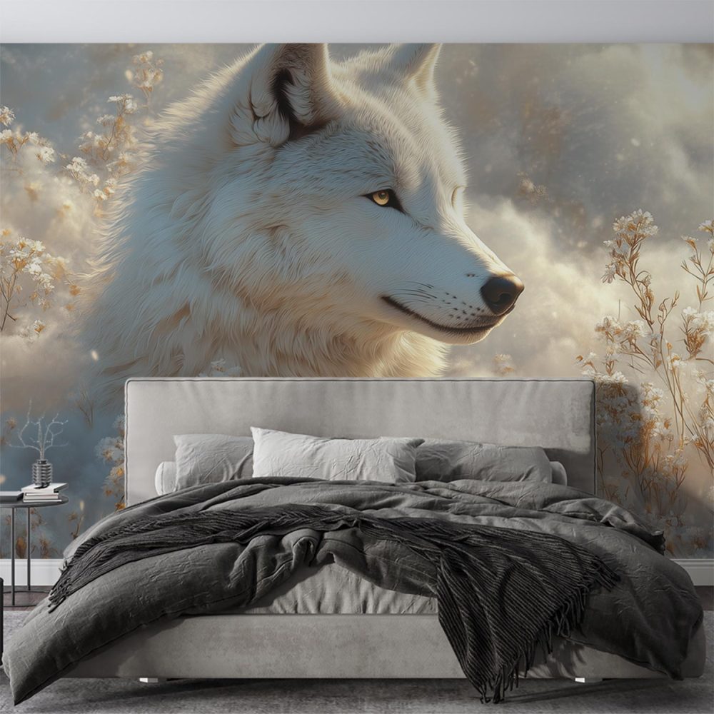 Terug naar collectie / Behang / Witte Wolf in Sneeuwbloemen behang