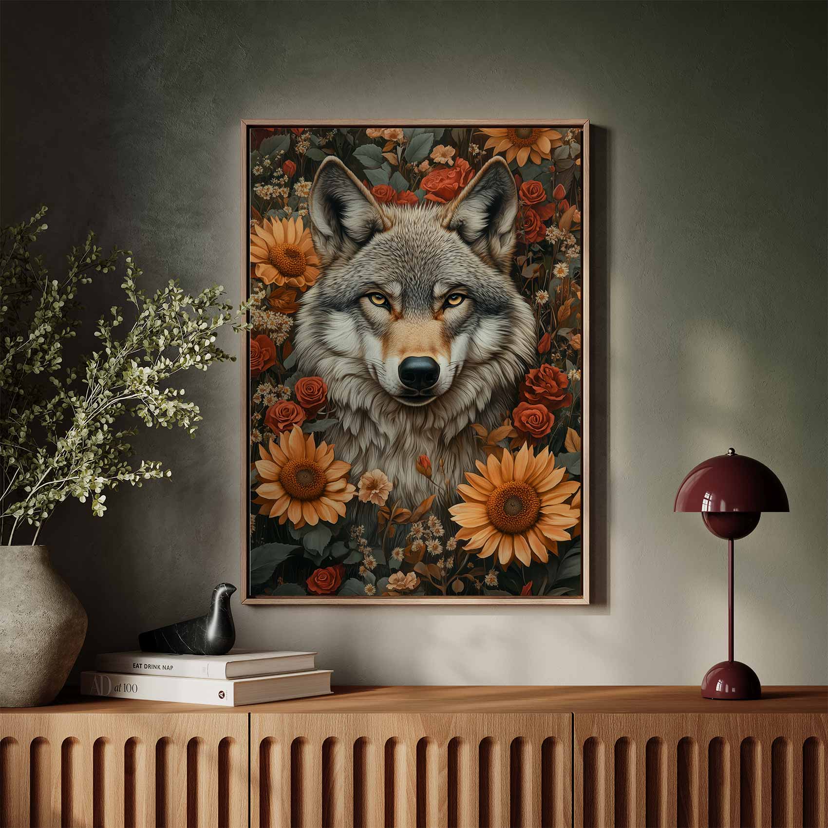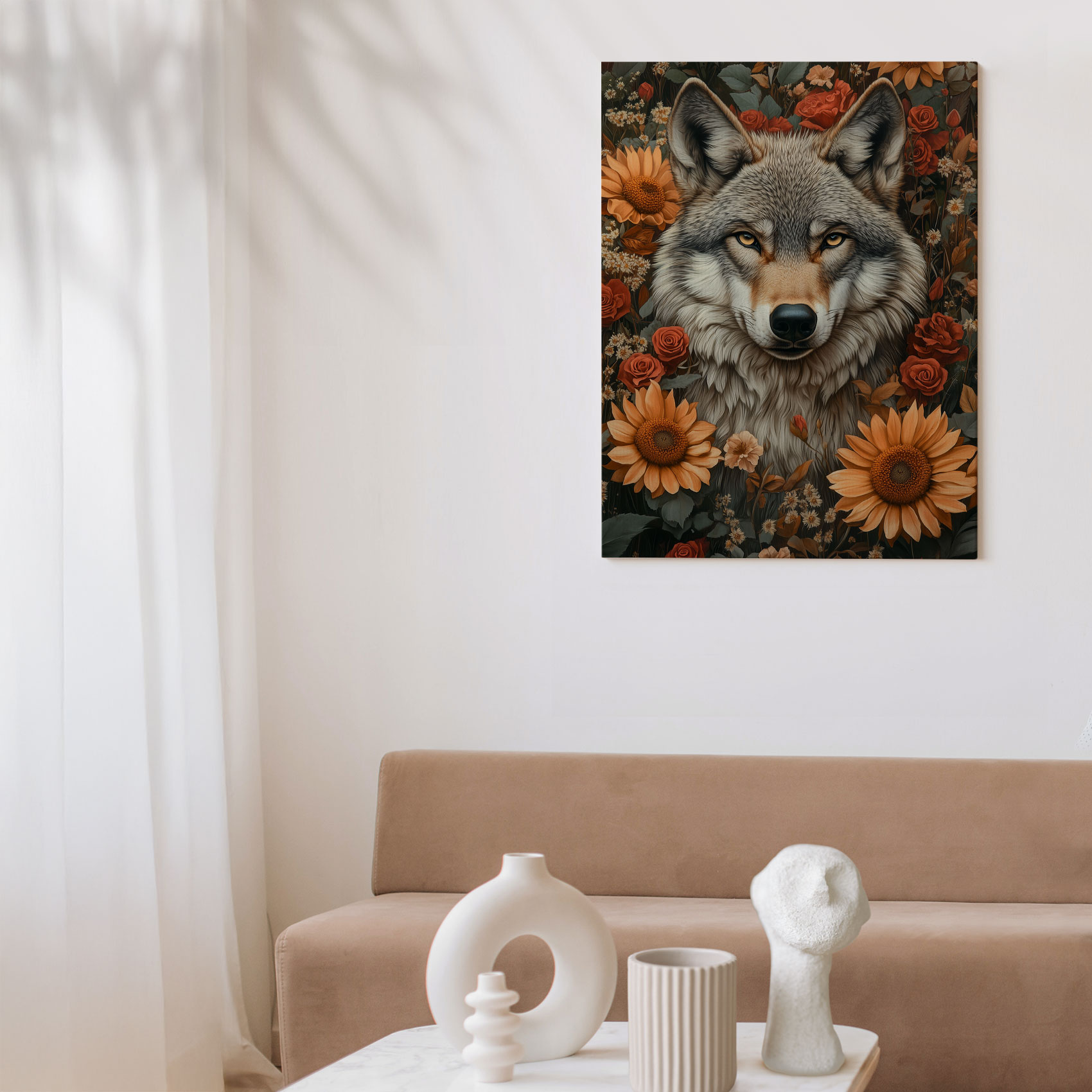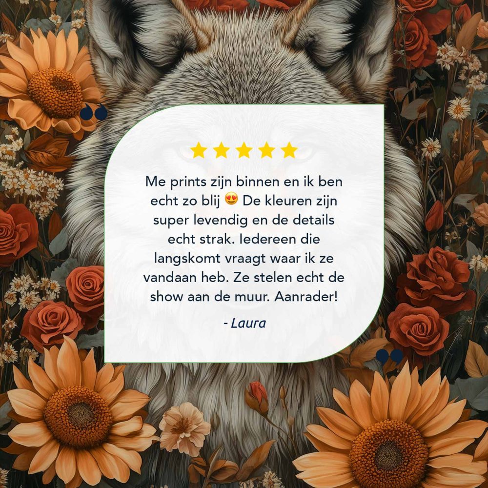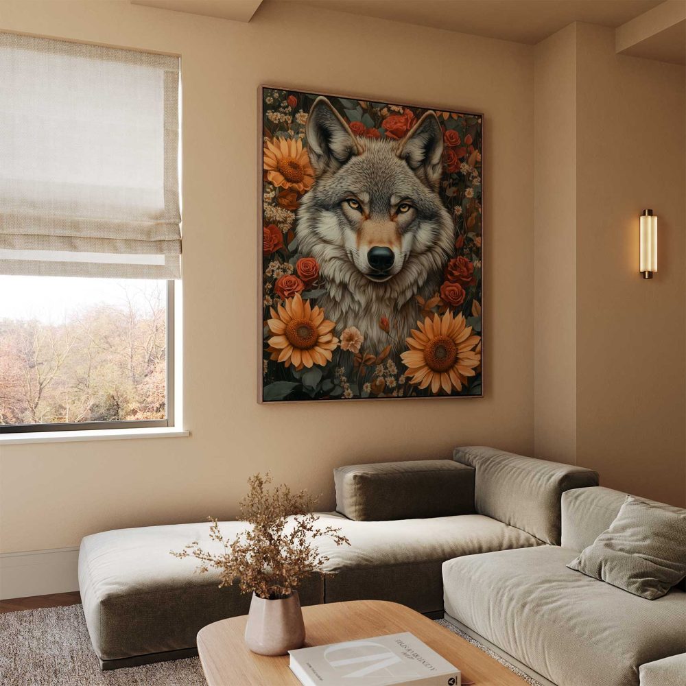 Terug naar collectie / Schilderijen / Bloemen Schilderij / Wolf tussen bloemenpracht