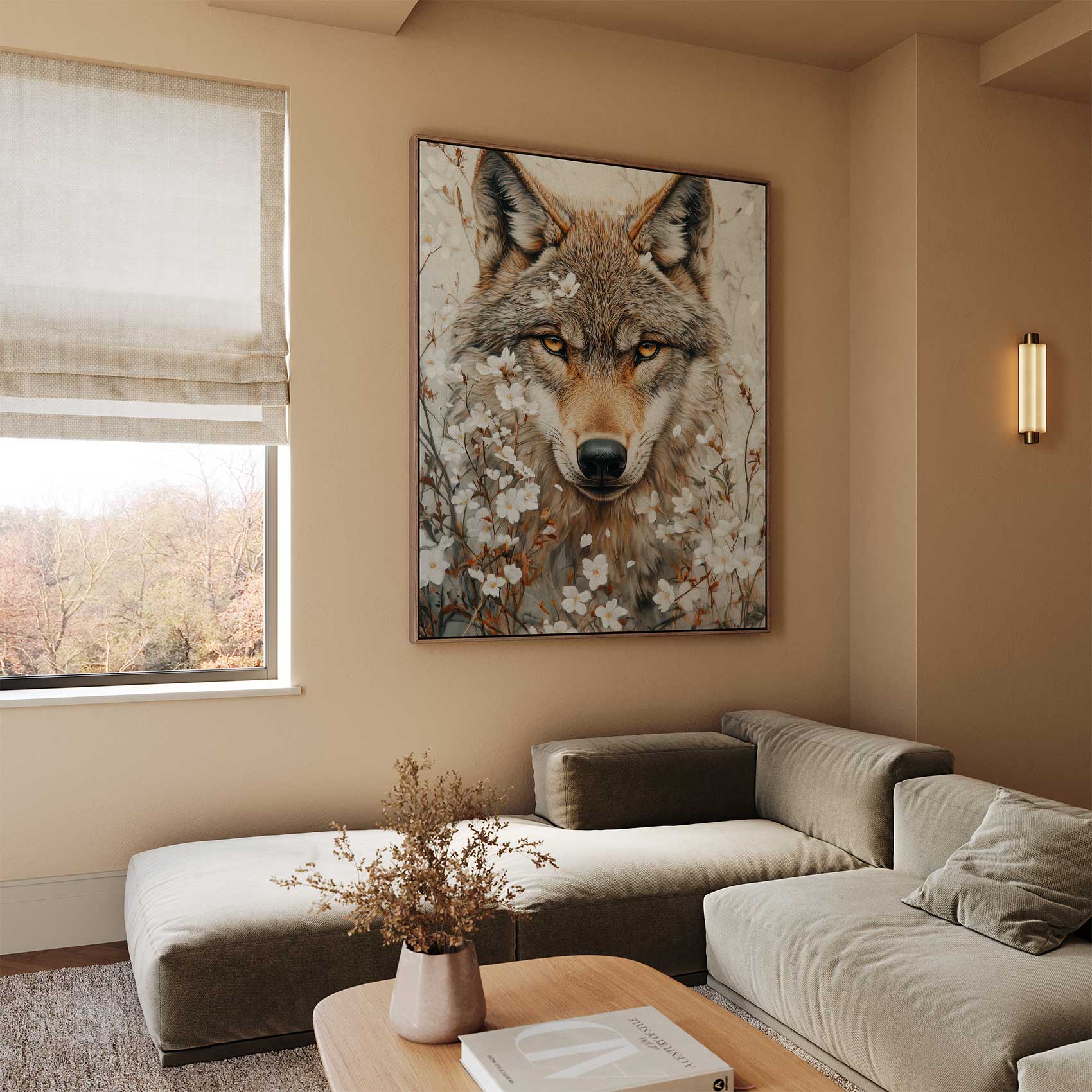 Terug naar collectie / Schilderijen / Bloemen Schilderij / Wolf tussen witte bloemen