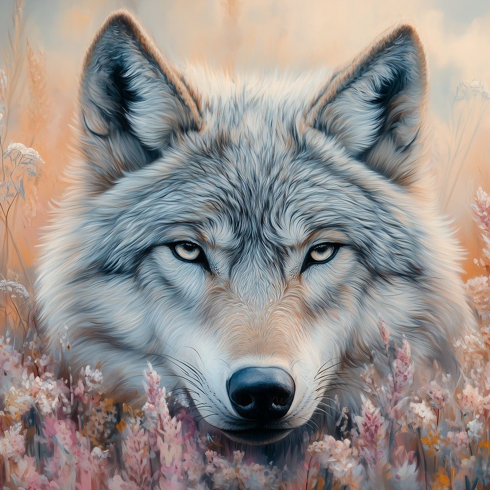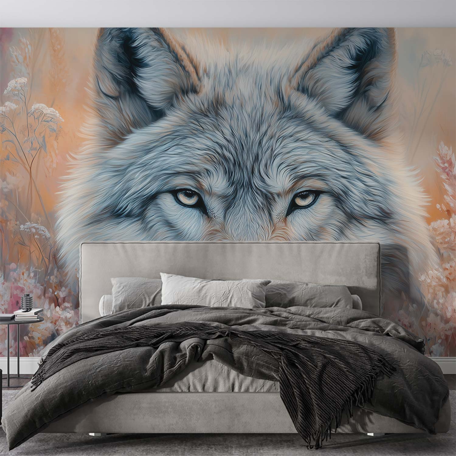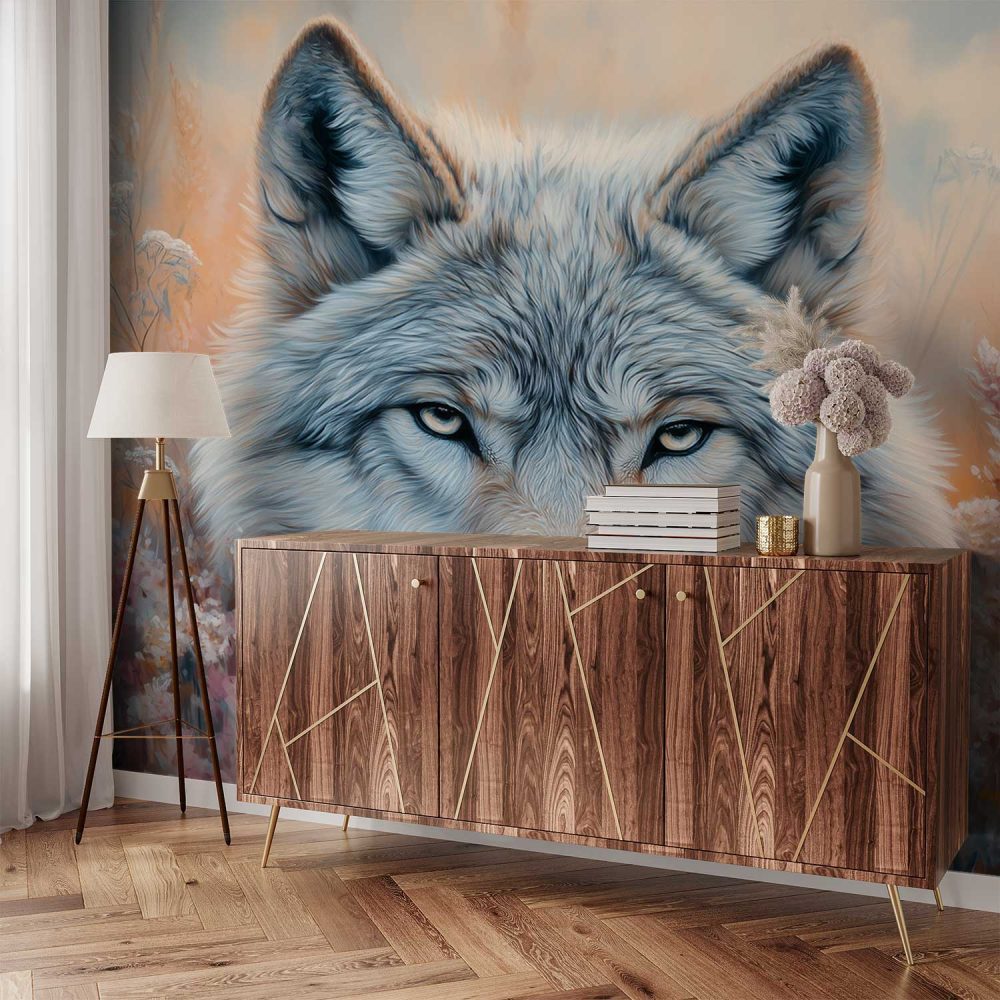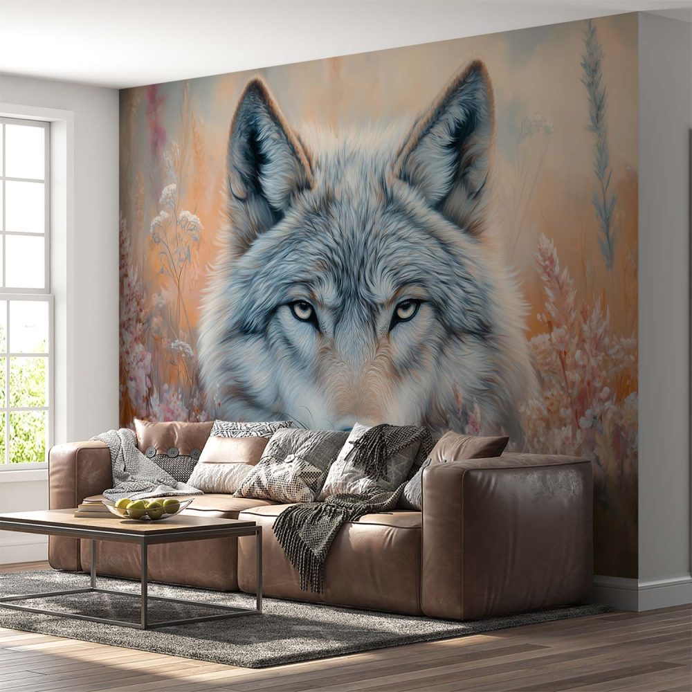 Wolvenbloem in oranje roze behang