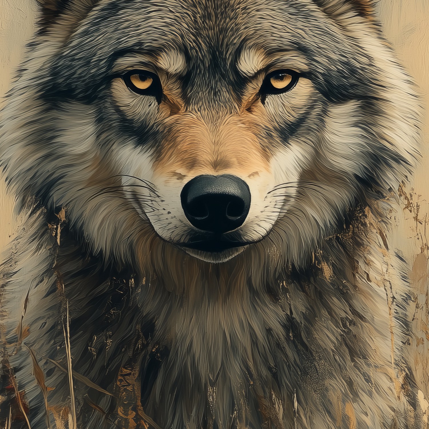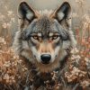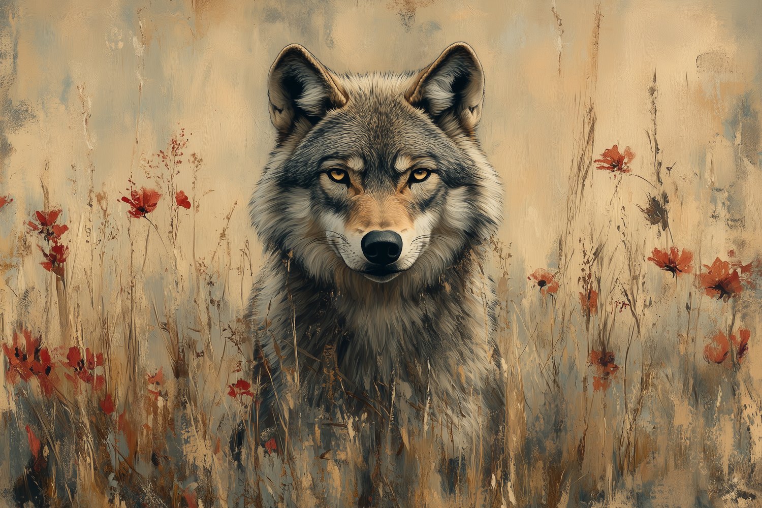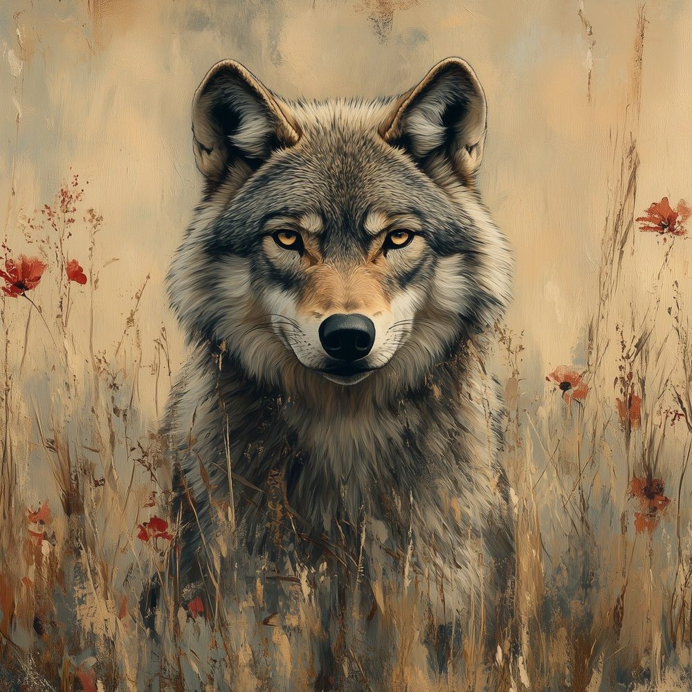 Terug naar collectie / Behang / Wolvenportret met rode bloemen behang