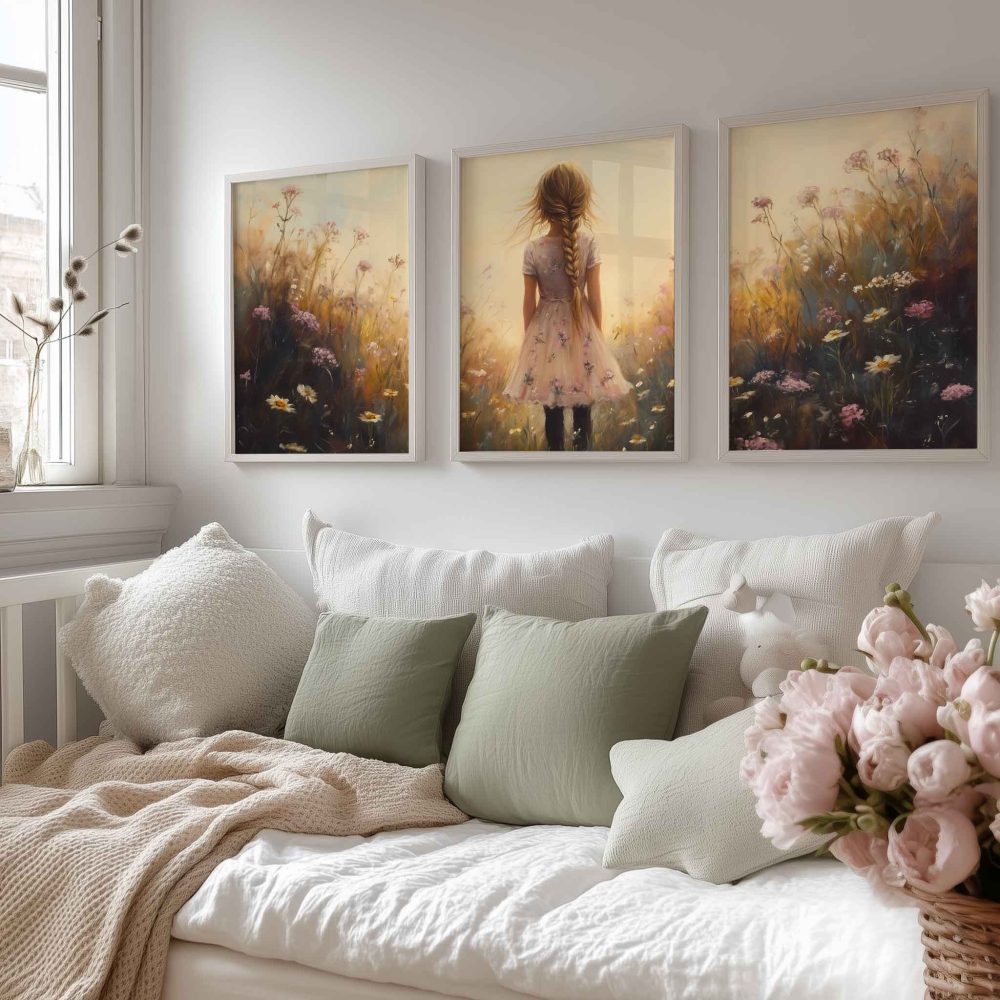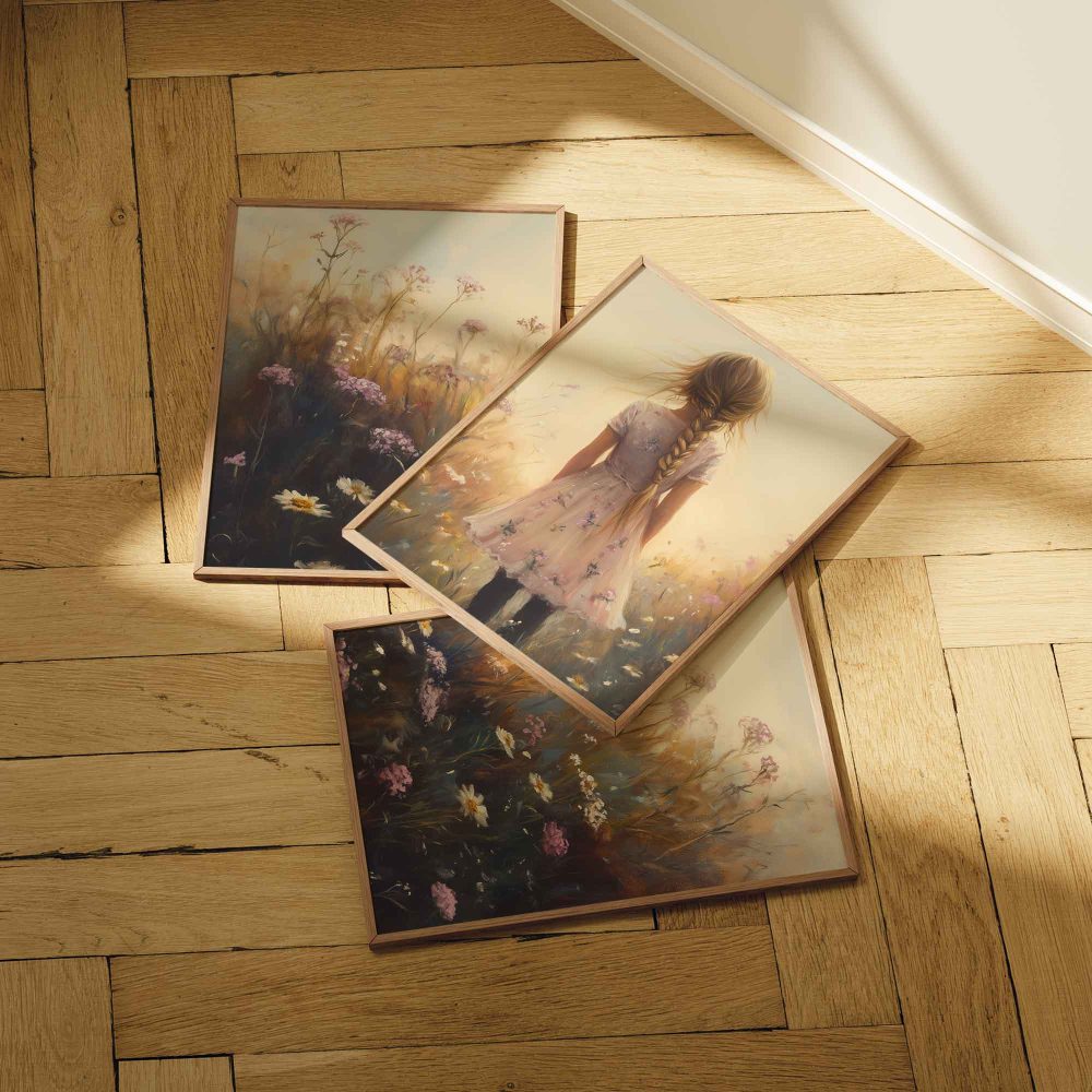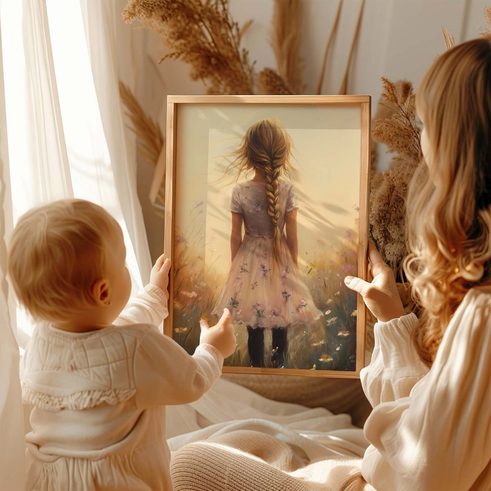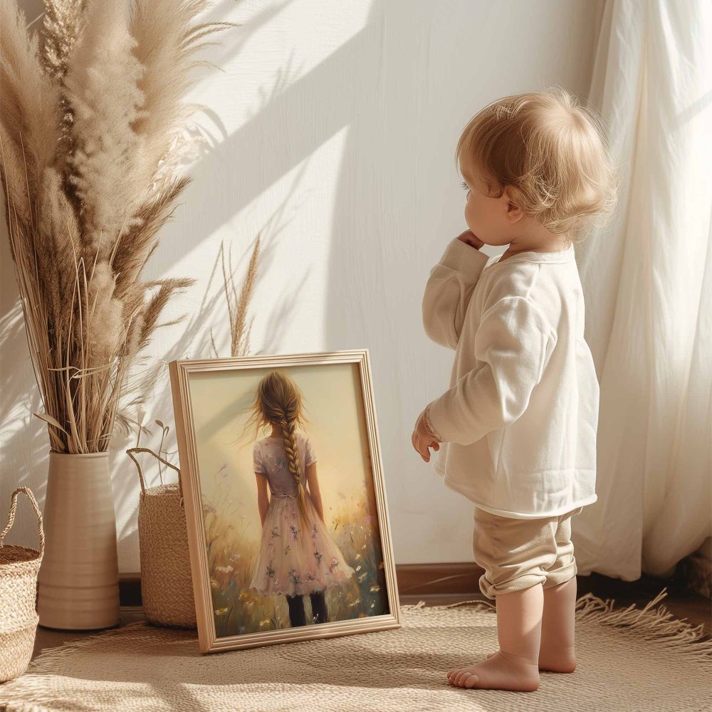 Terug naar collectie / Uncategorized / Zacht bloemenmeisje in pastelroze veld