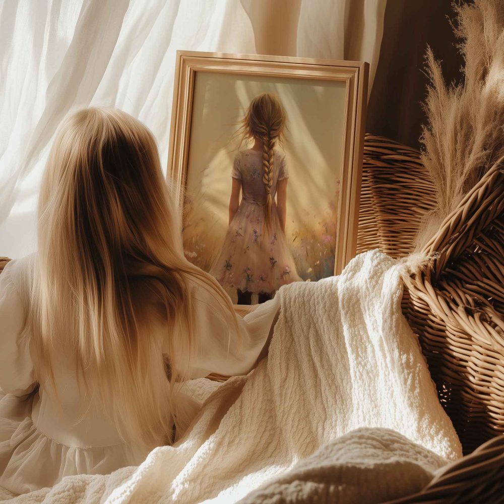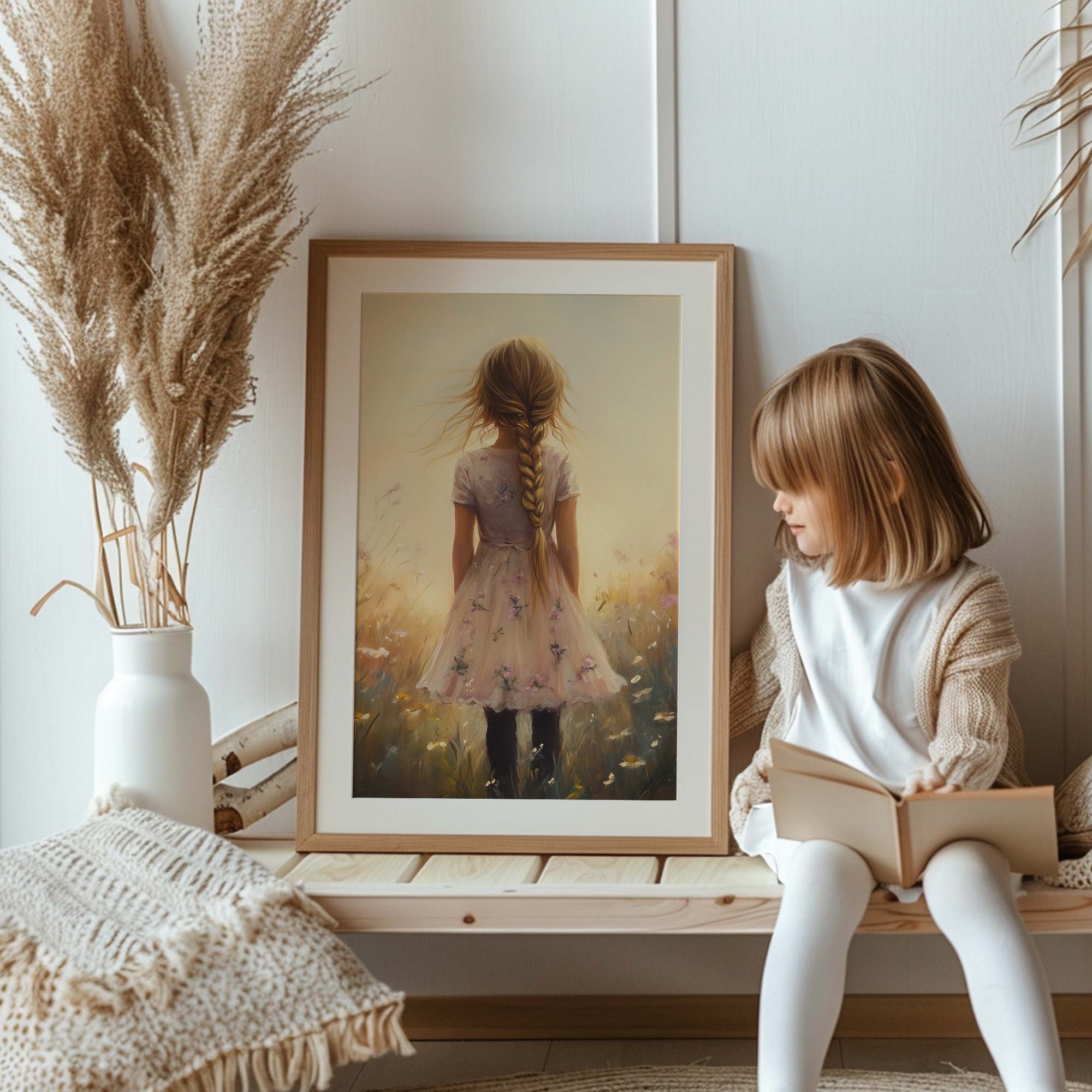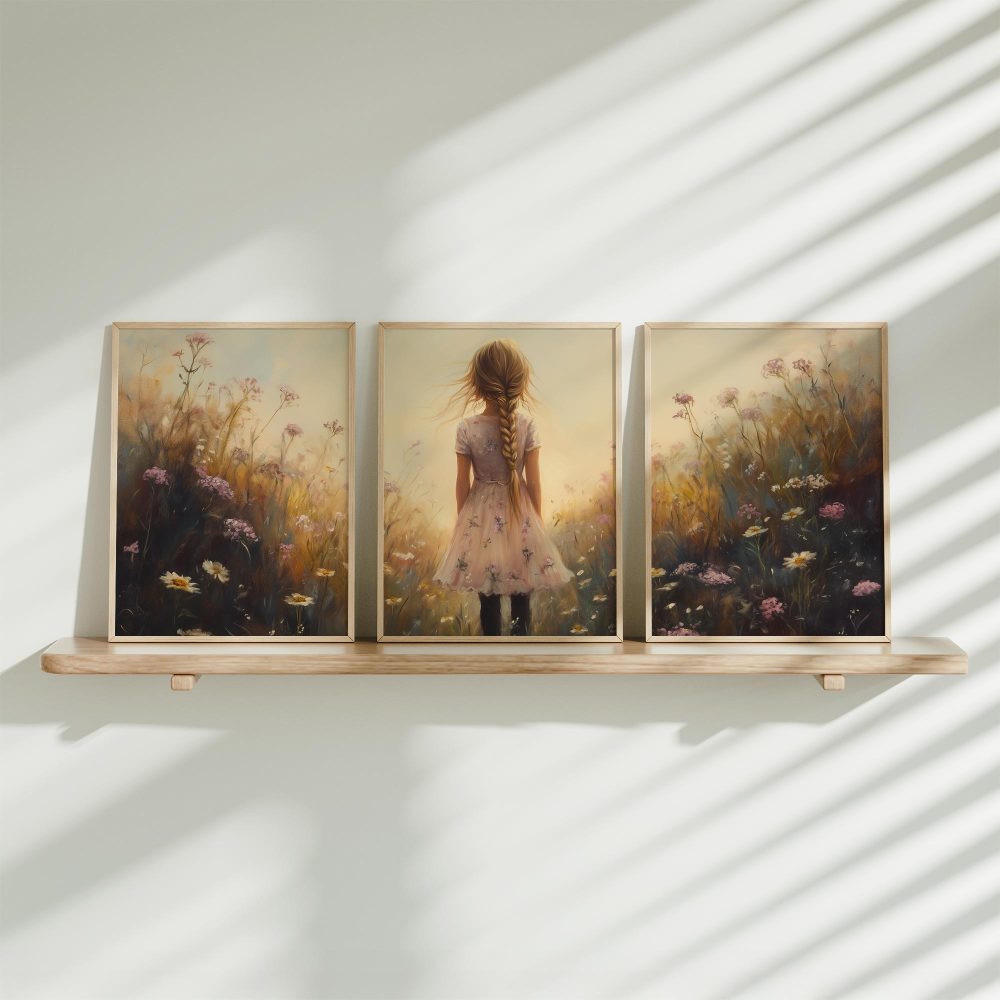 Terug naar collectie / Uncategorized / Zacht bloemenmeisje in pastelroze veld