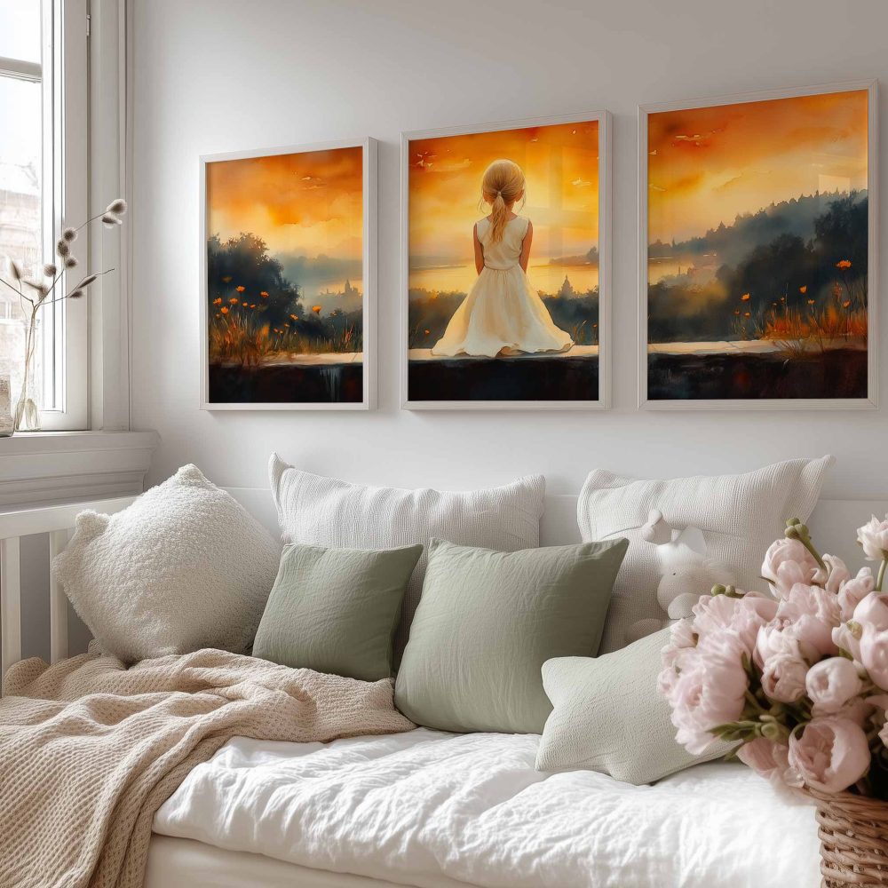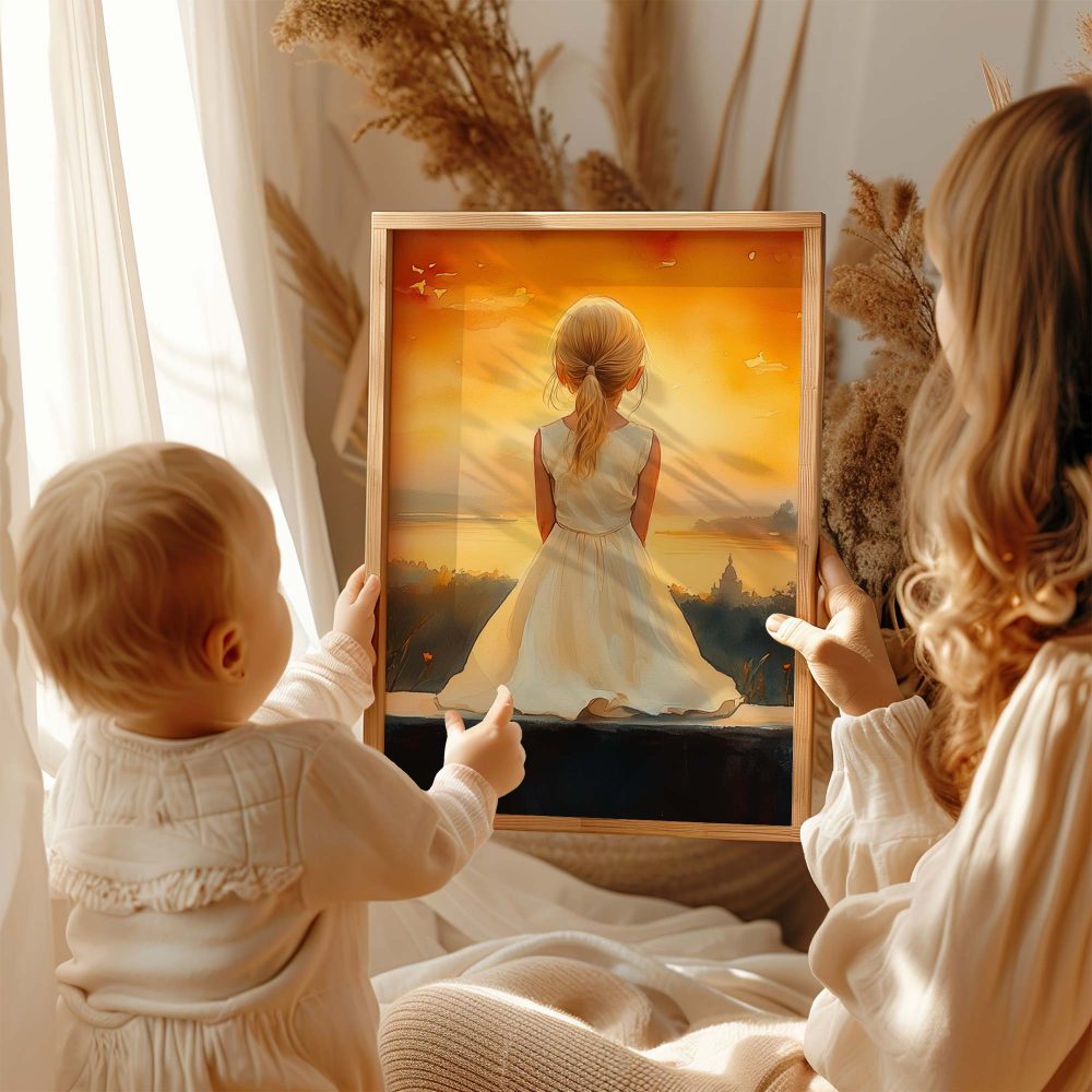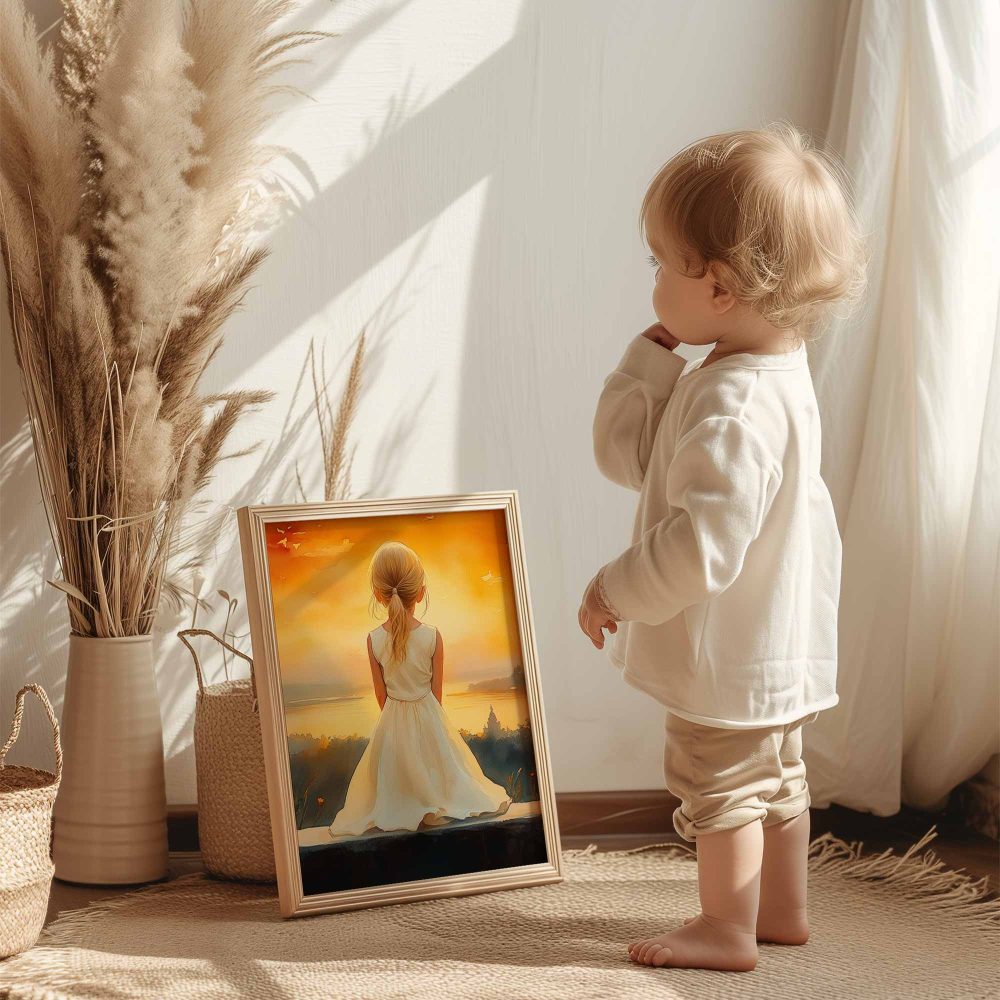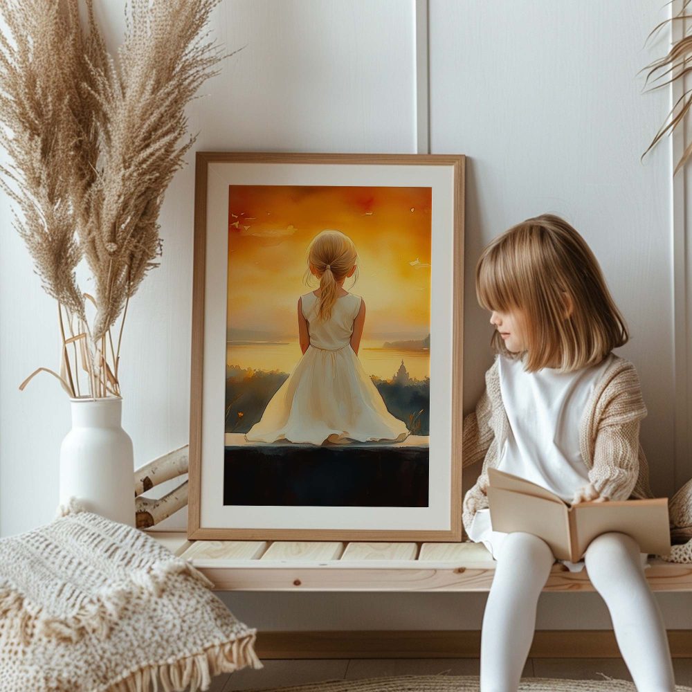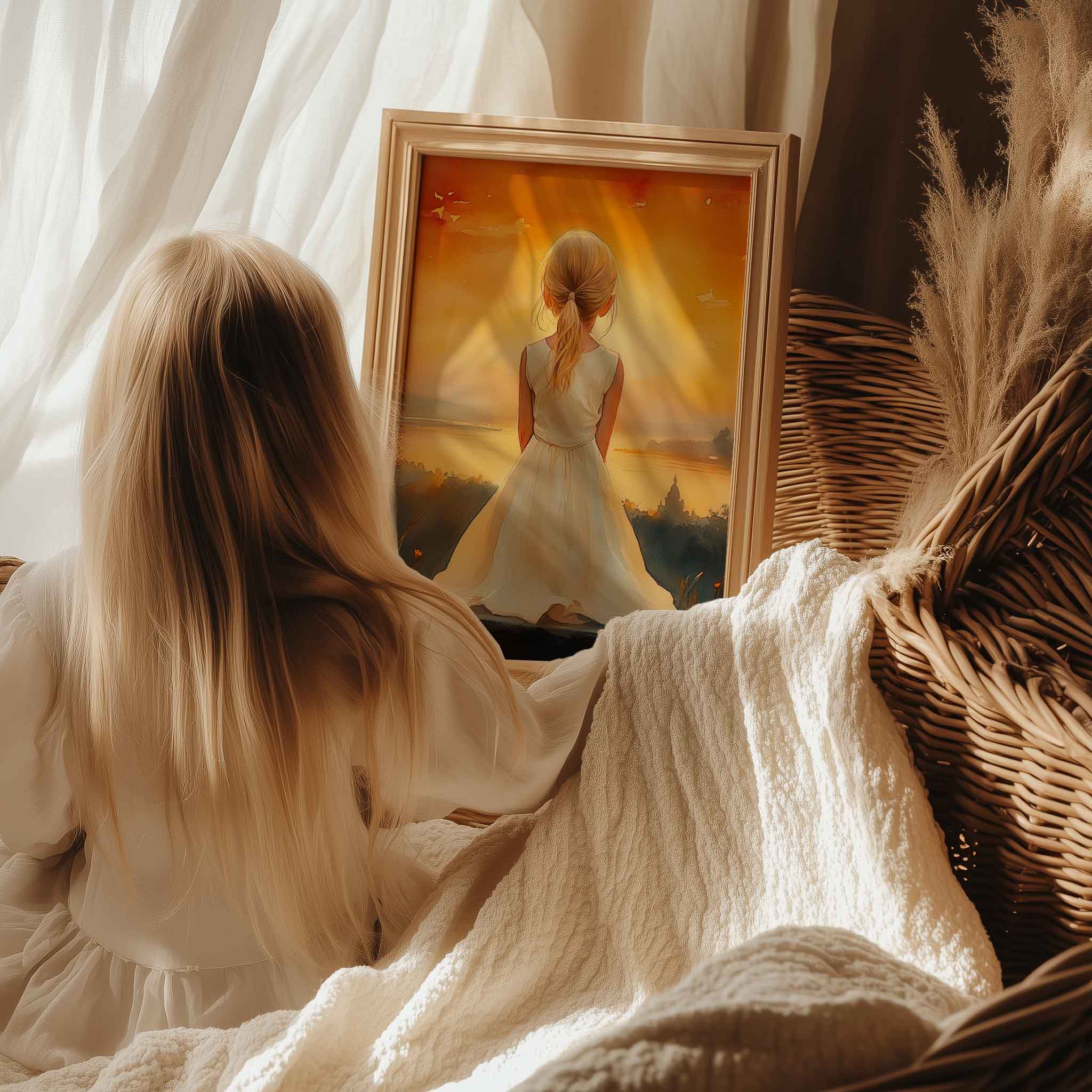 Terug naar collectie / Uncategorized / Zacht Dromend Meisje in Pastel Landschap