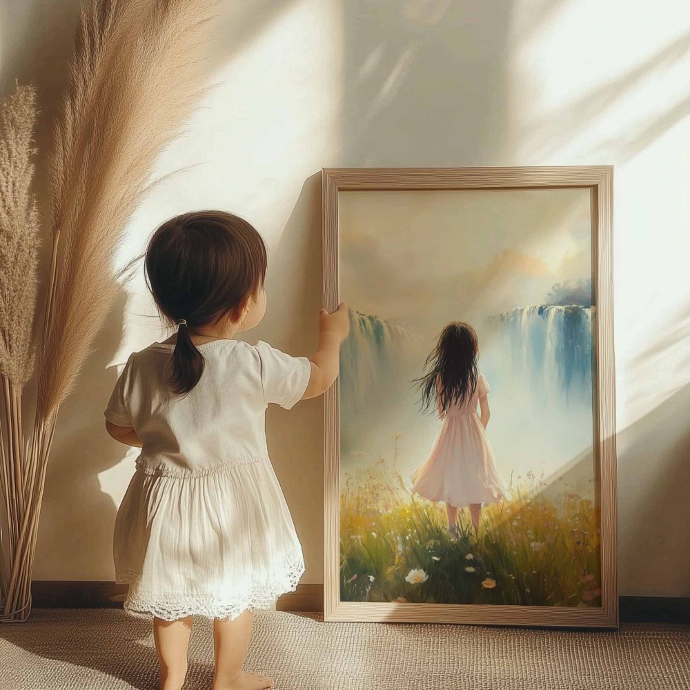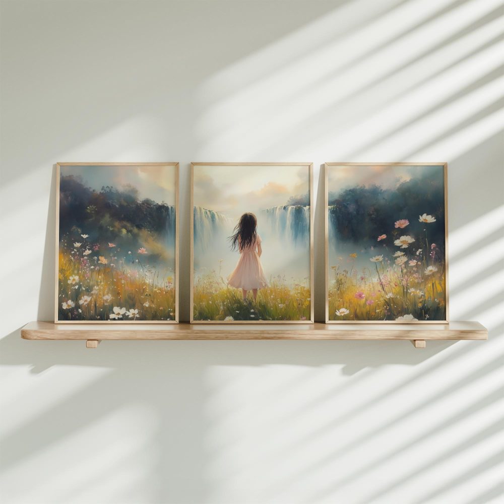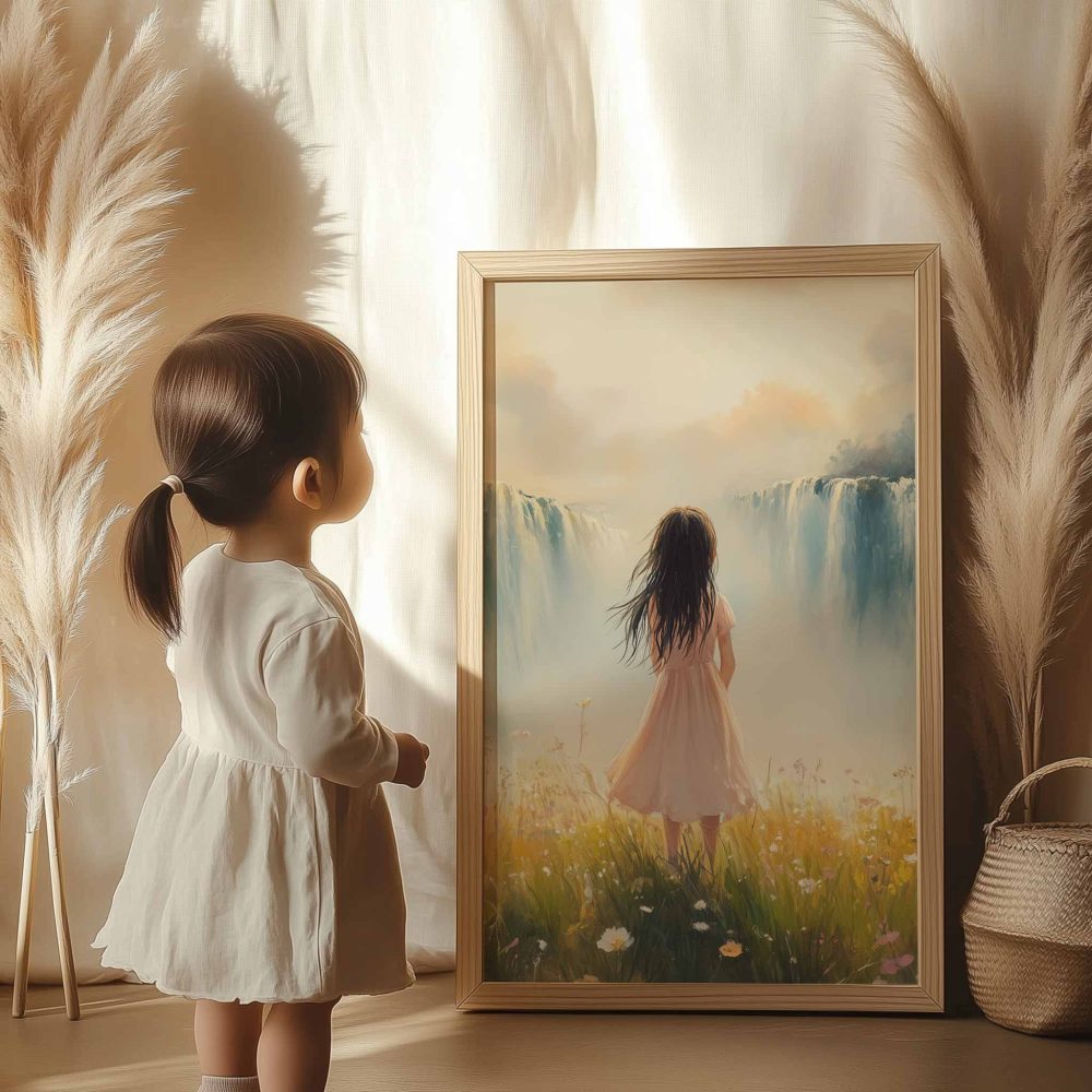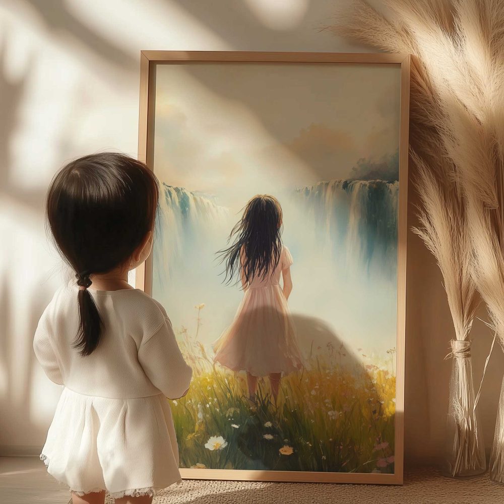Terug naar collectie / Uncategorized / Zacht Dromerig Meisje bij Waterval en Bloemen