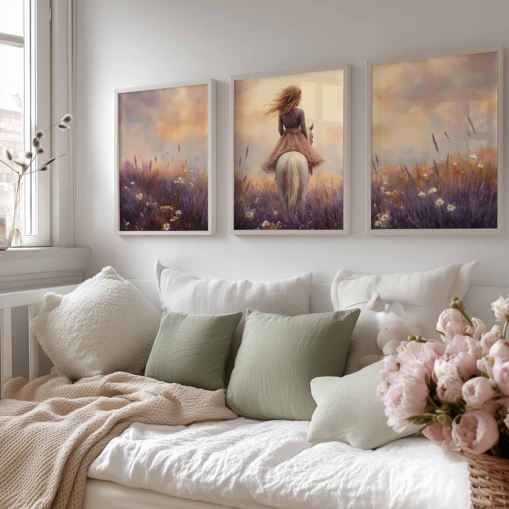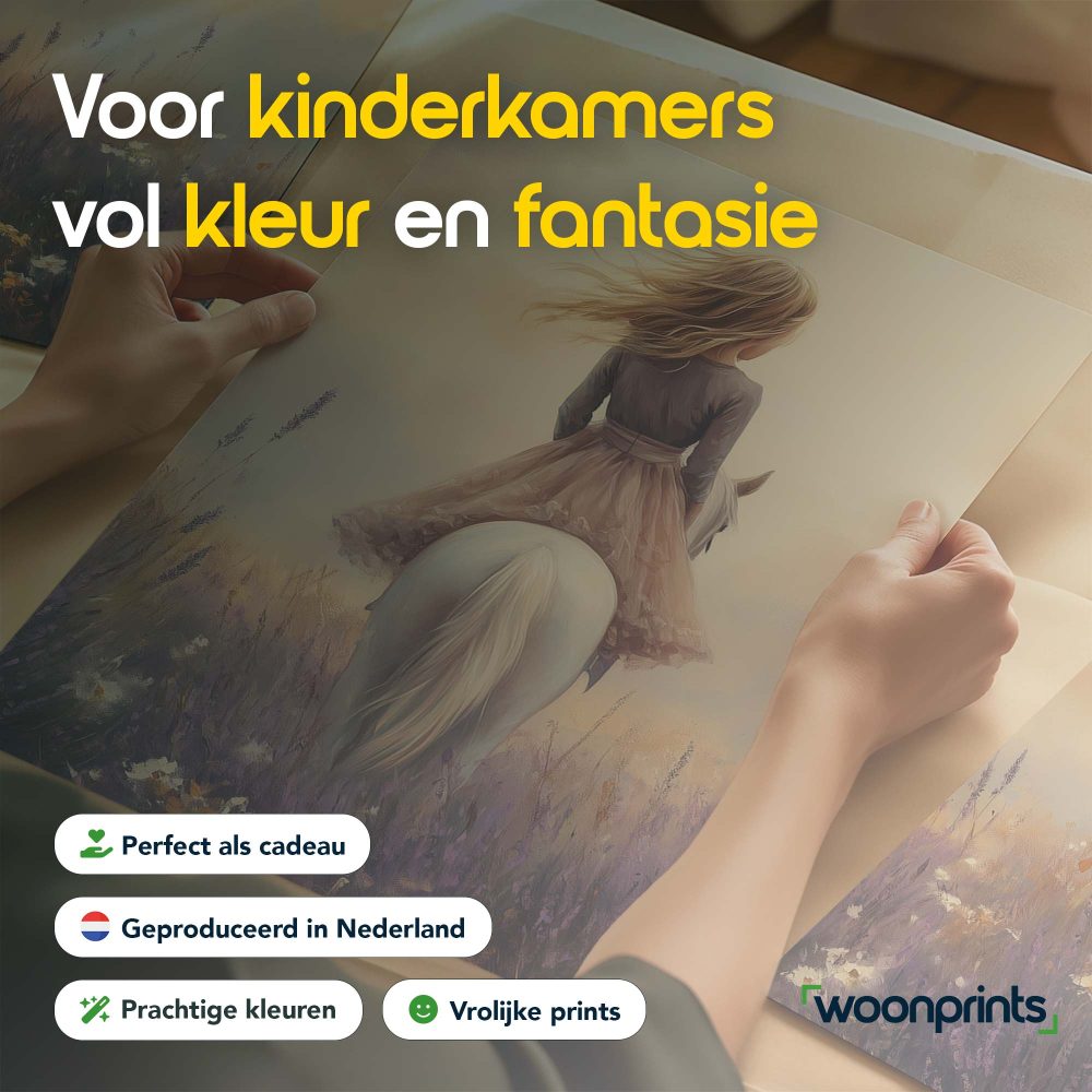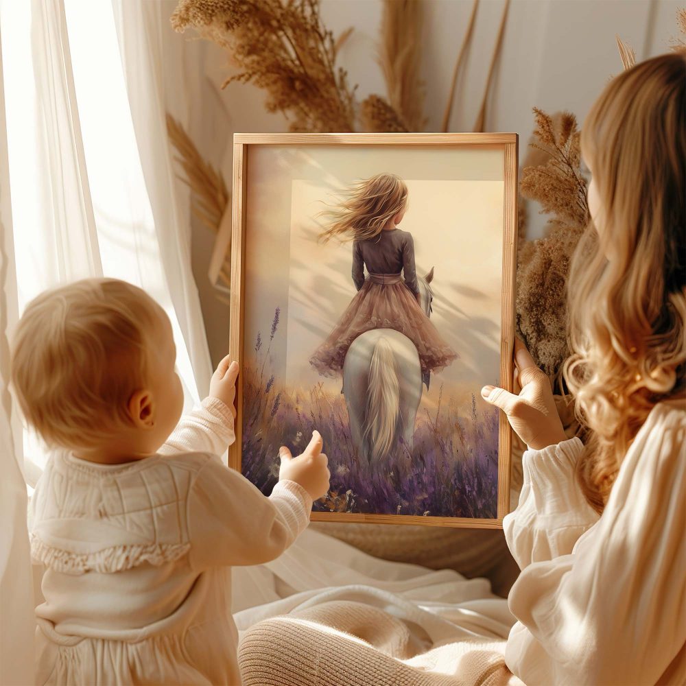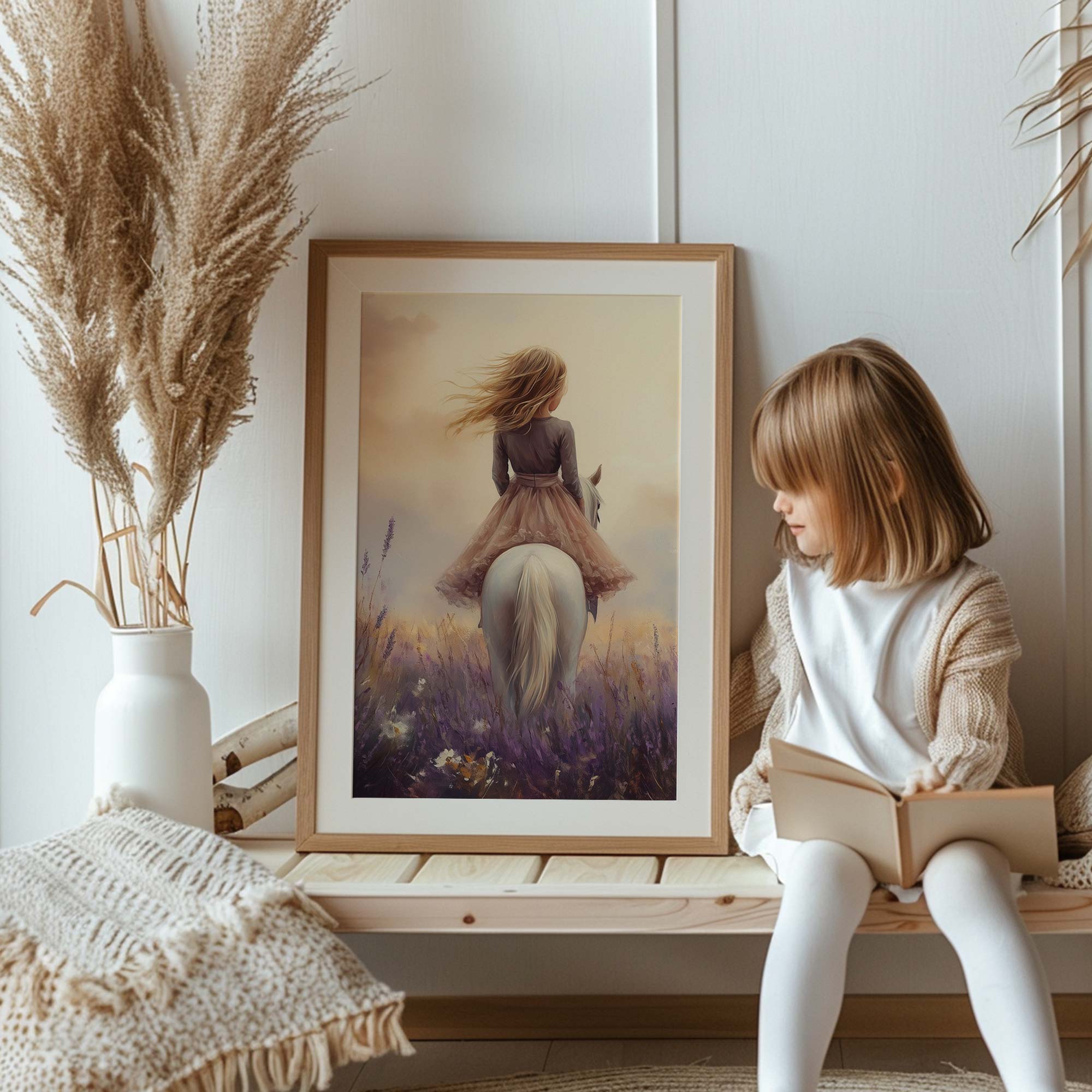 Terug naar collectie / Uncategorized / Zacht Dromerig Meisje op Wit Paard tussen Bloemen
