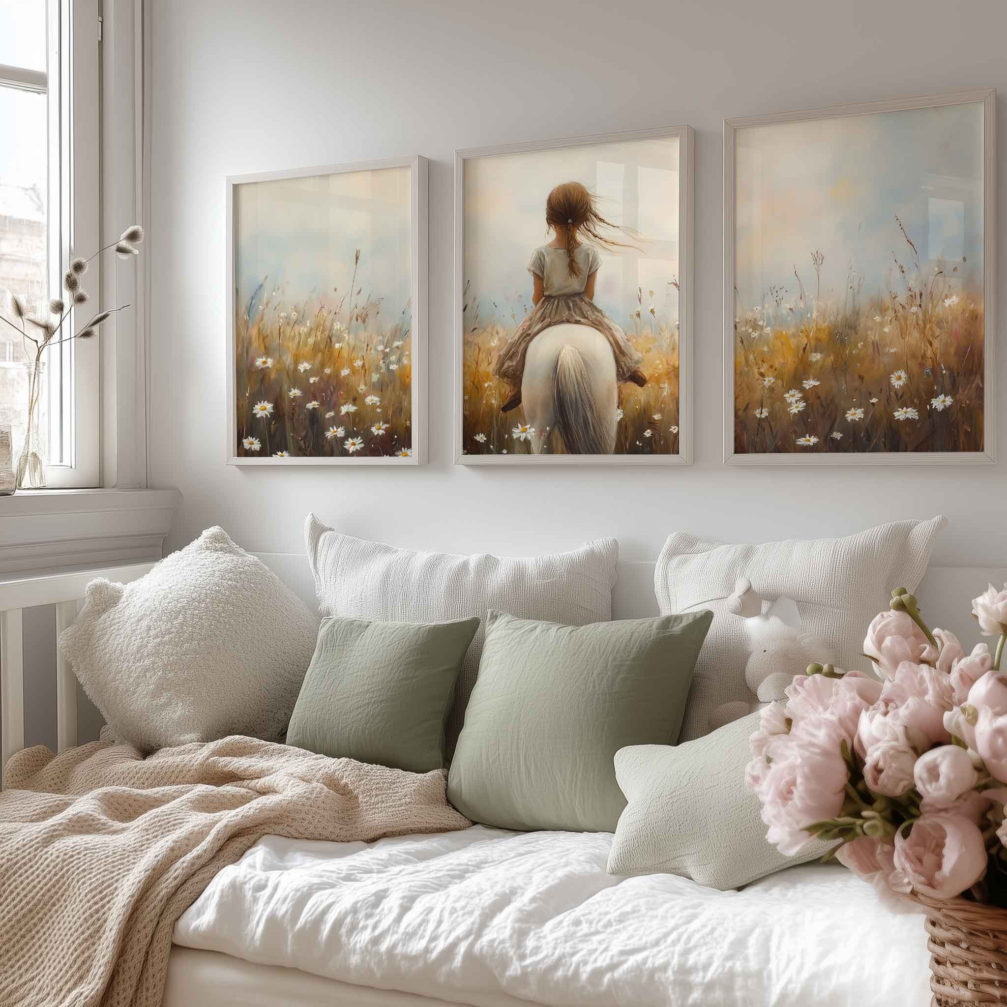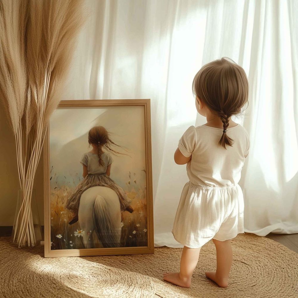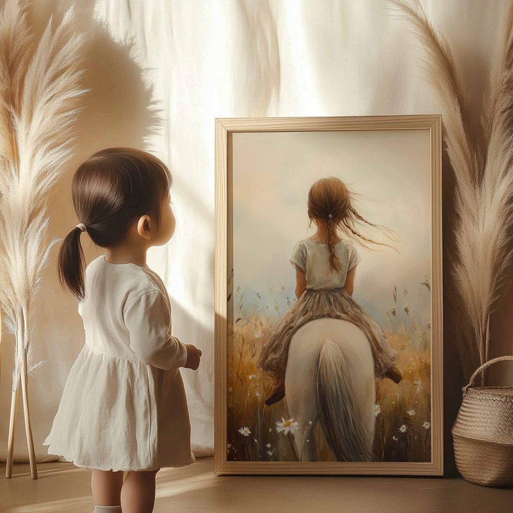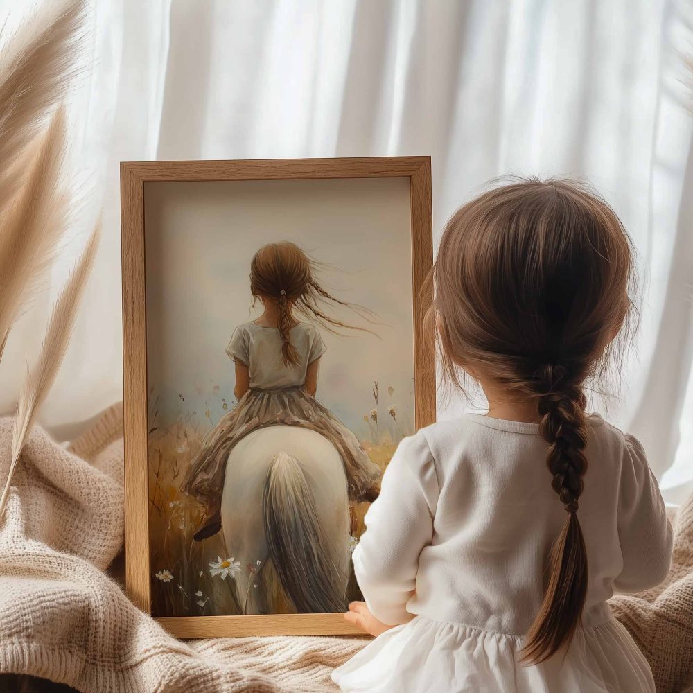 Terug naar collectie / Uncategorized / Zacht Droomlandschap met Meisje en Witte Paard