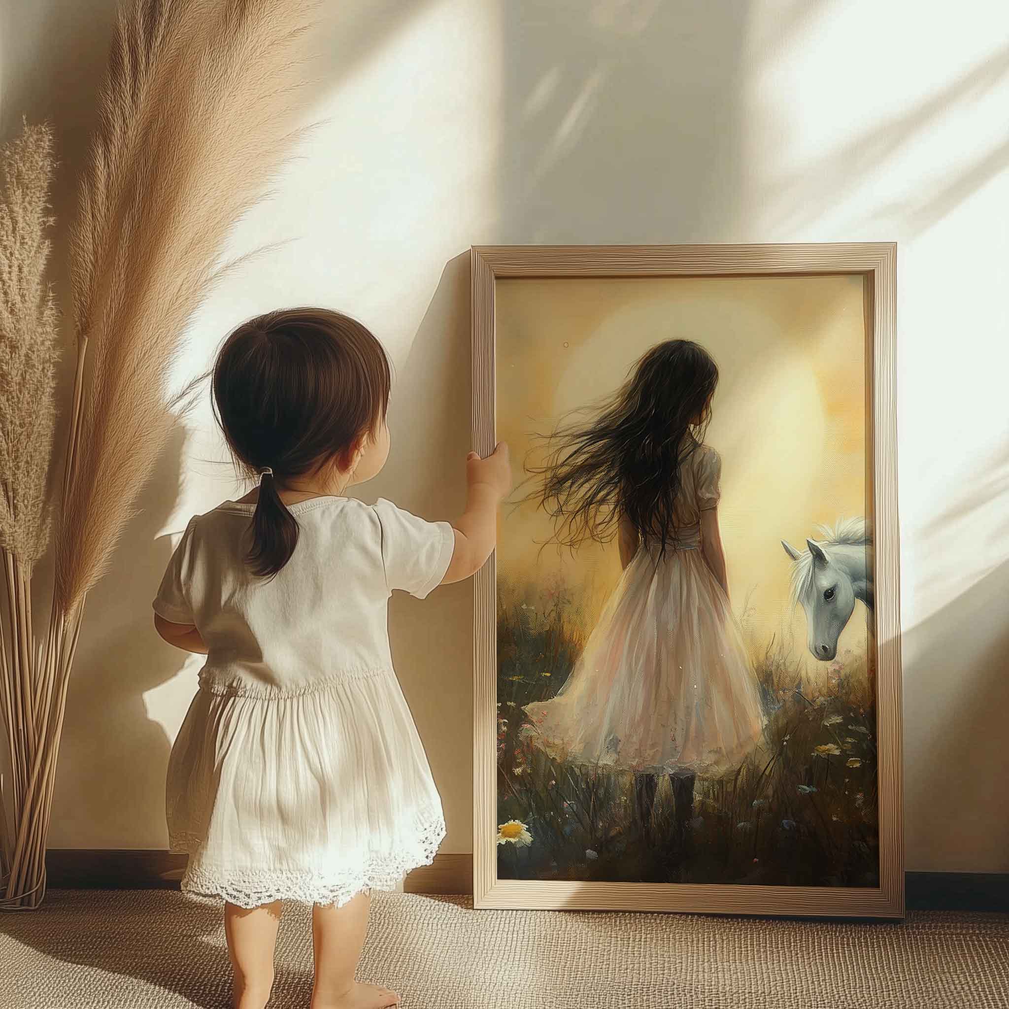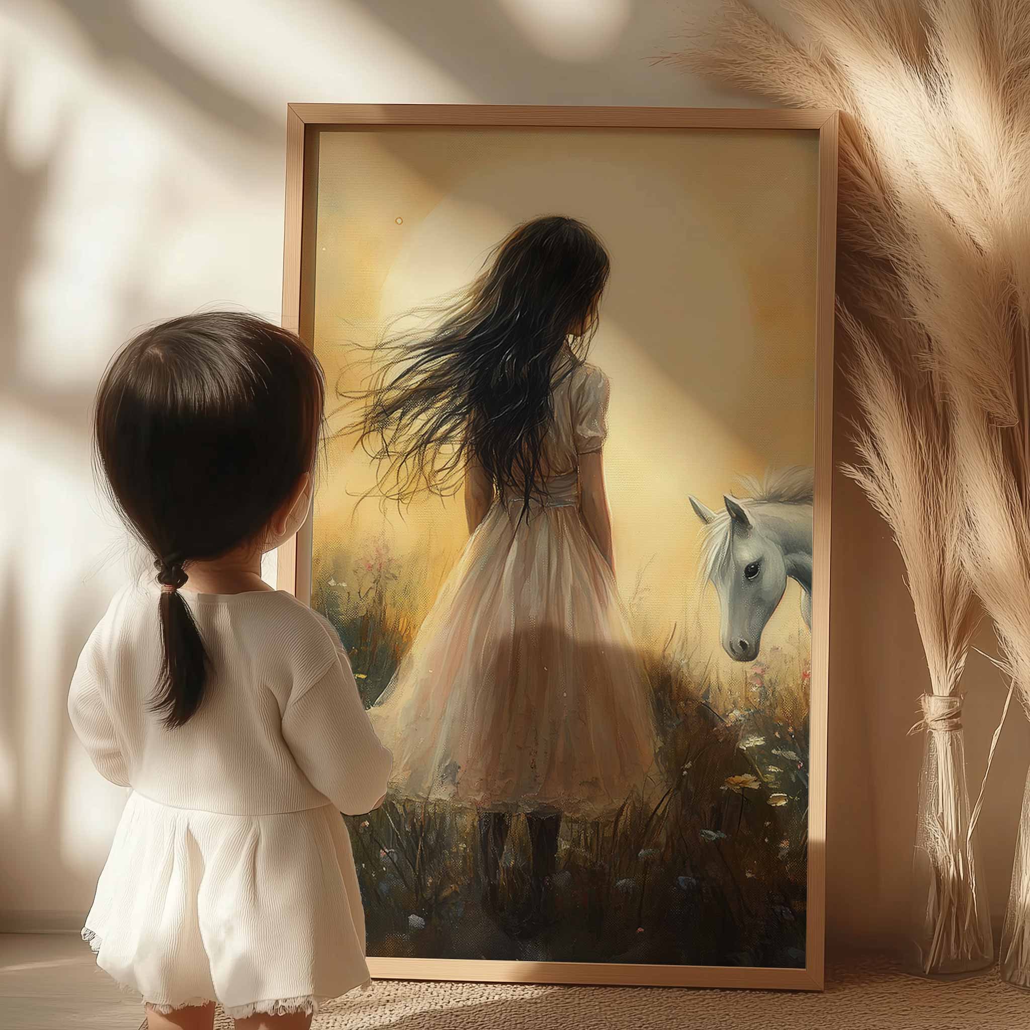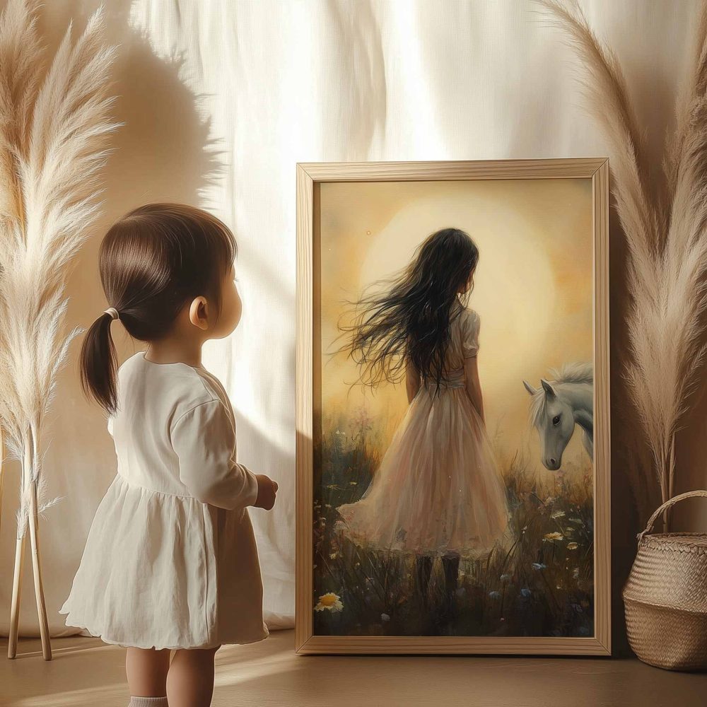 Terug naar collectie / Uncategorized / Zacht Droomlandschap met Meisje en Witte Paard