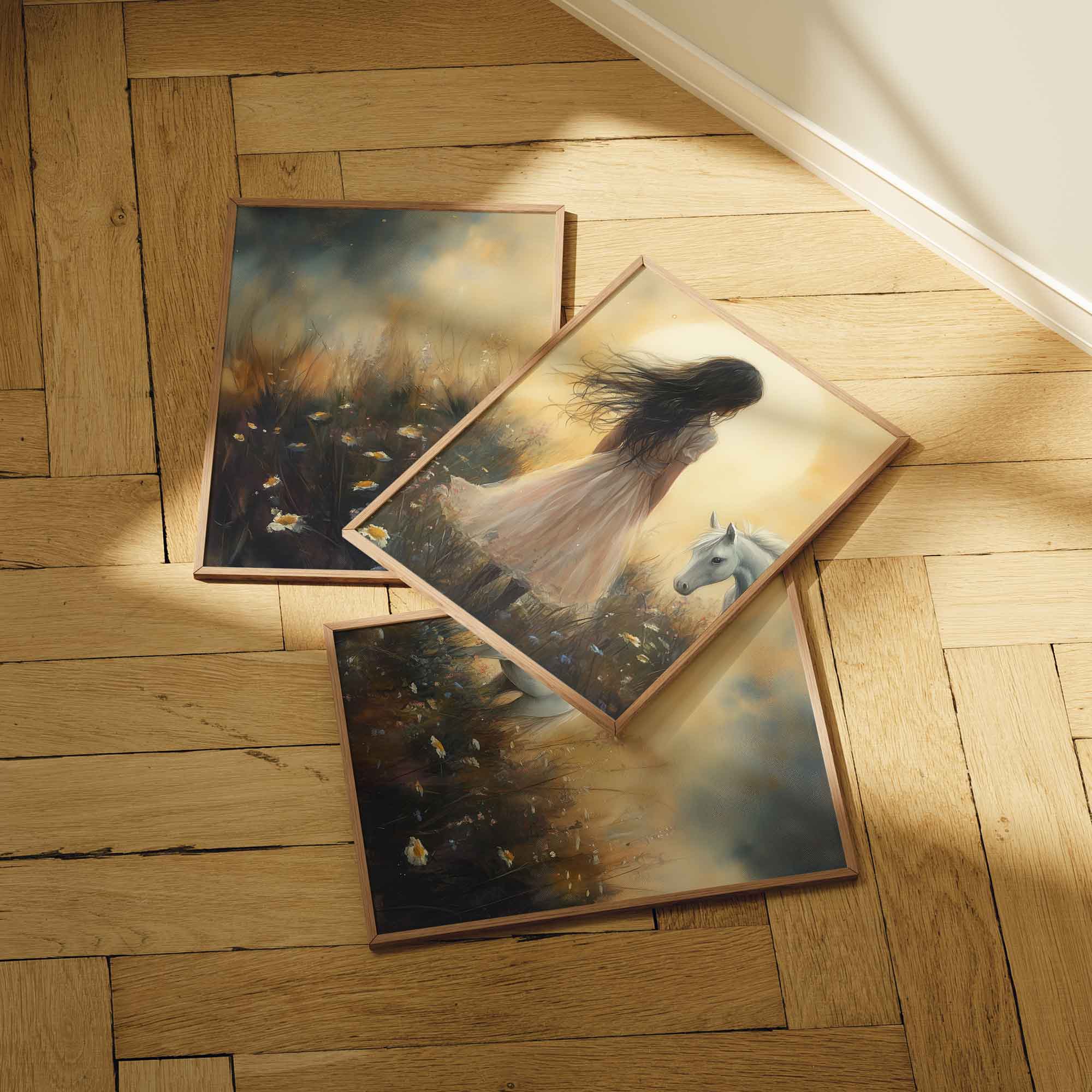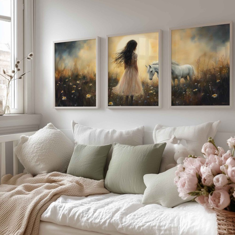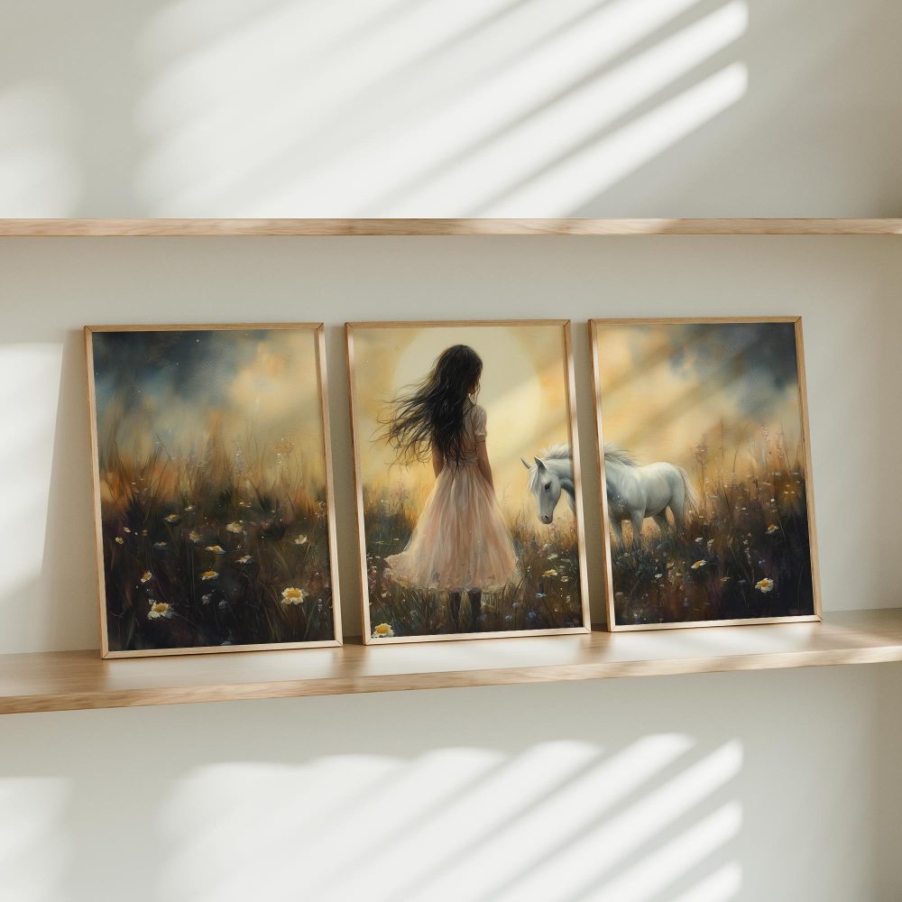 Terug naar collectie / Uncategorized / Zacht Droomlandschap met Meisje en Witte Paard