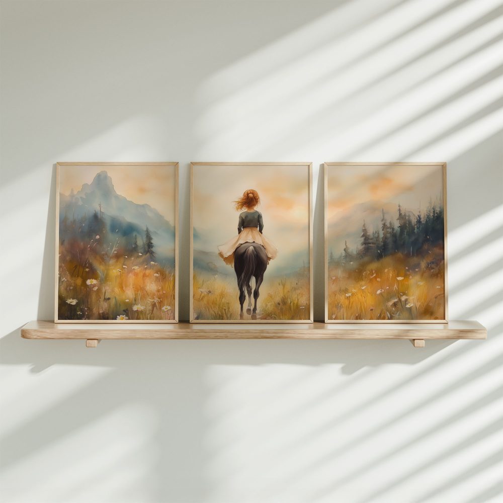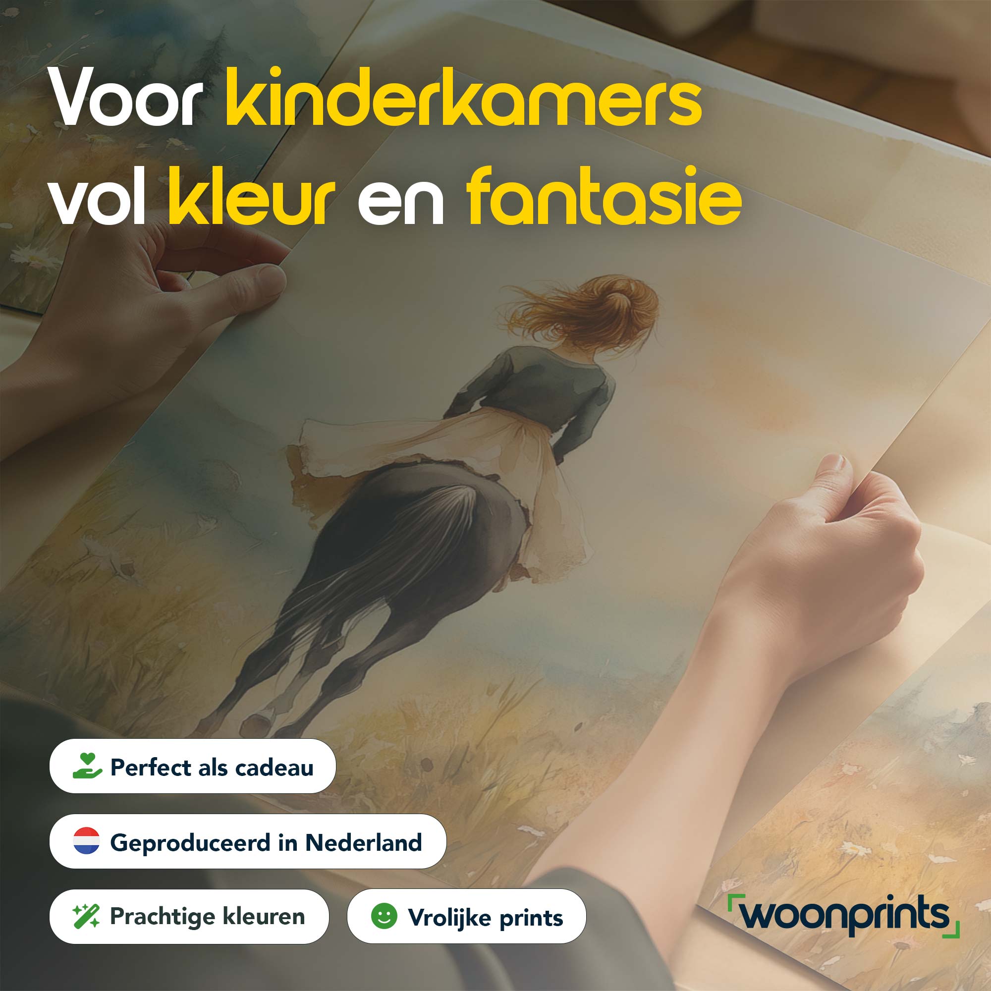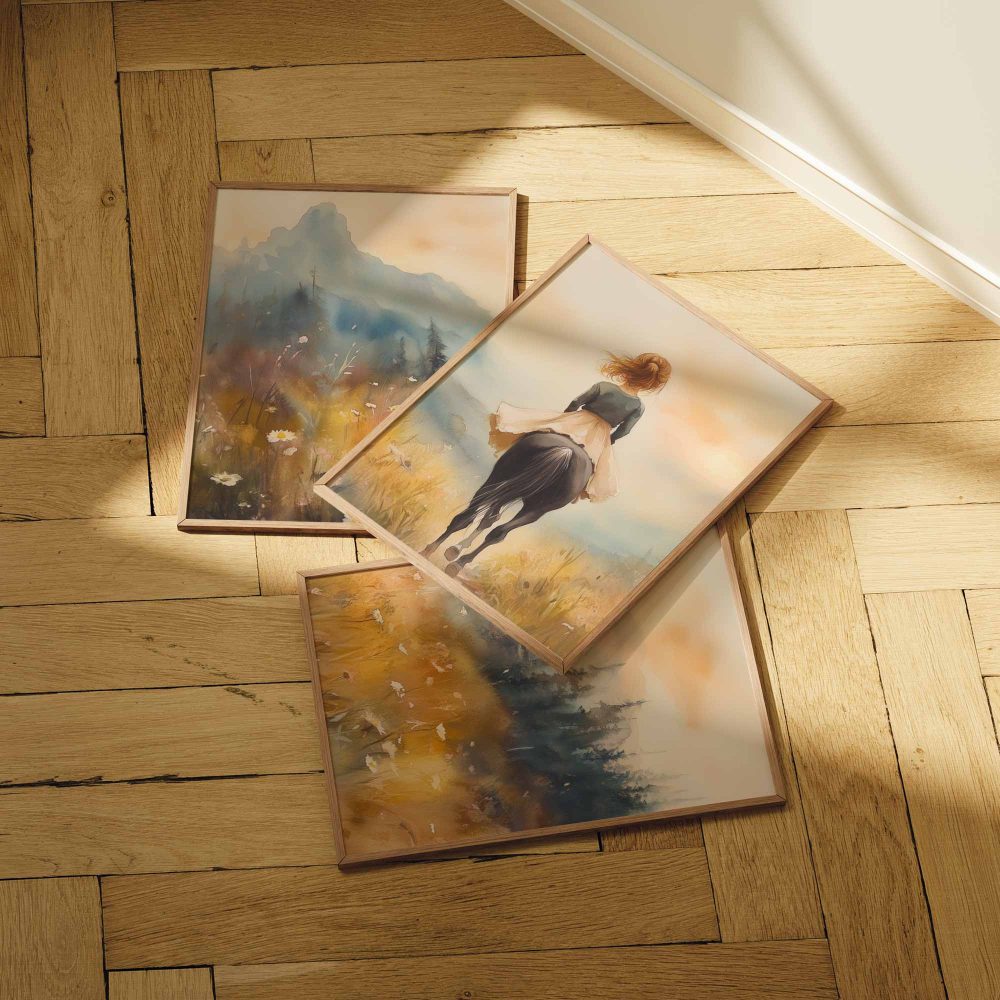 Terug naar collectie / Uncategorized / Zacht Droomlandschap: Vrouw te Paard in Bloemenzee