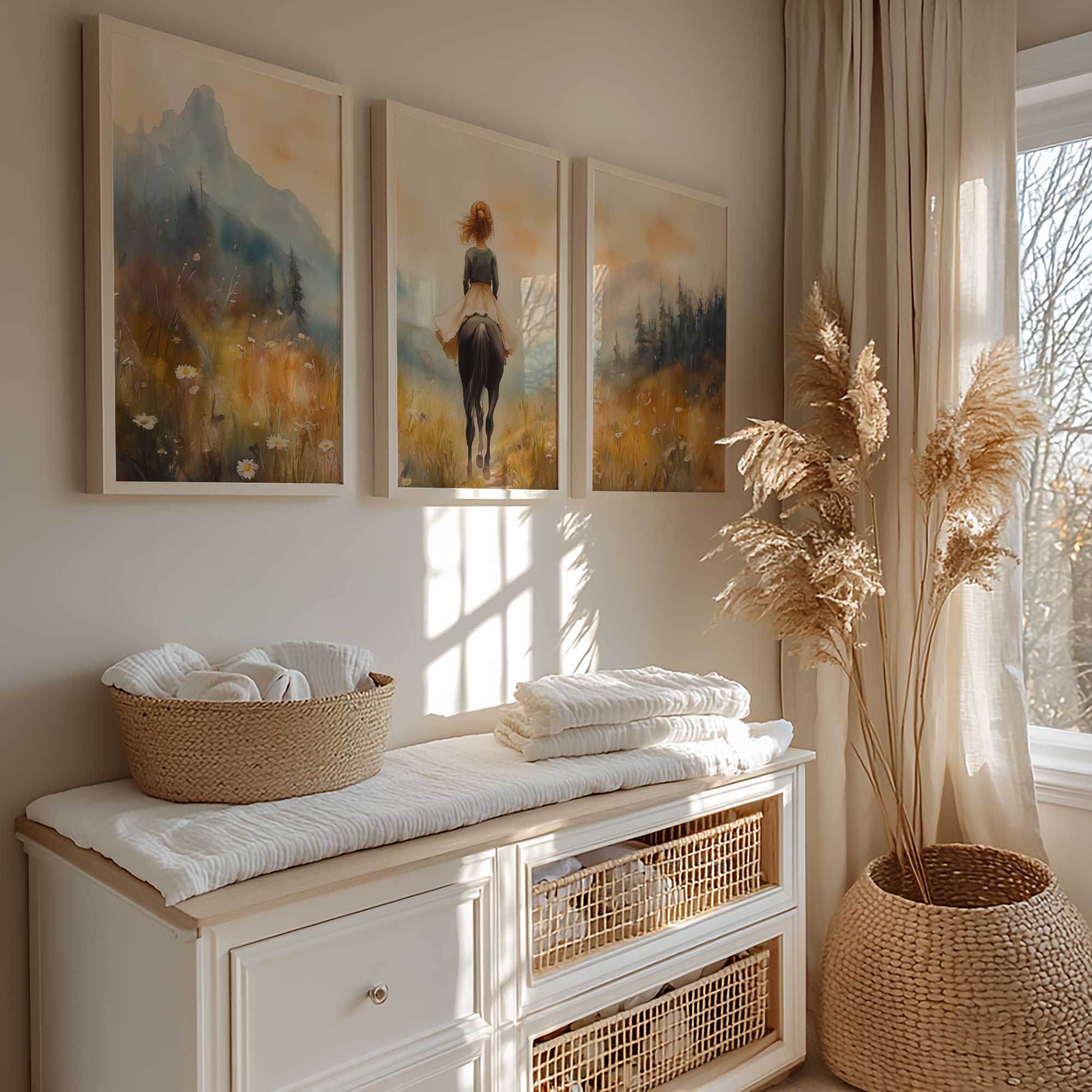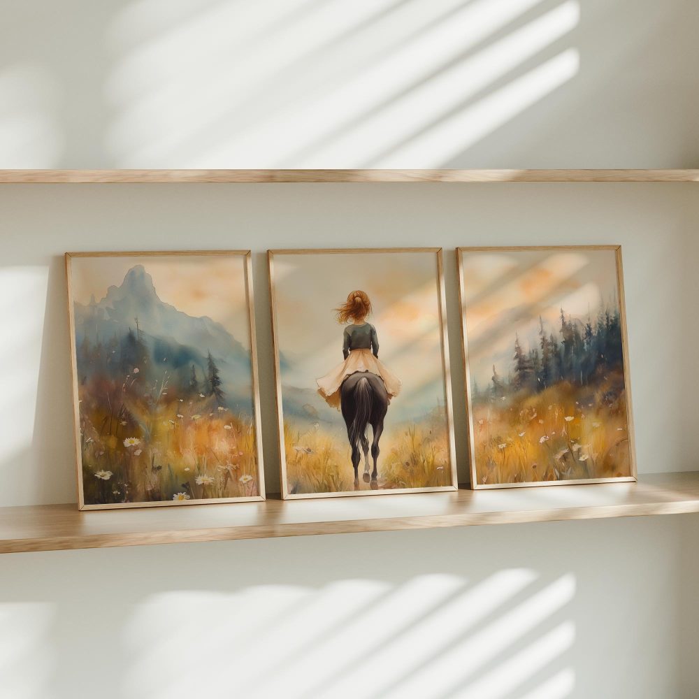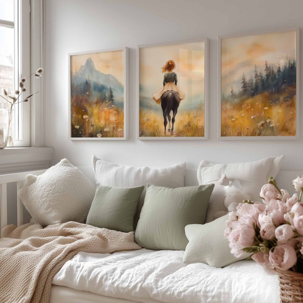 Terug naar collectie / Uncategorized / Zacht Droomlandschap: Vrouw te Paard in Bloemenzee
