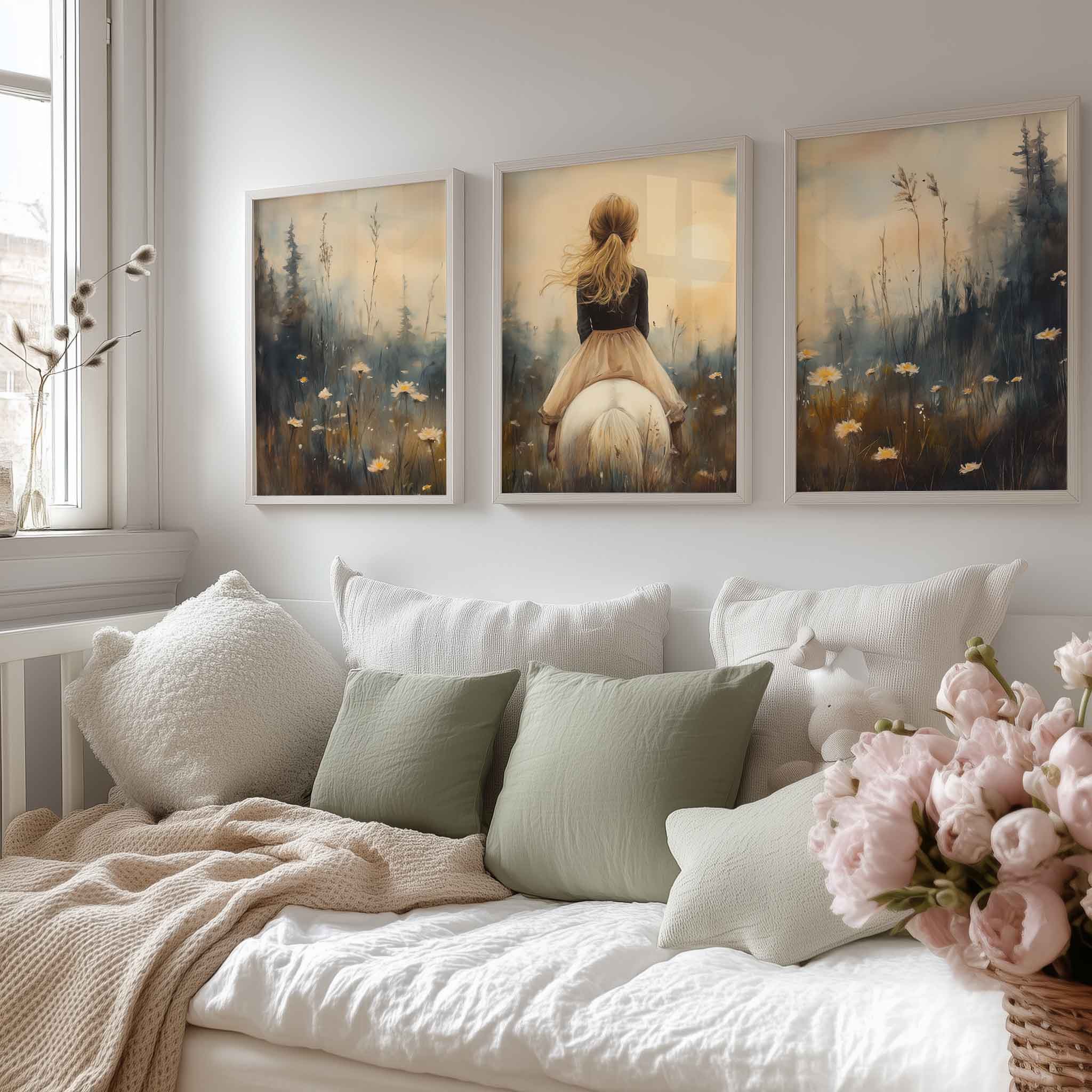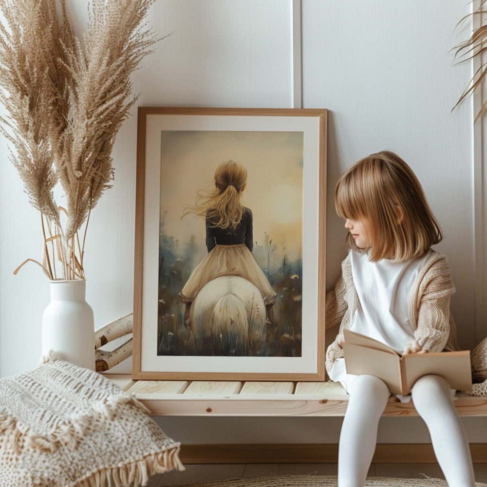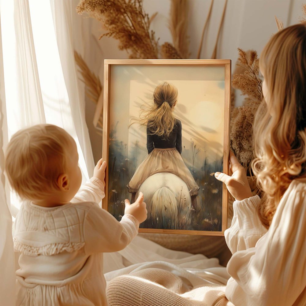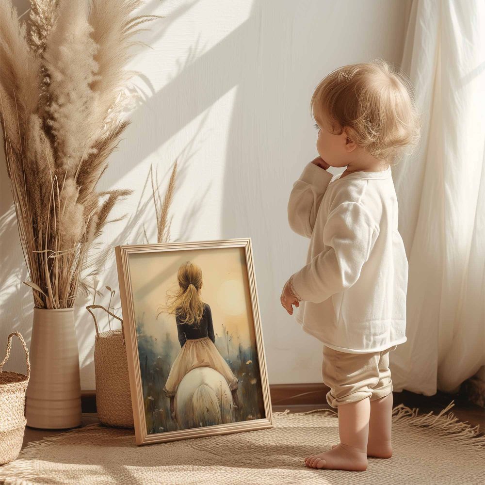 Terug naar collectie / Uncategorized / Zacht Droommeisje op Witte Paard in Bloemenveld