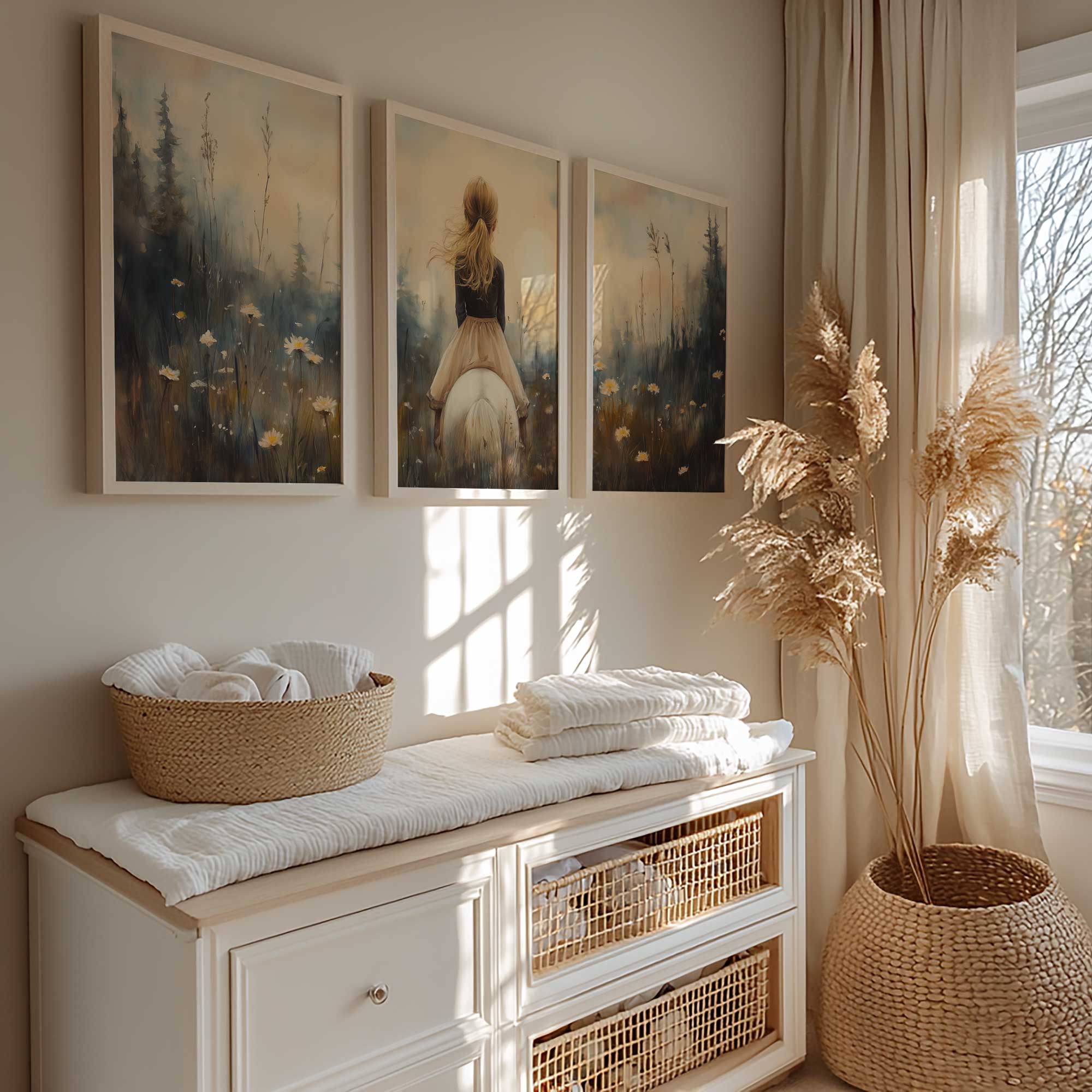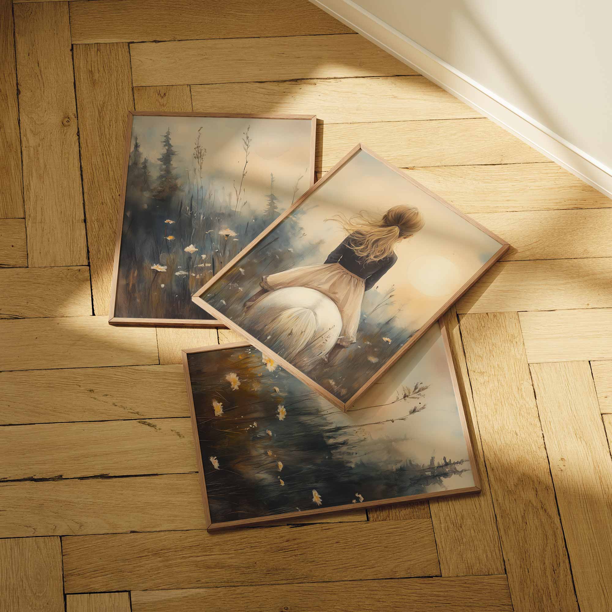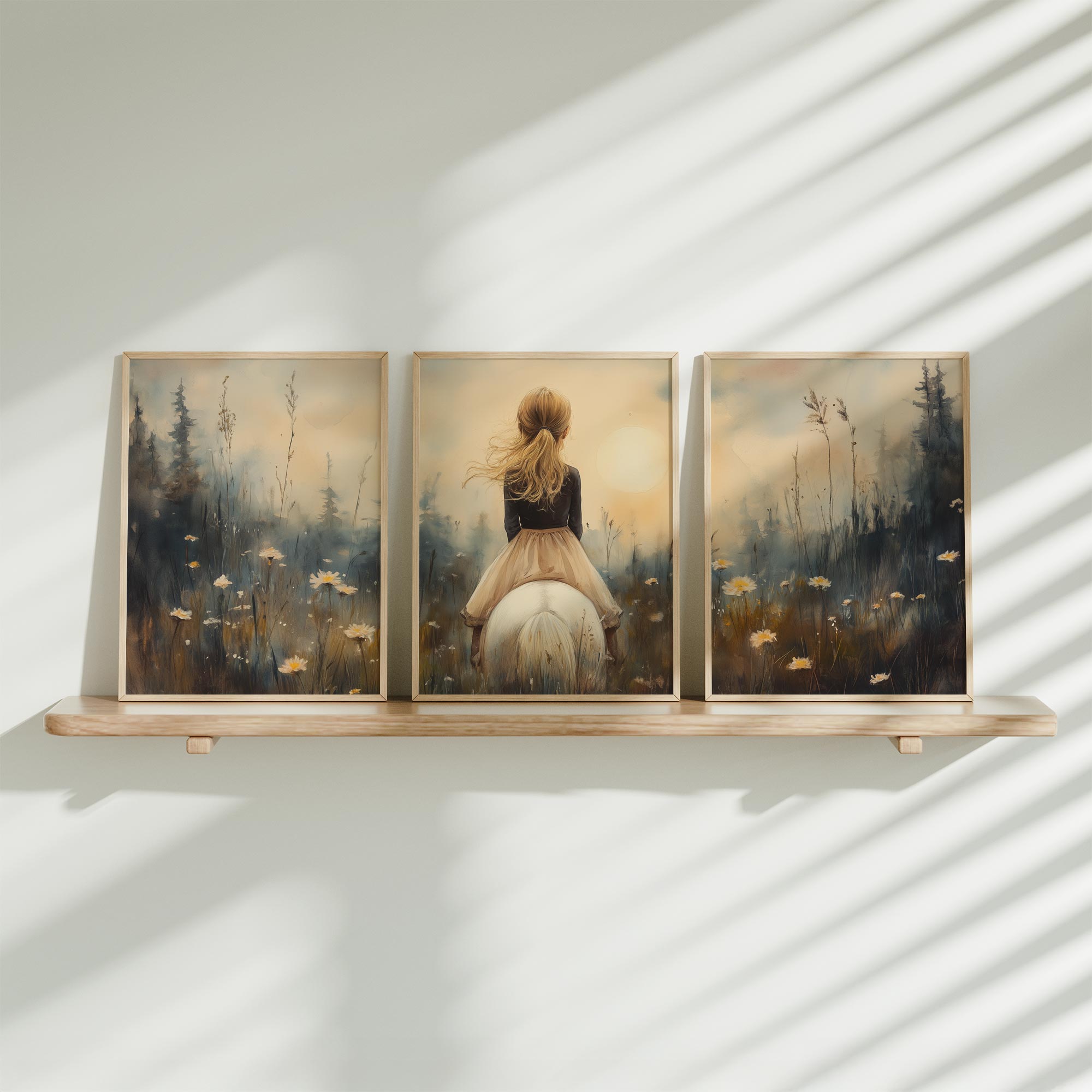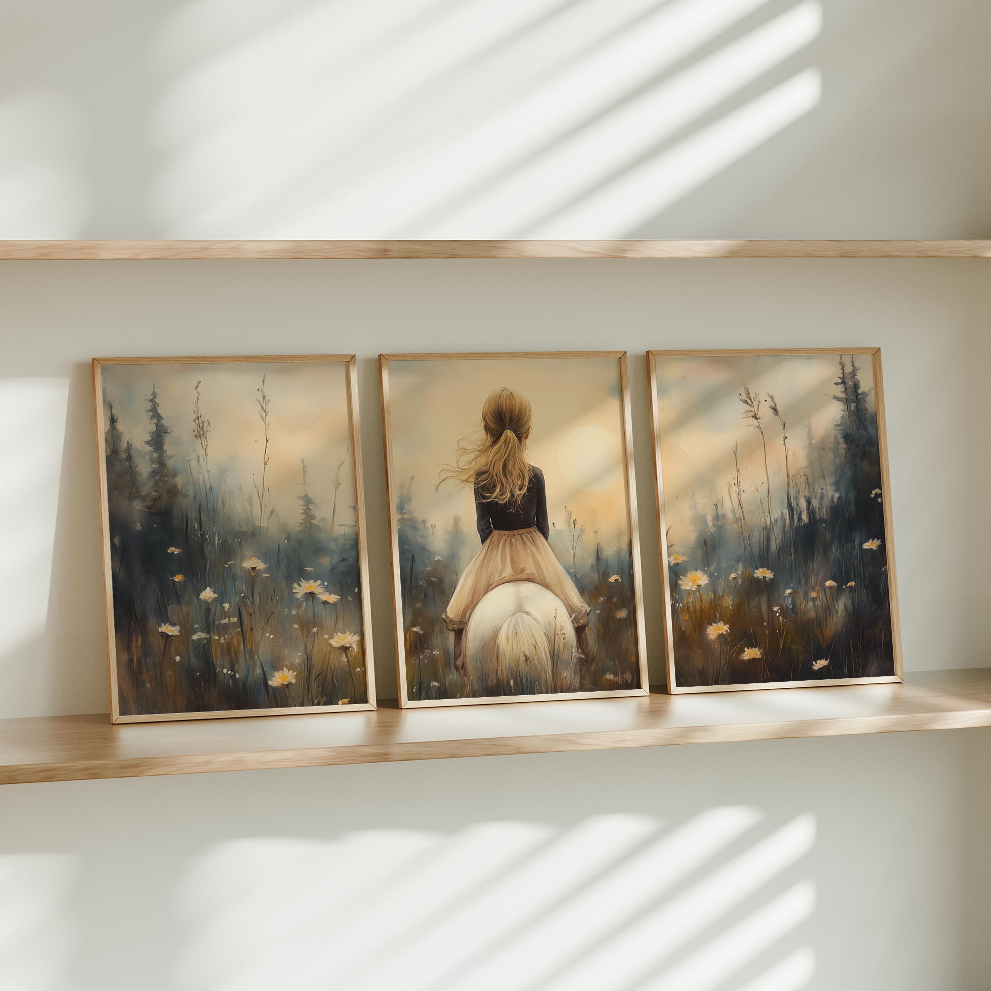 Terug naar collectie / Uncategorized / Zacht Droommeisje op Witte Paard in Bloemenveld