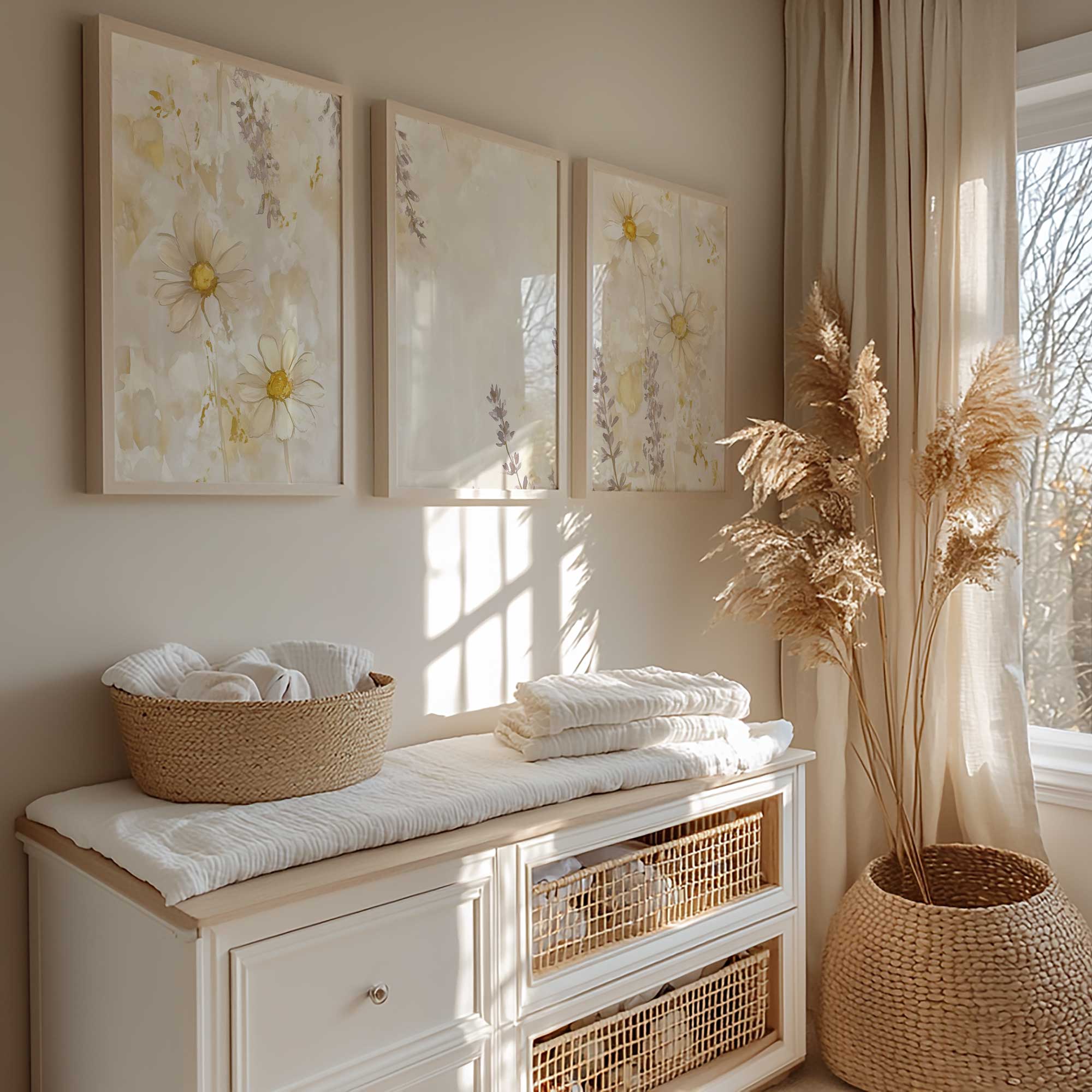 Terug naar collectie / Kinderkamer posters / Bloemen posters / Zacht en Sereen: Witte Bloemen en Lavendel Harmonie