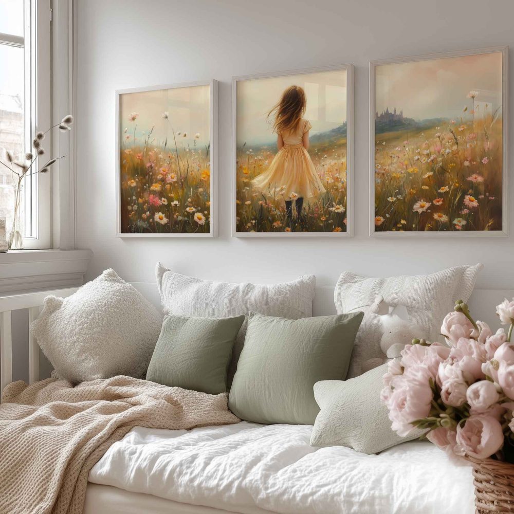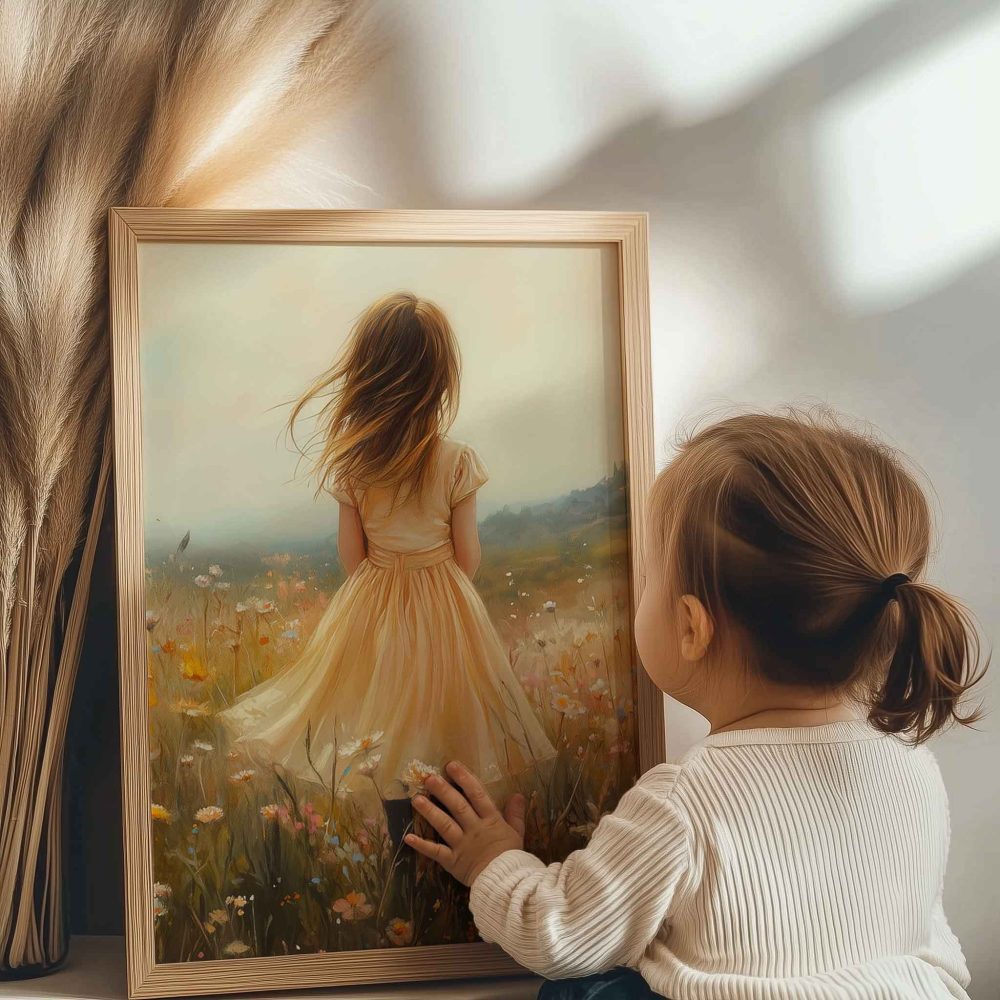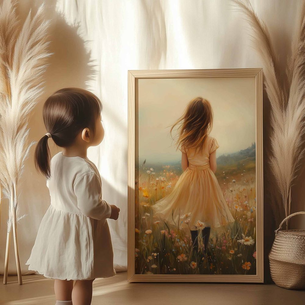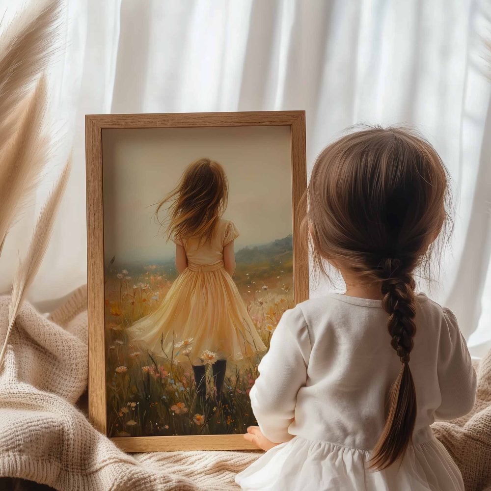 Terug naar collectie / Uncategorized / Zacht Geel Meisje in Dromerig Bloemenveld
