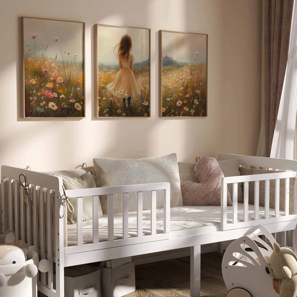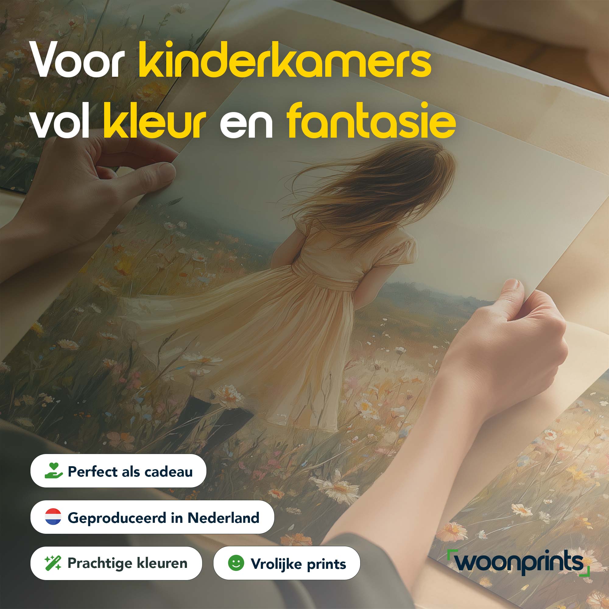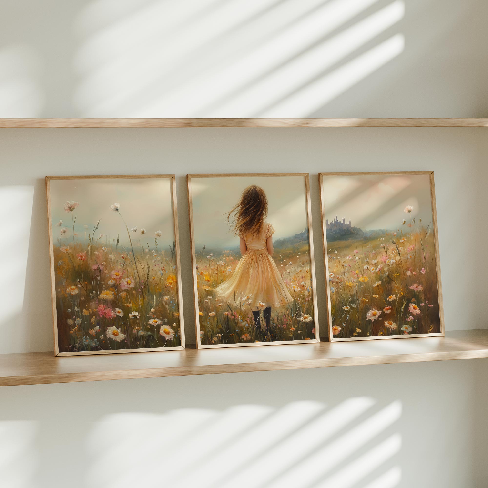 Terug naar collectie / Uncategorized / Zacht Geel Meisje in Dromerig Bloemenveld
