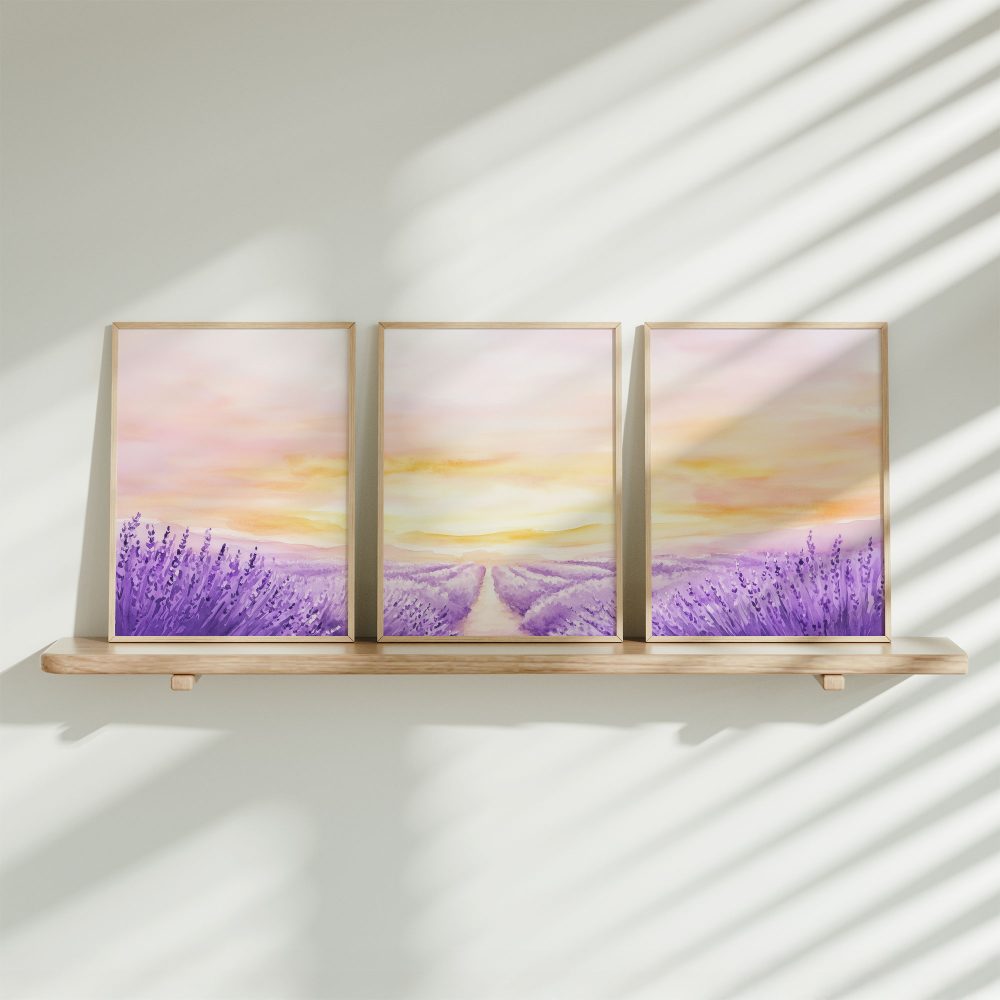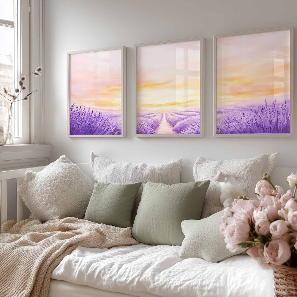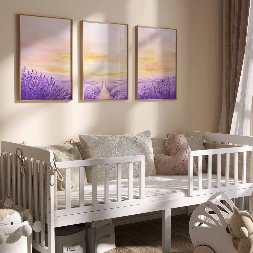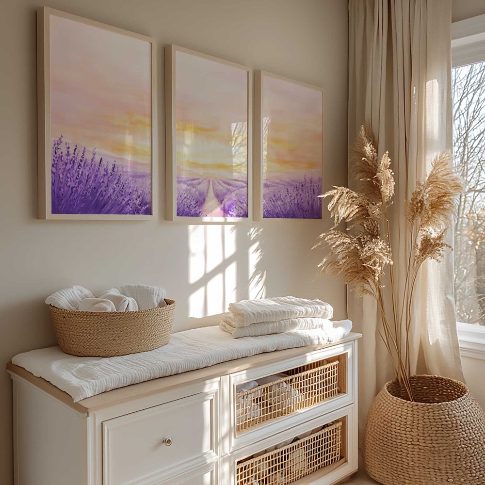 Terug naar collectie / Kinderkamer posters / Bloemen posters / Zacht Lavendelveld onder Roze Zonsondergang